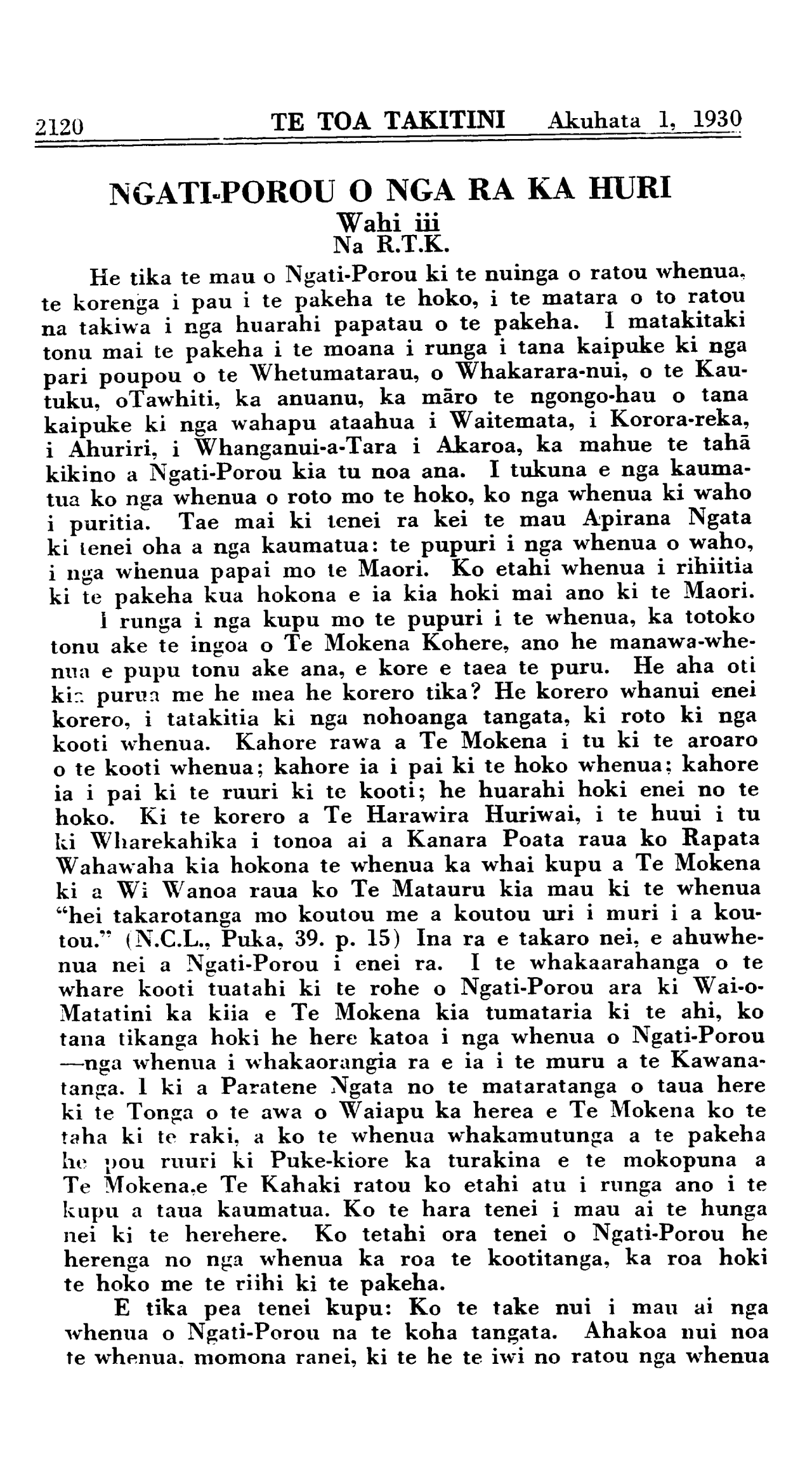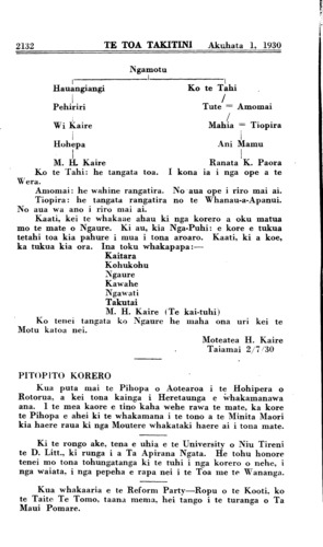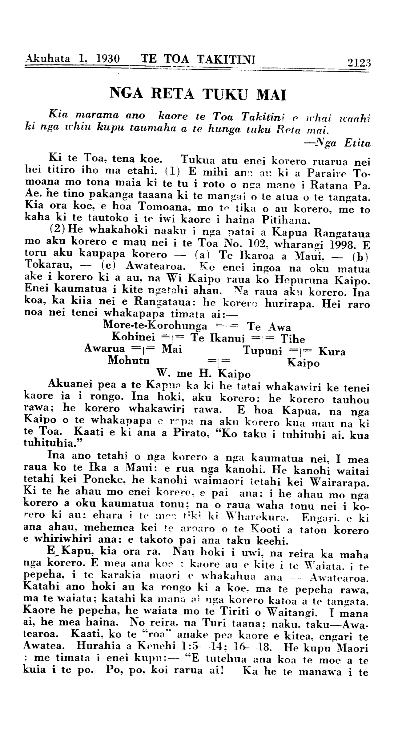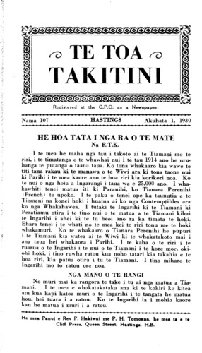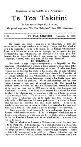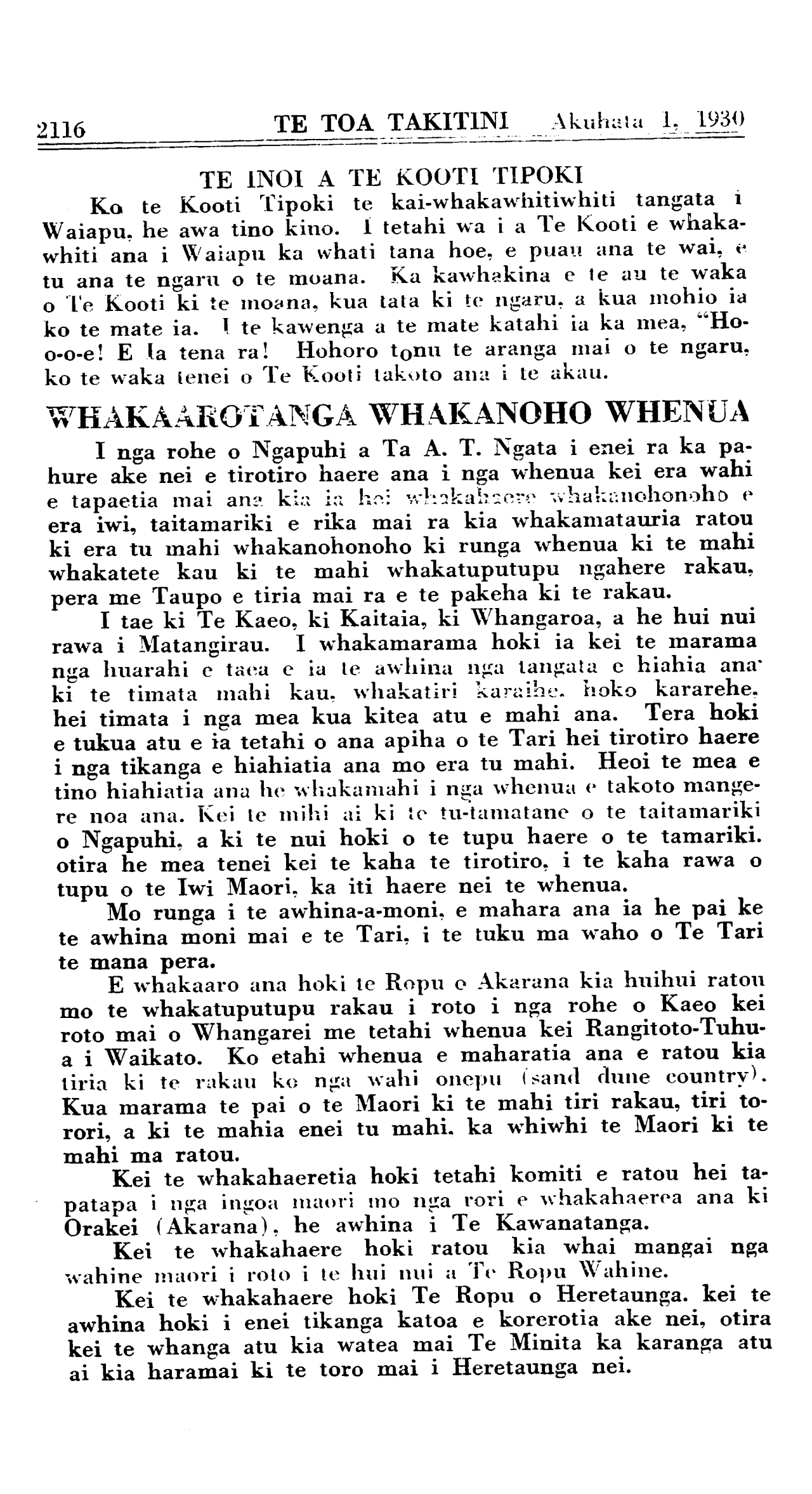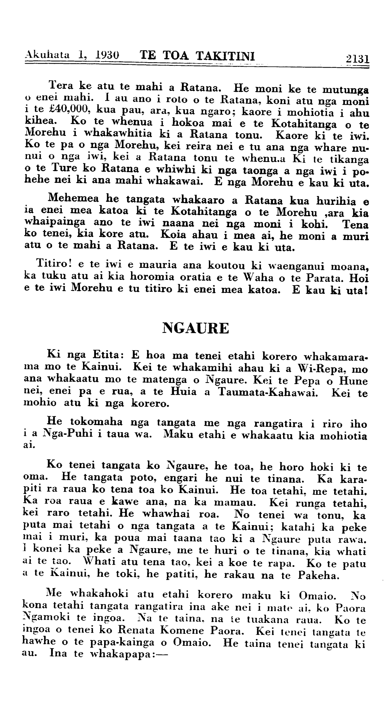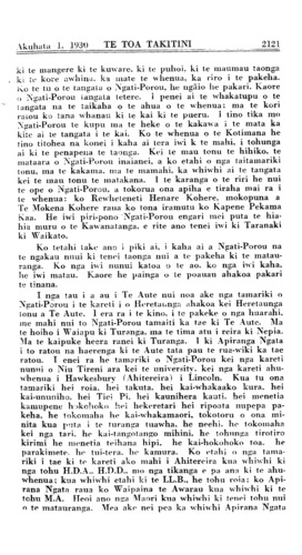 Akuhata 1, 1930 TE TOA TAKITINI\_\_\_\_\_\_\_\_\_\_2131