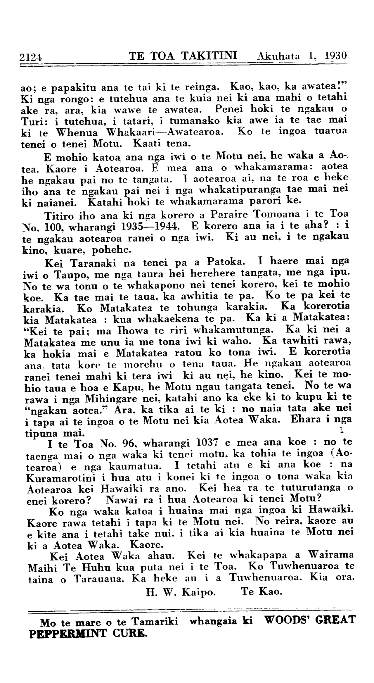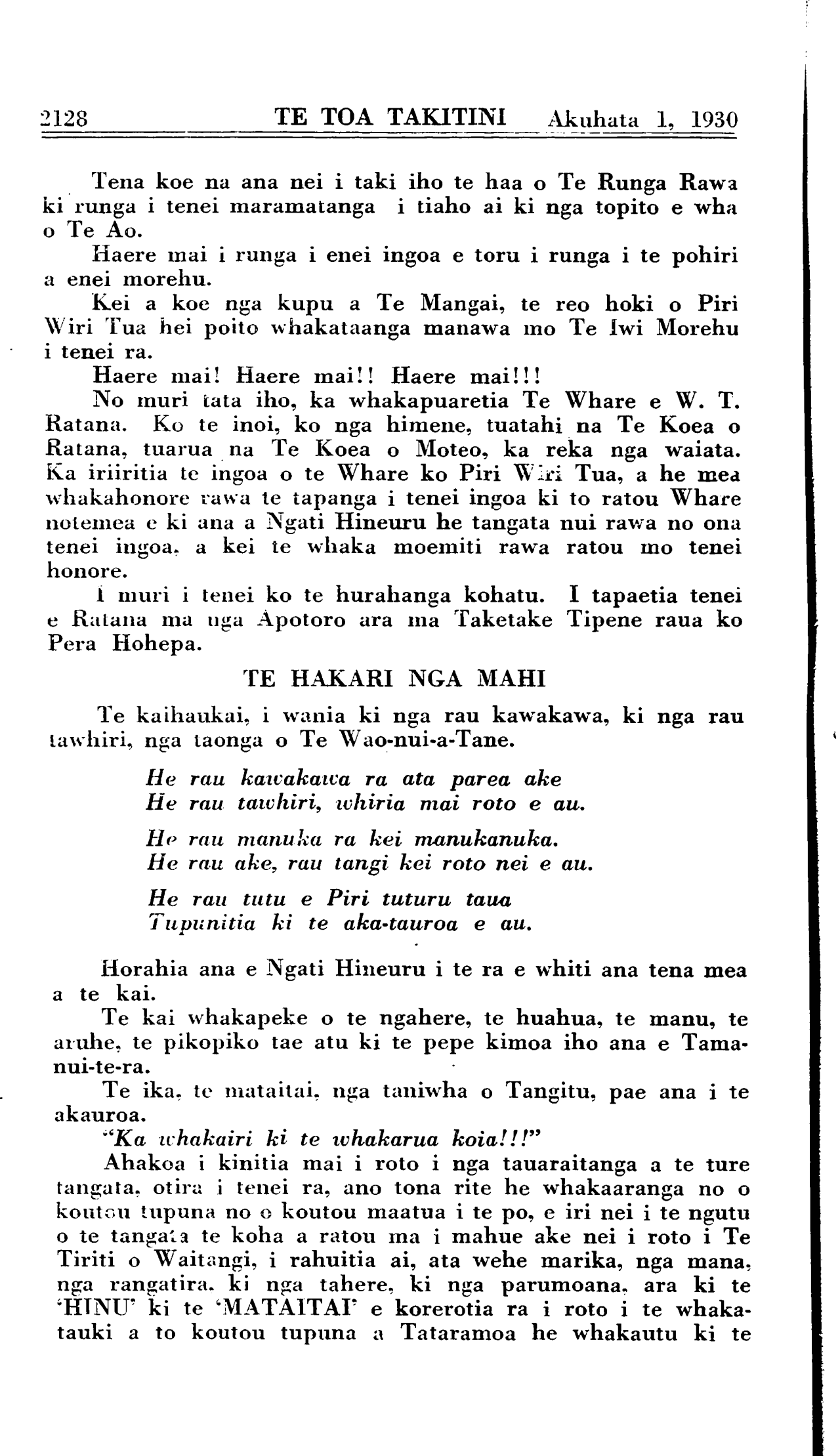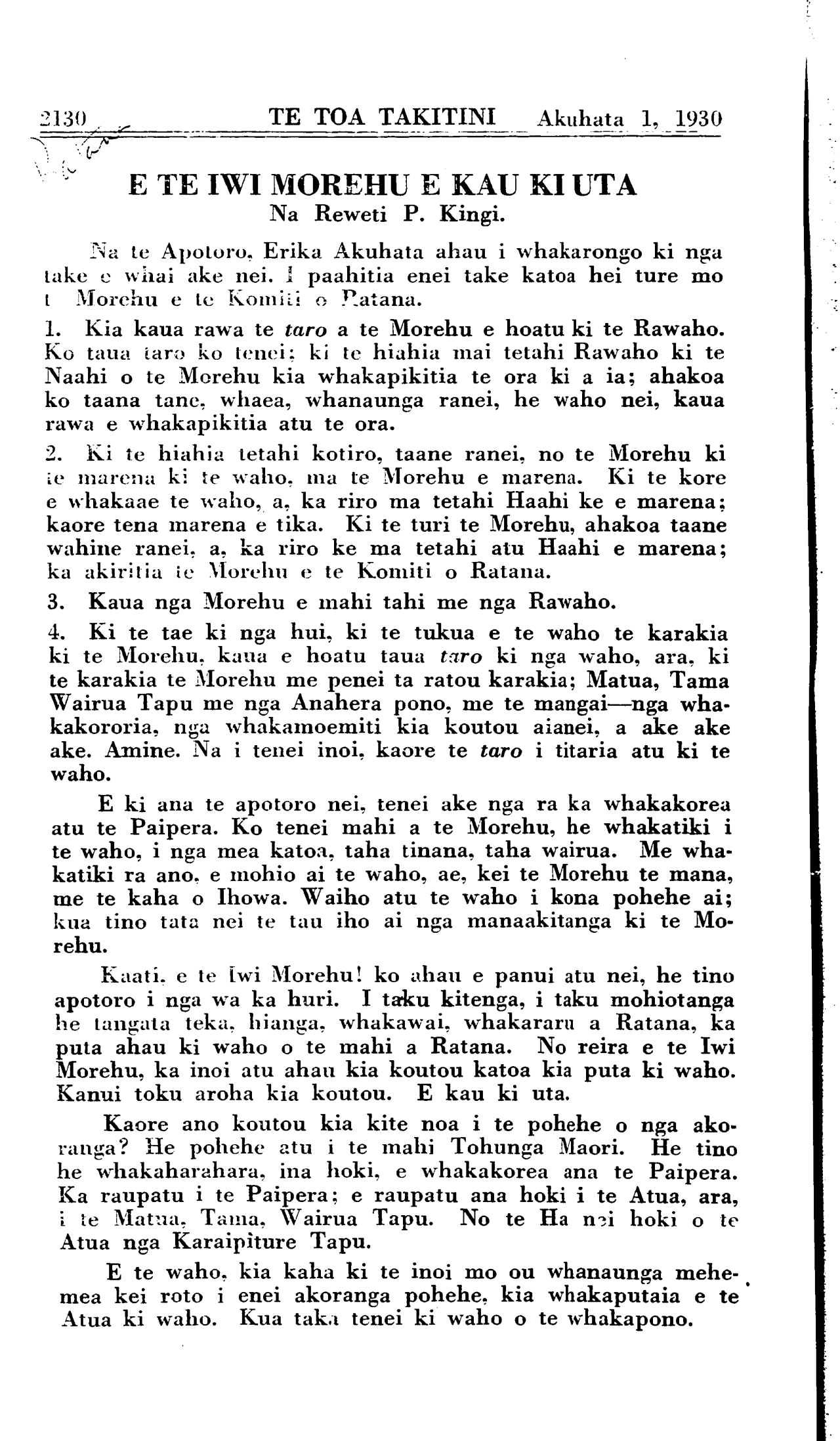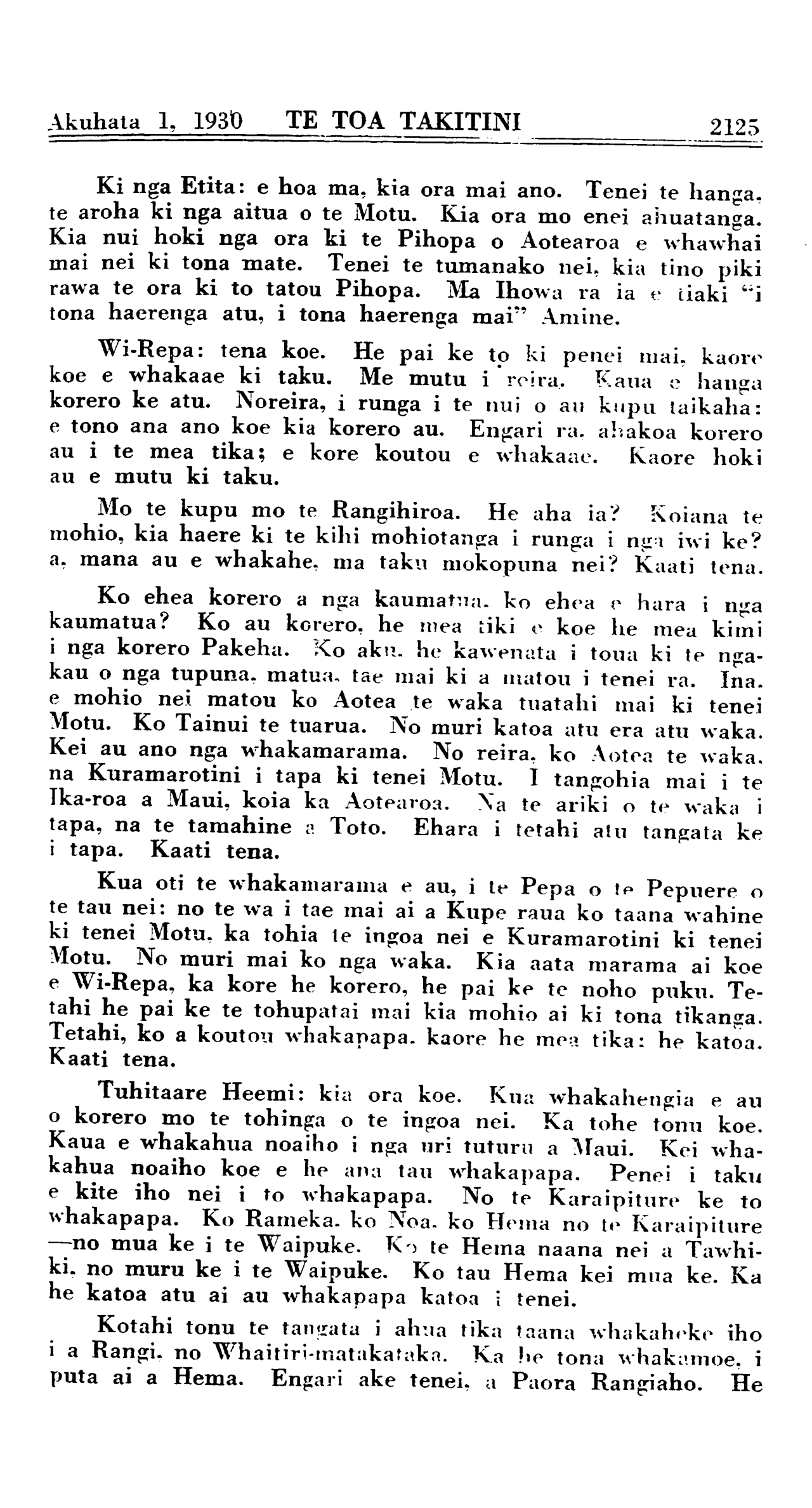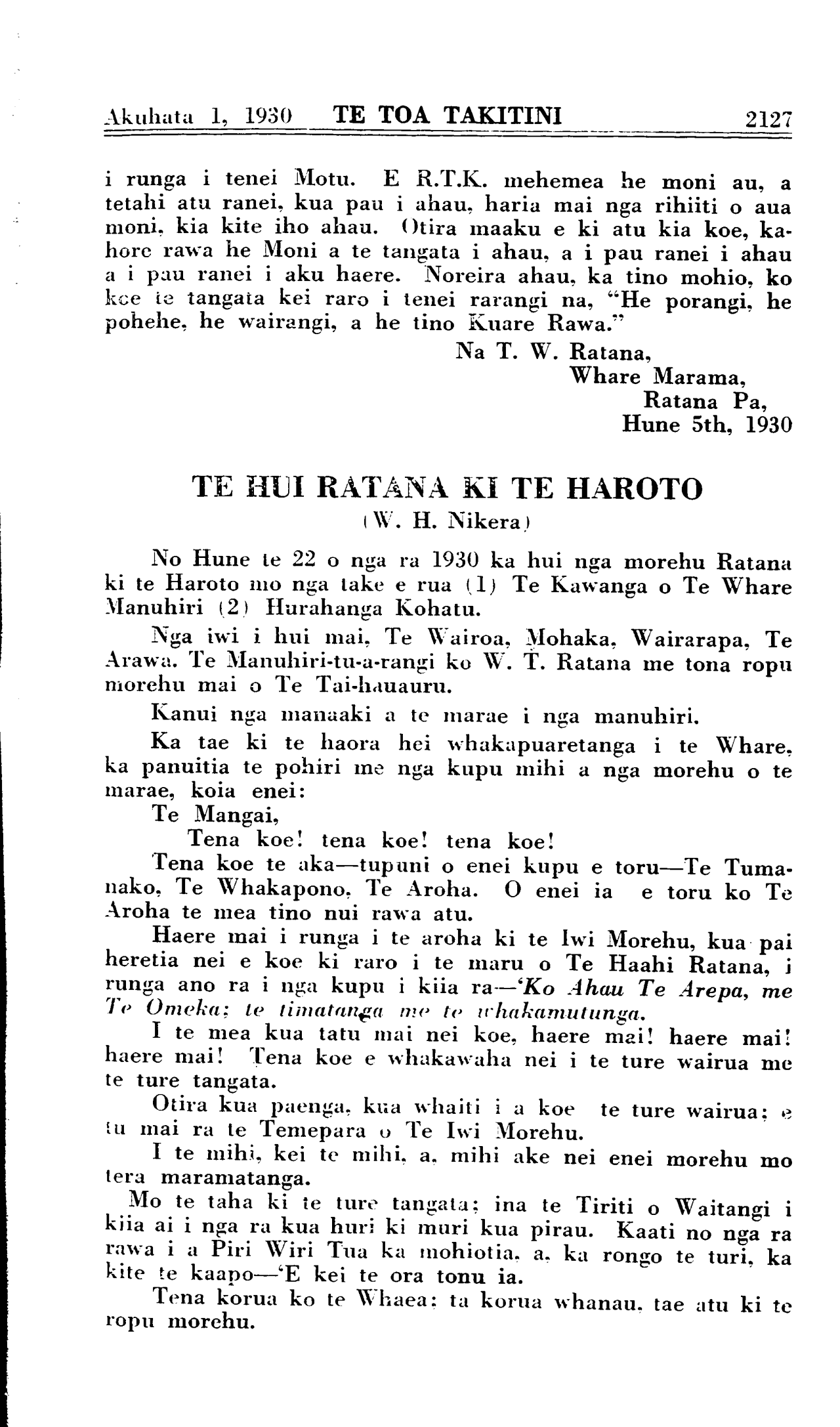 Akuhata 1, 1930 TE TOA TAKITINI\_\_\_\_\_\_\_\_\_\_2131