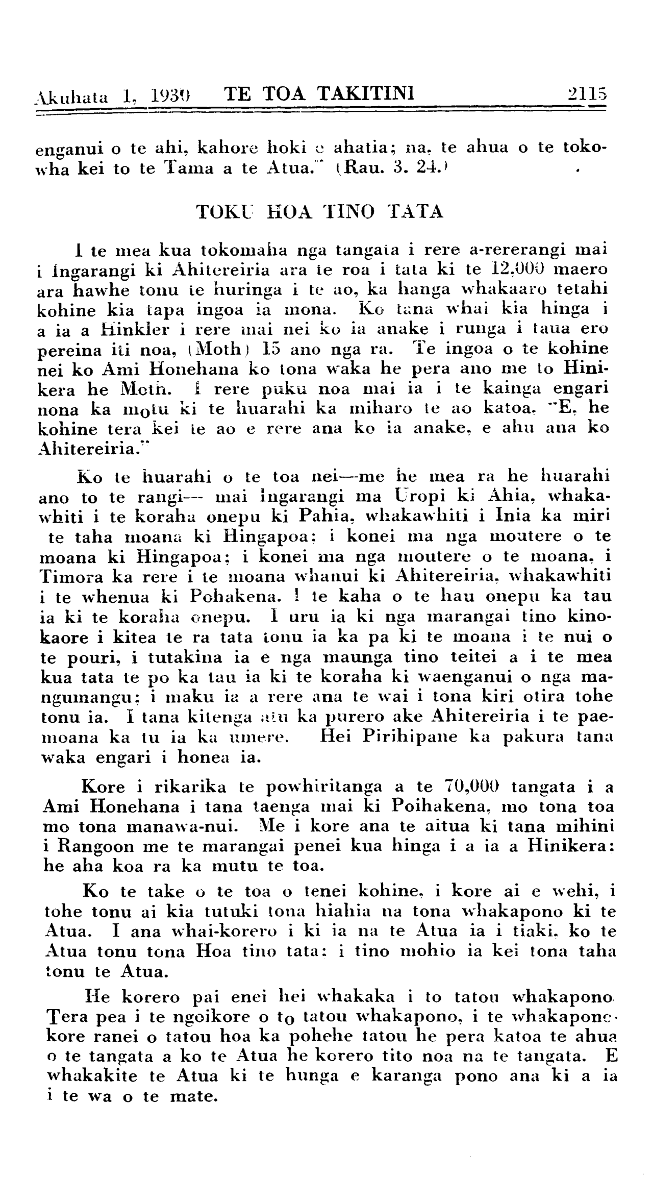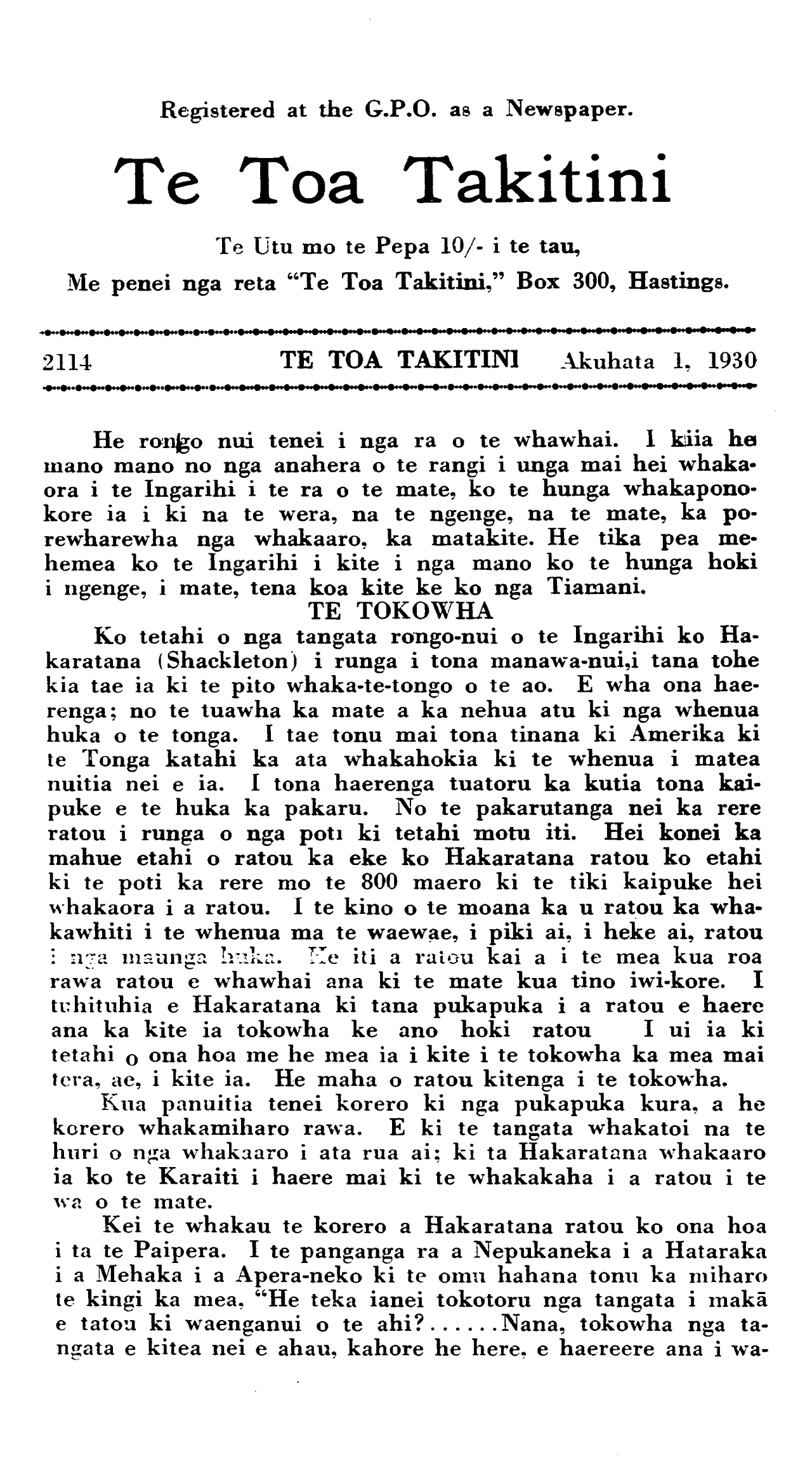 2114 TE TOA TAKITINI Akuhata 1, 1930