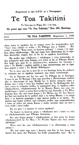 2134 TE TOA TAKITINI Hepetema 1, 1930