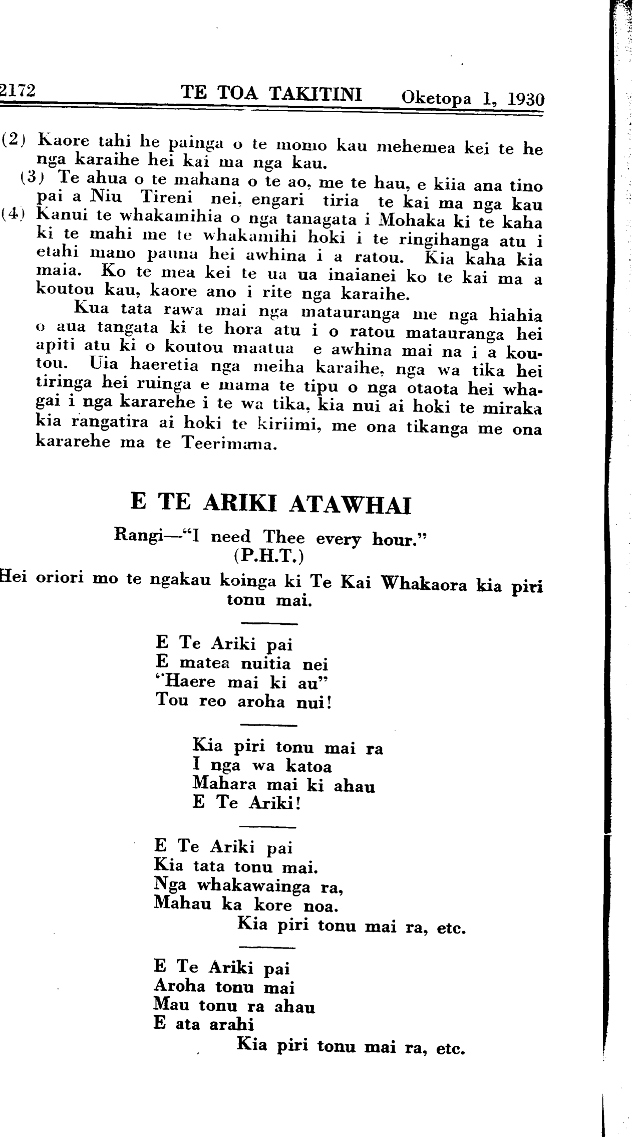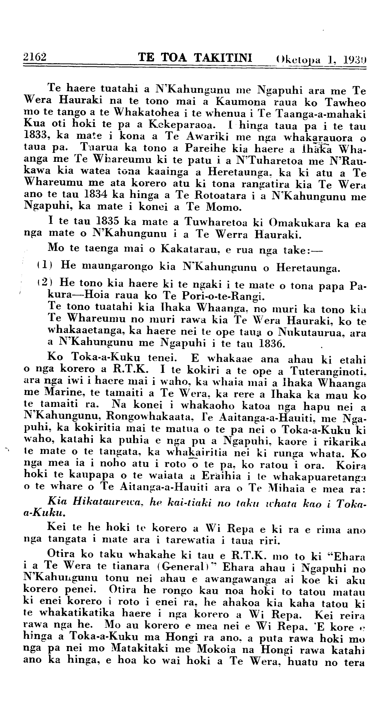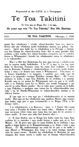 2172 TE TOA TAKITINI Oketopa 1, 1930