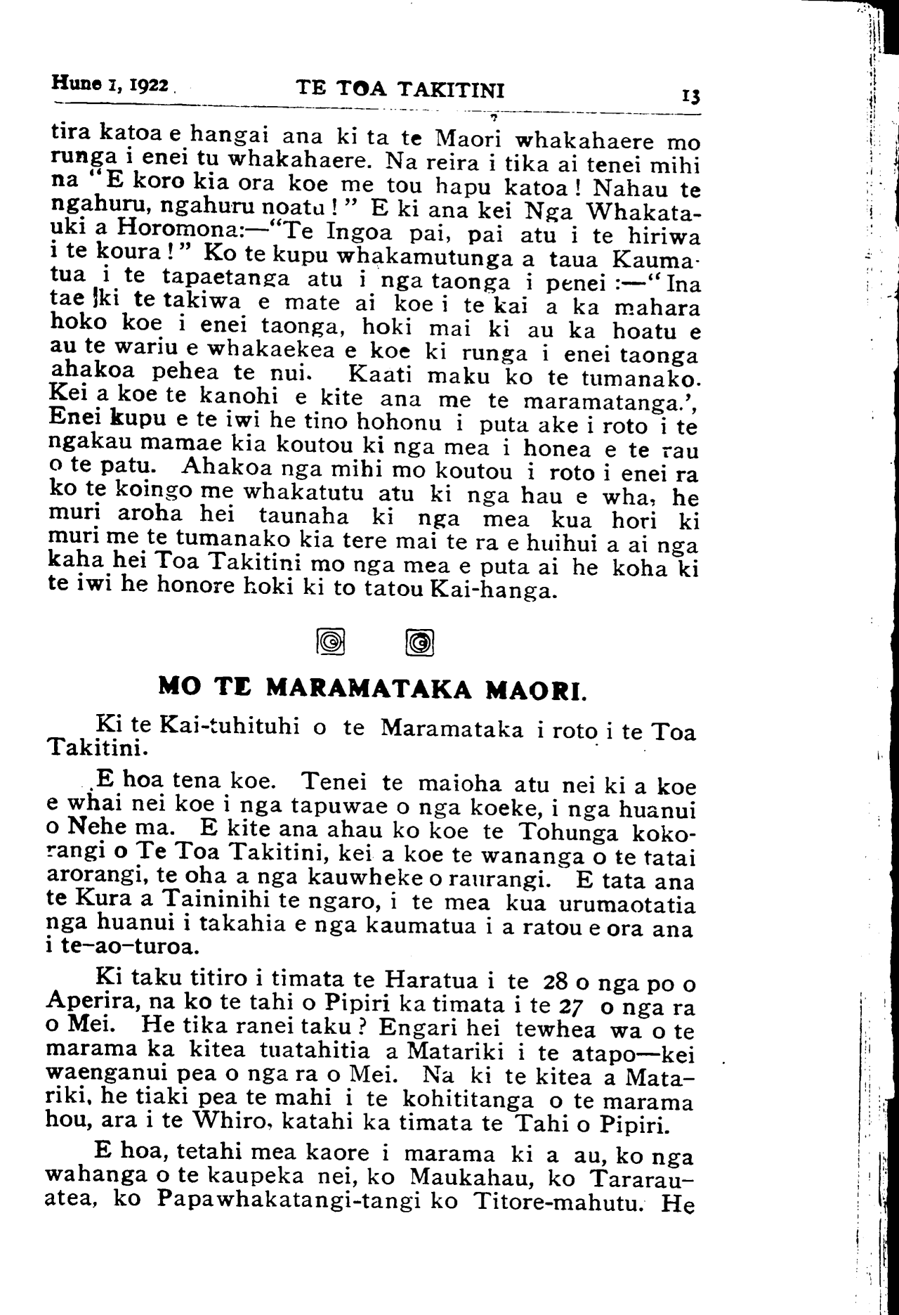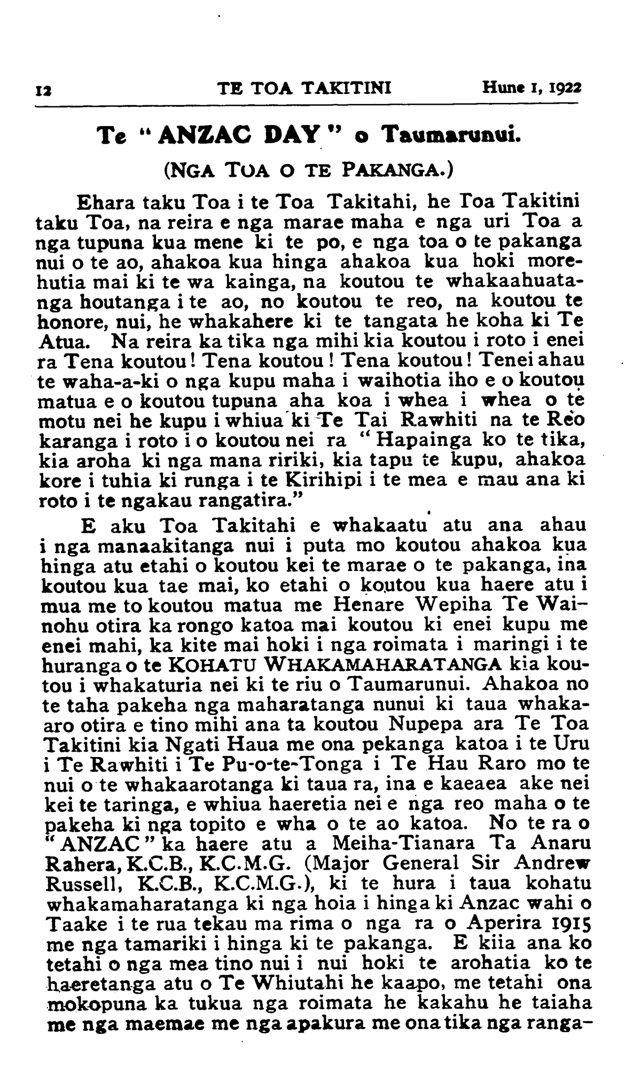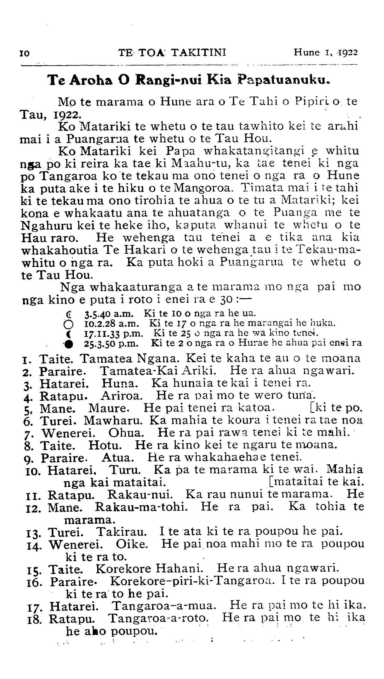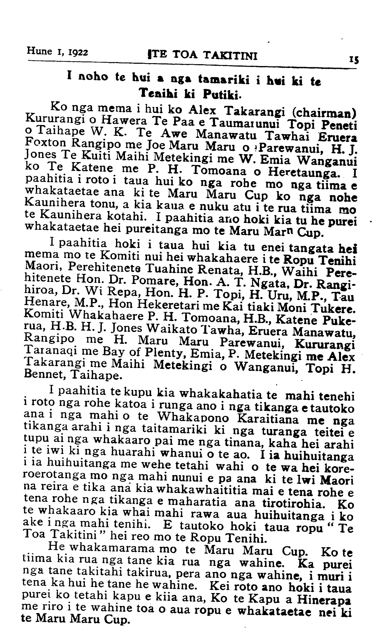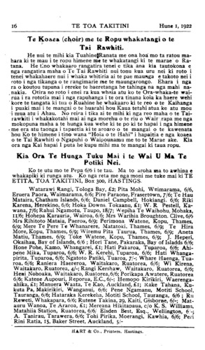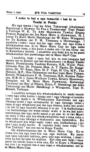 Hune 1, 1922|TE TOA TAKITINI                               15