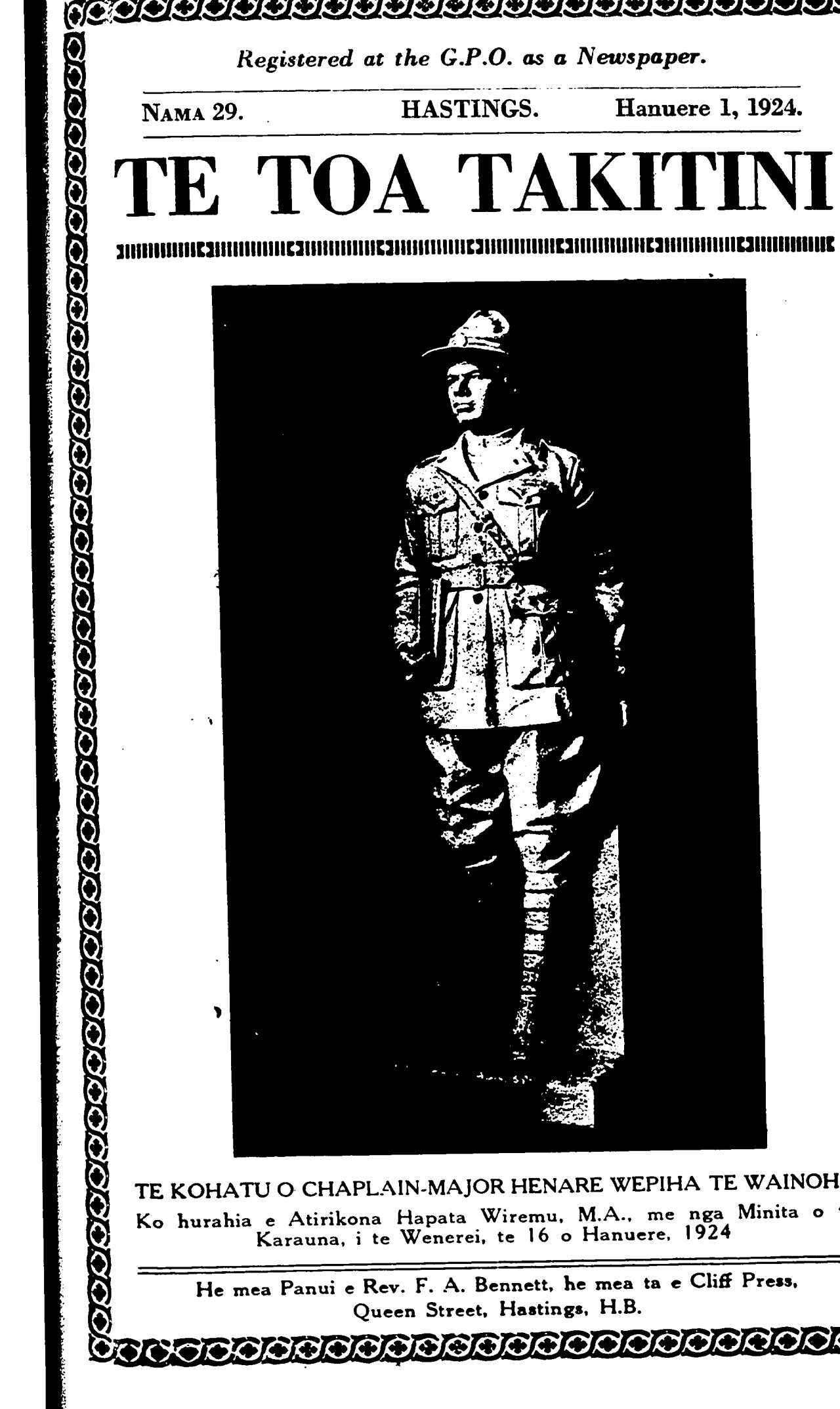 TE KOHATU O CHAPLAIN-MAJOR HENARE WEPIHA TE WAINOH