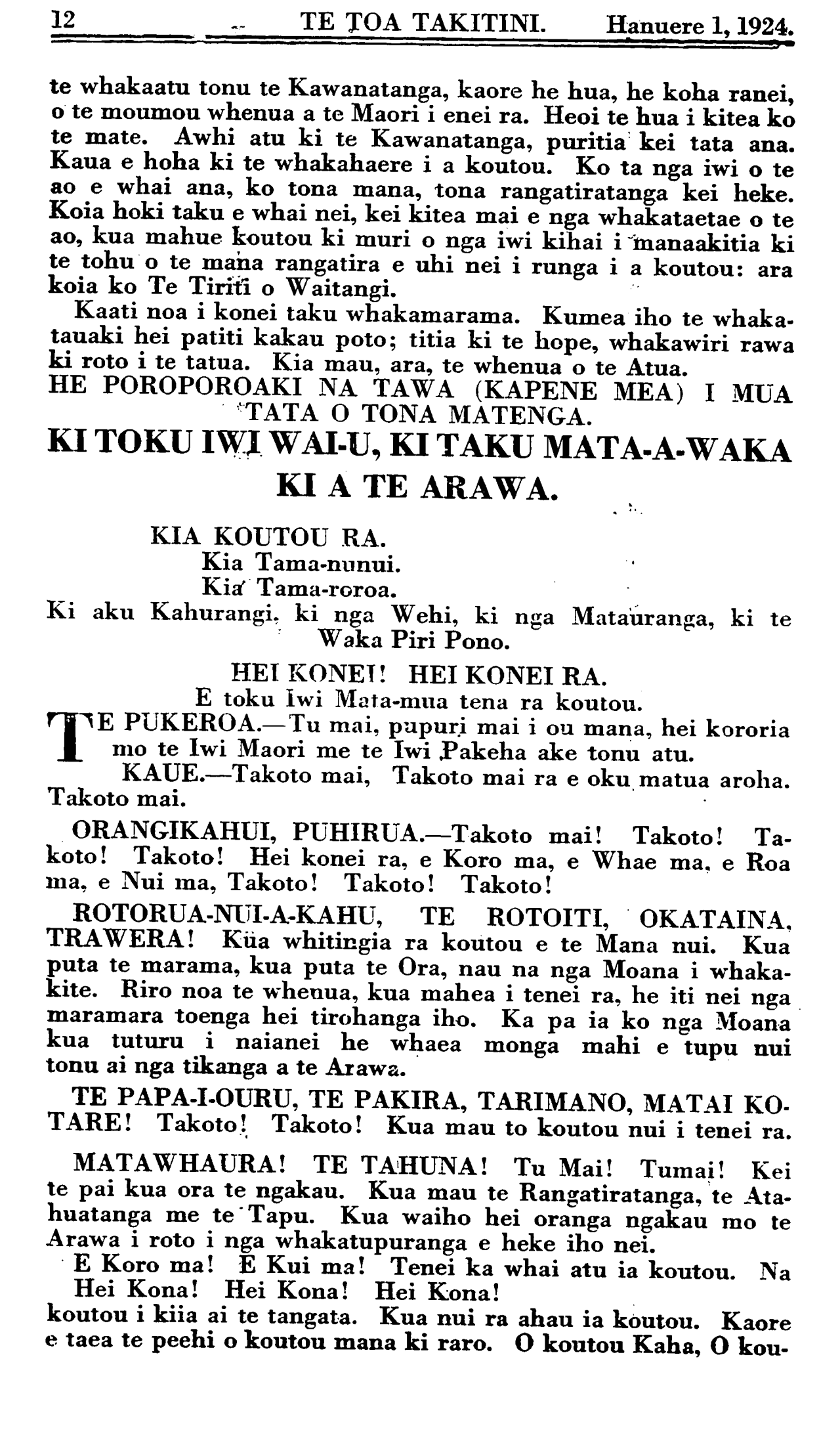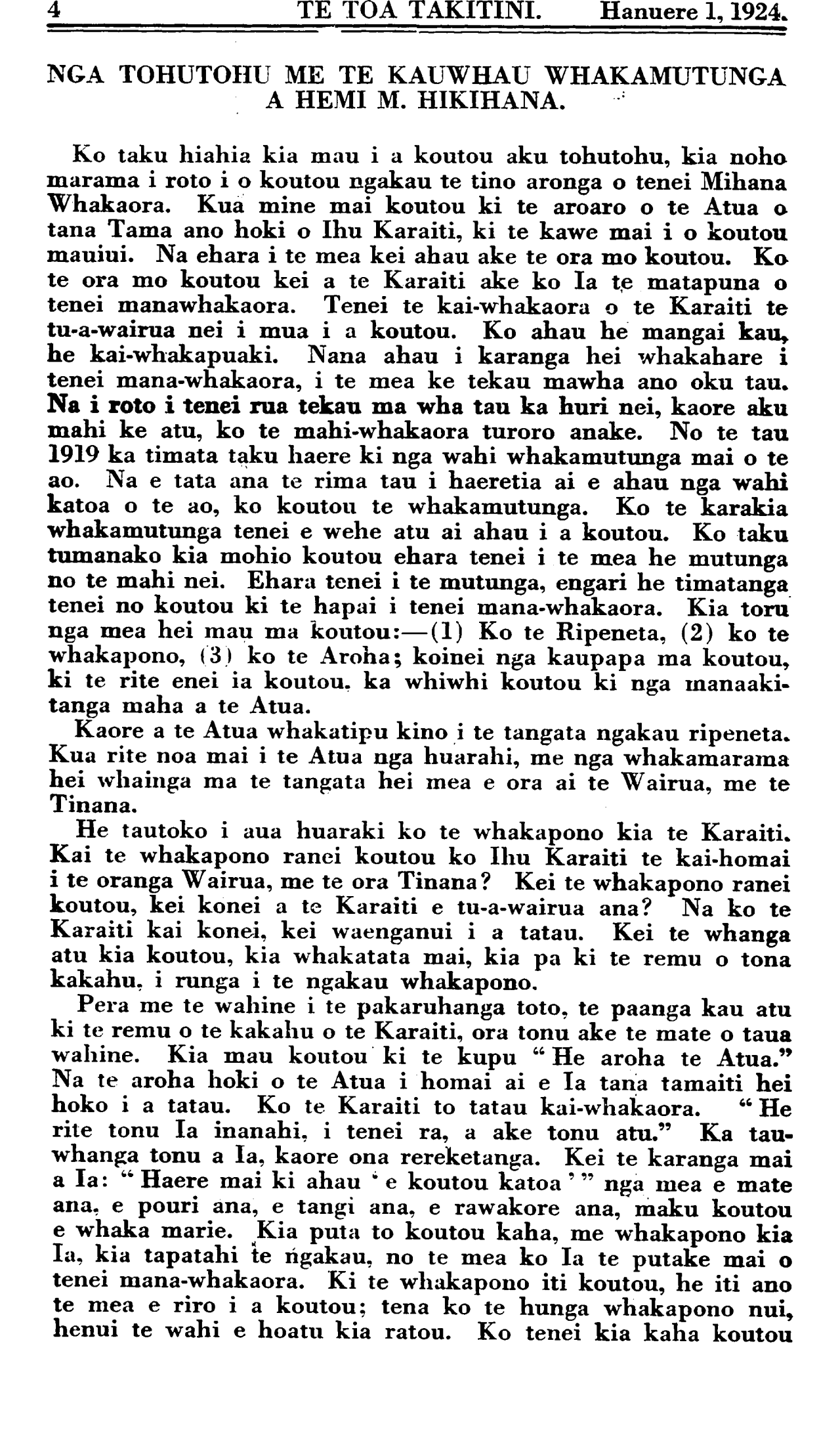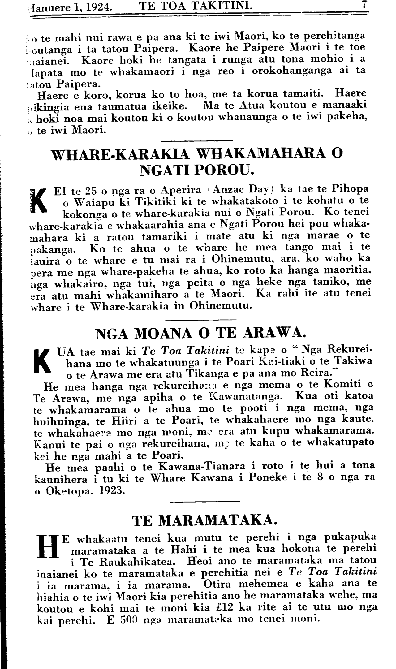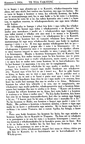 TE TOA TAKITINI. Hanuere 1. 1924.