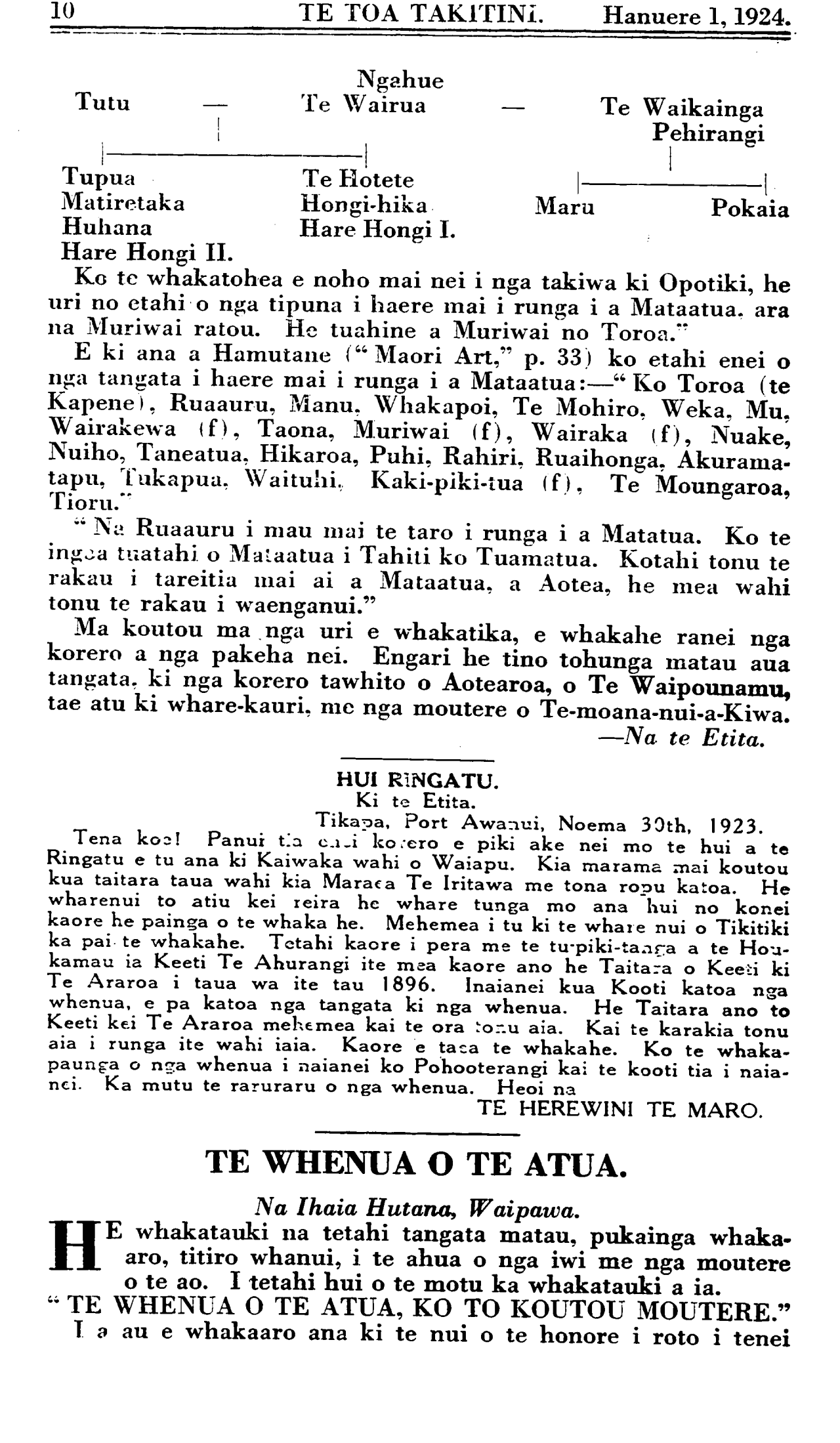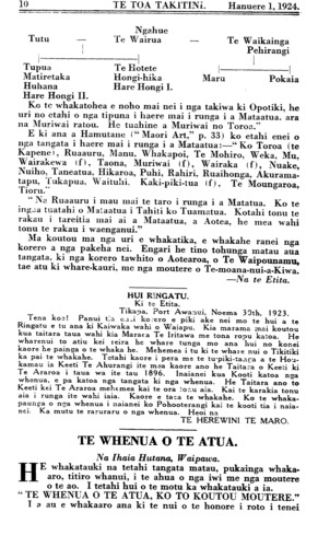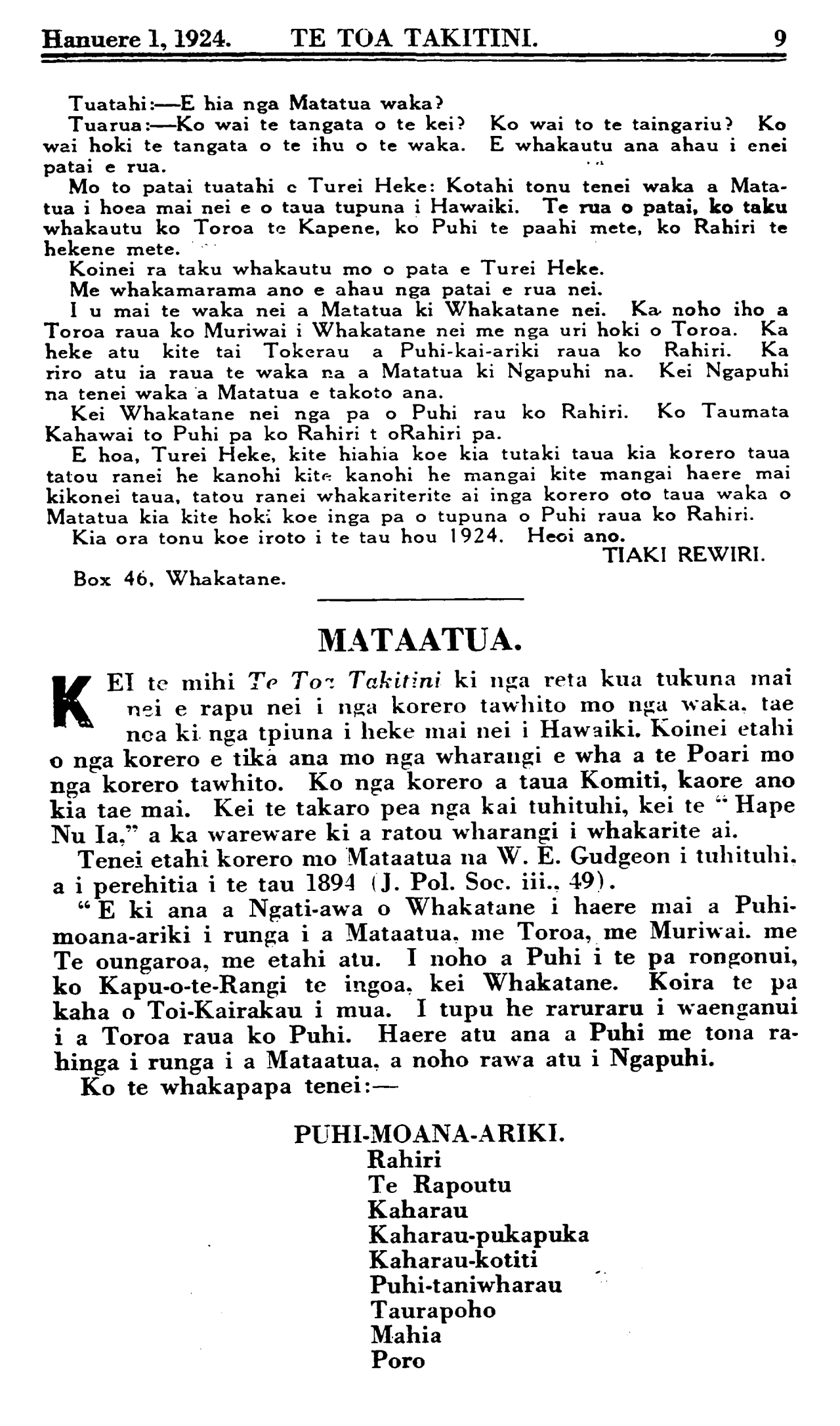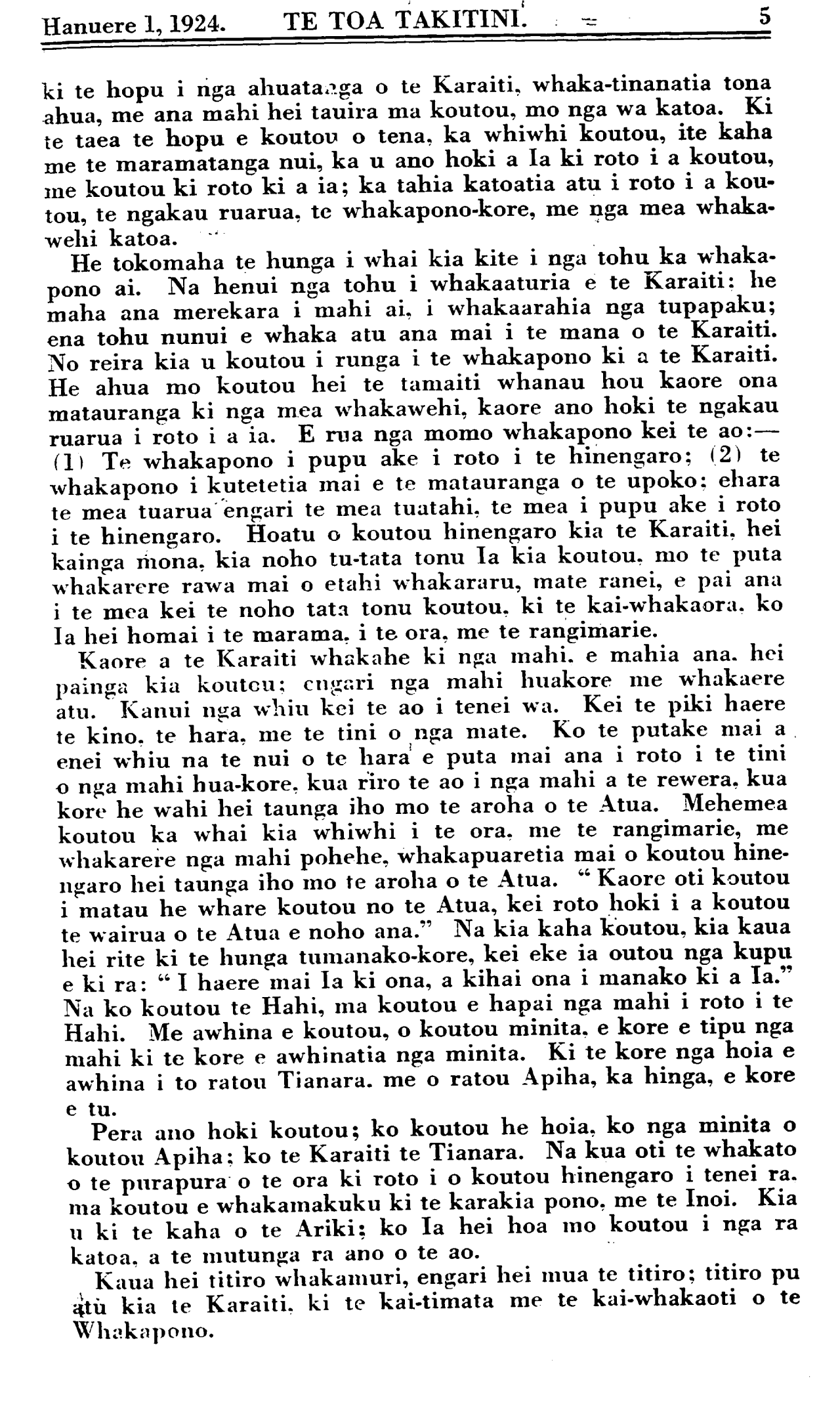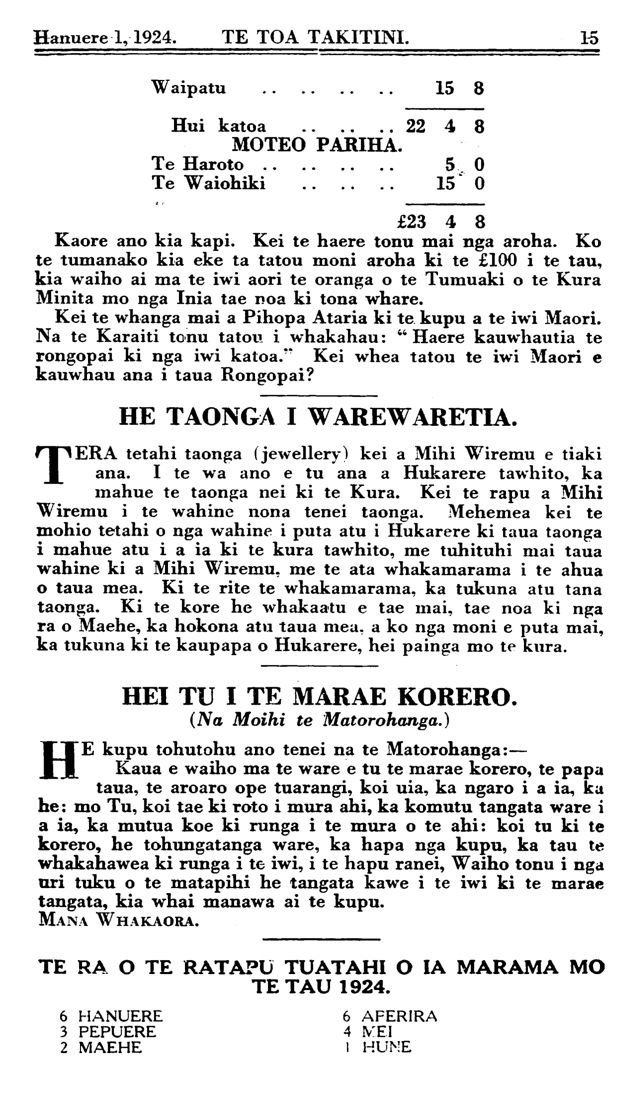 TE TOA TAKITINI. Hanuere 1. 1924.