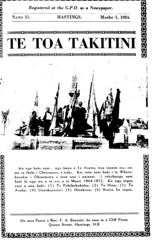 He mea Panui e Rev. F. A. Bennett, he mea ta e Cliff Press,