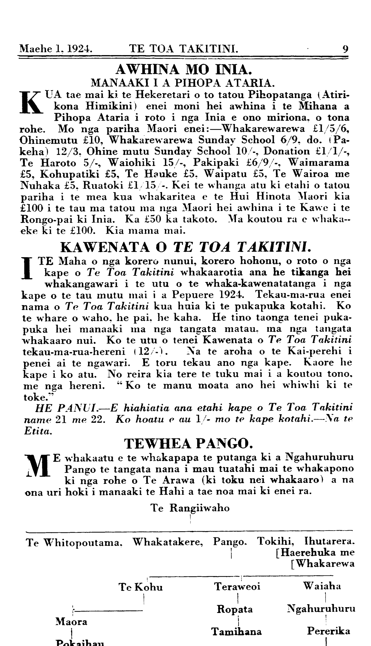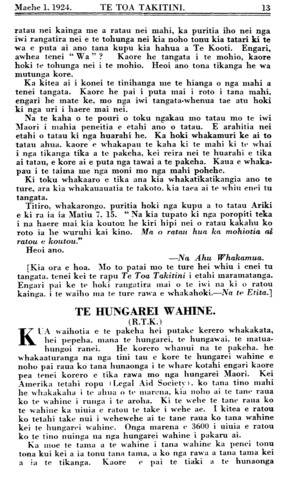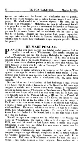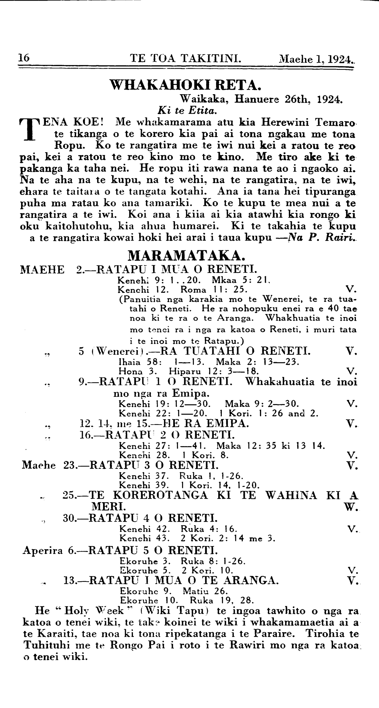 16 TE TOA TAKITINI. Maehe 1, 1924..