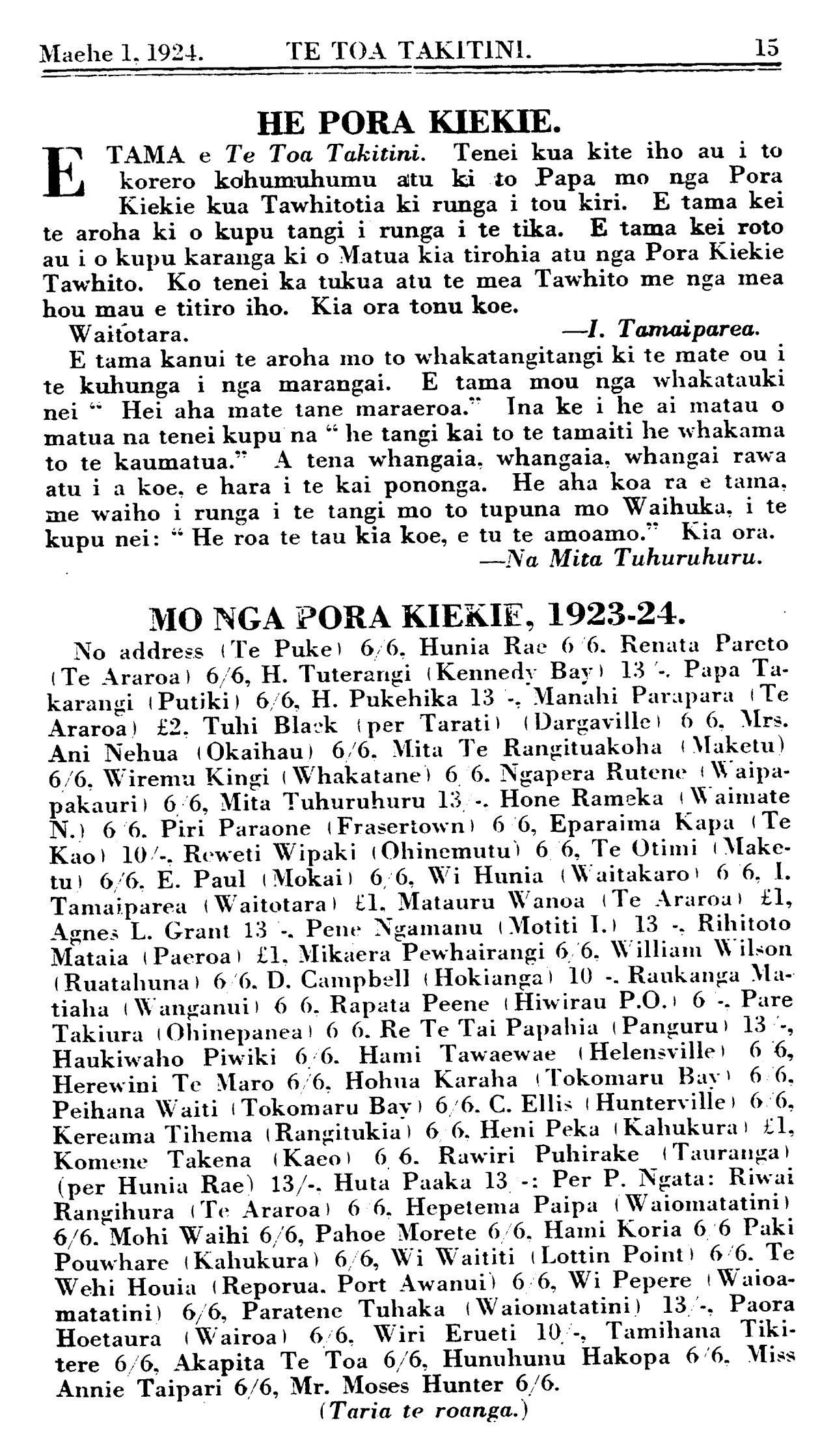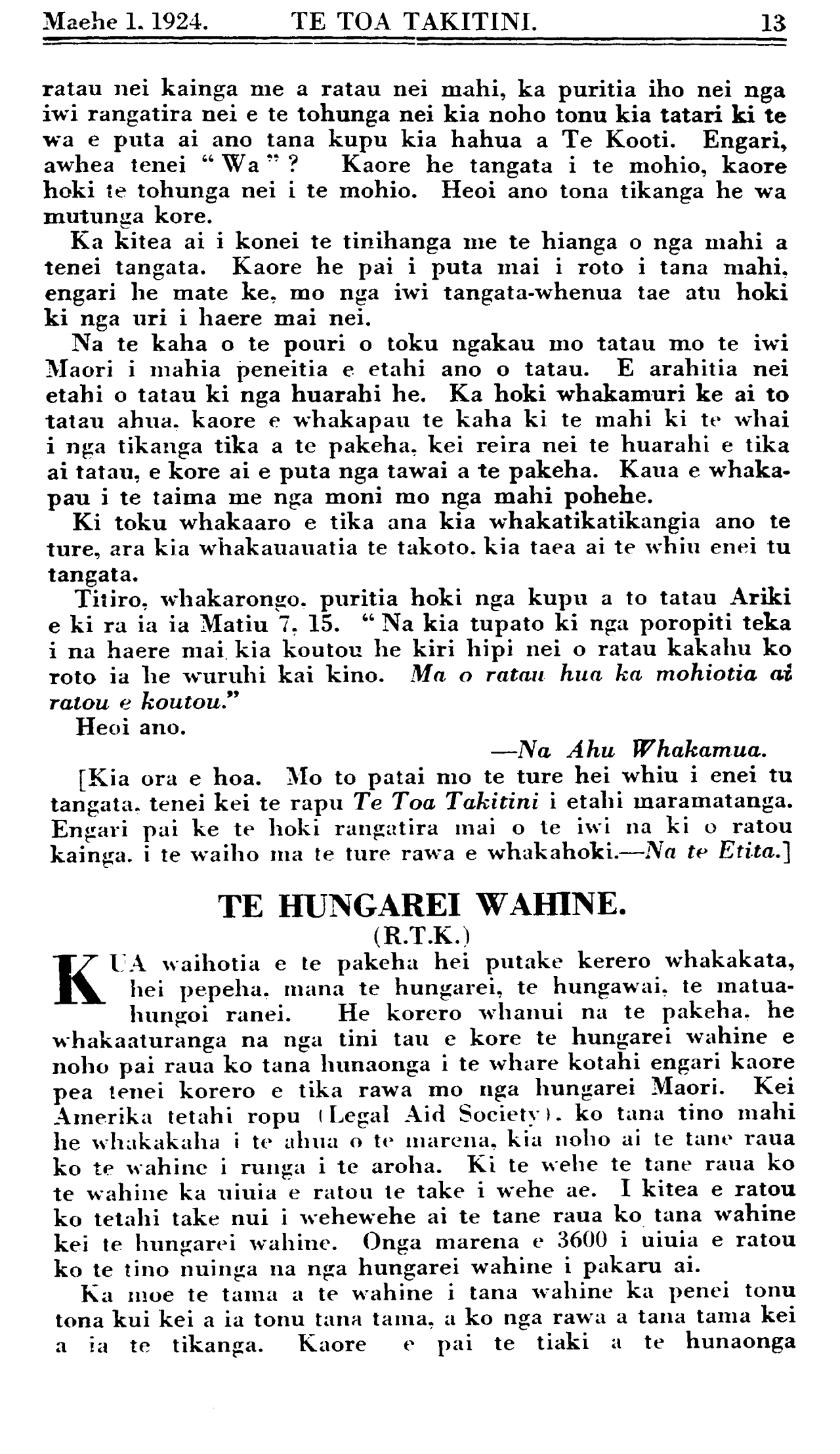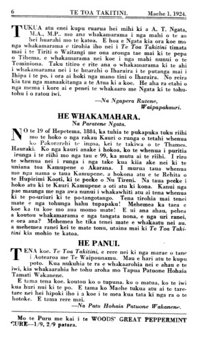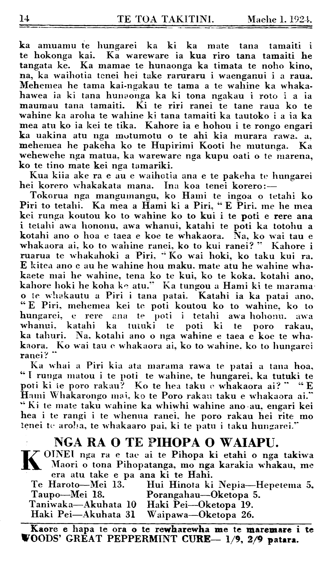 16 TE TOA TAKITINI. Maehe 1, 1924..