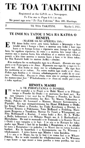 2 TE TOA TAKITINI. Maehe 1. 1924