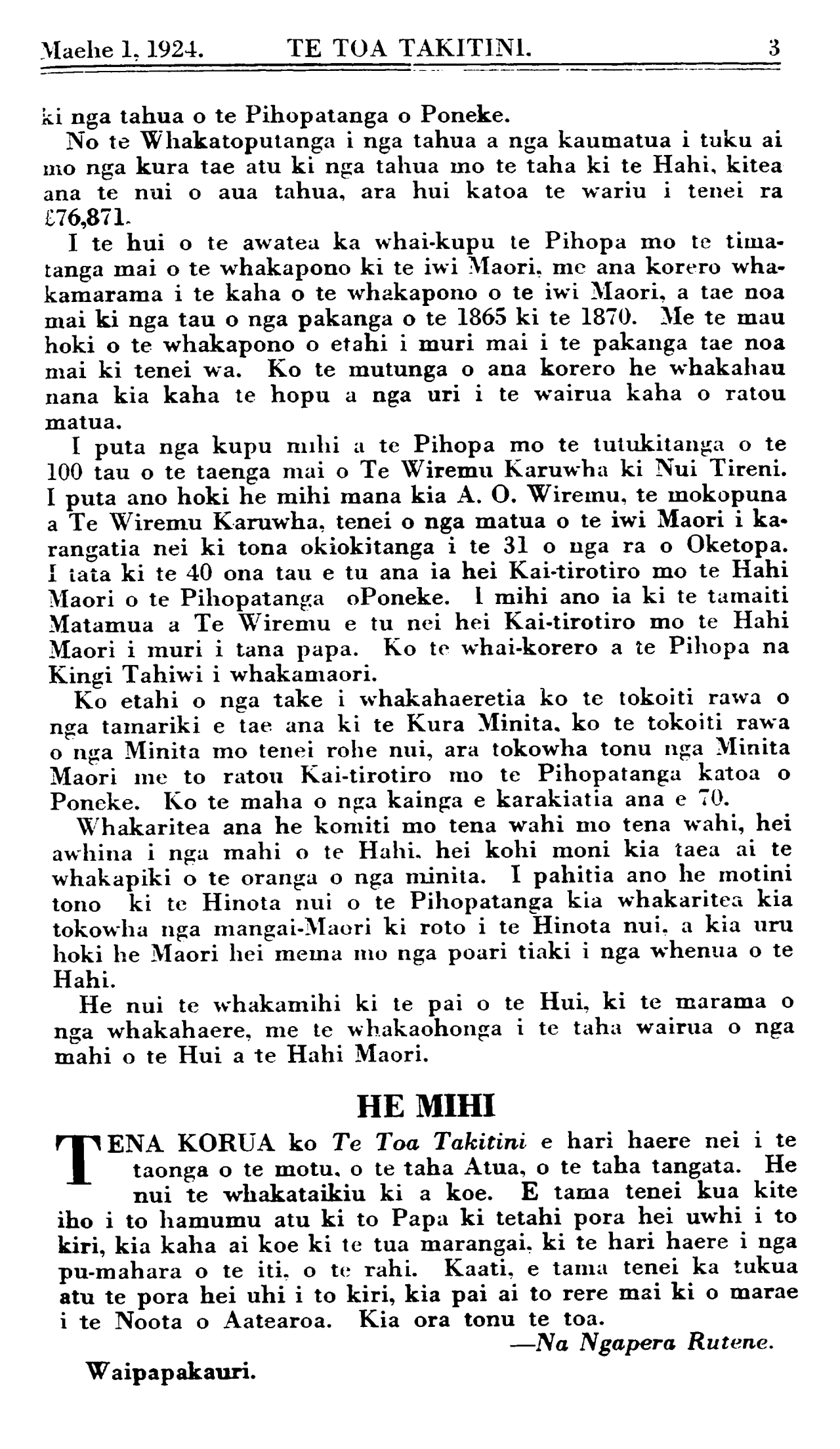 Maehe 1, 1924. TE TOA TAKITINI. 3