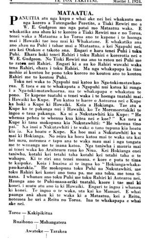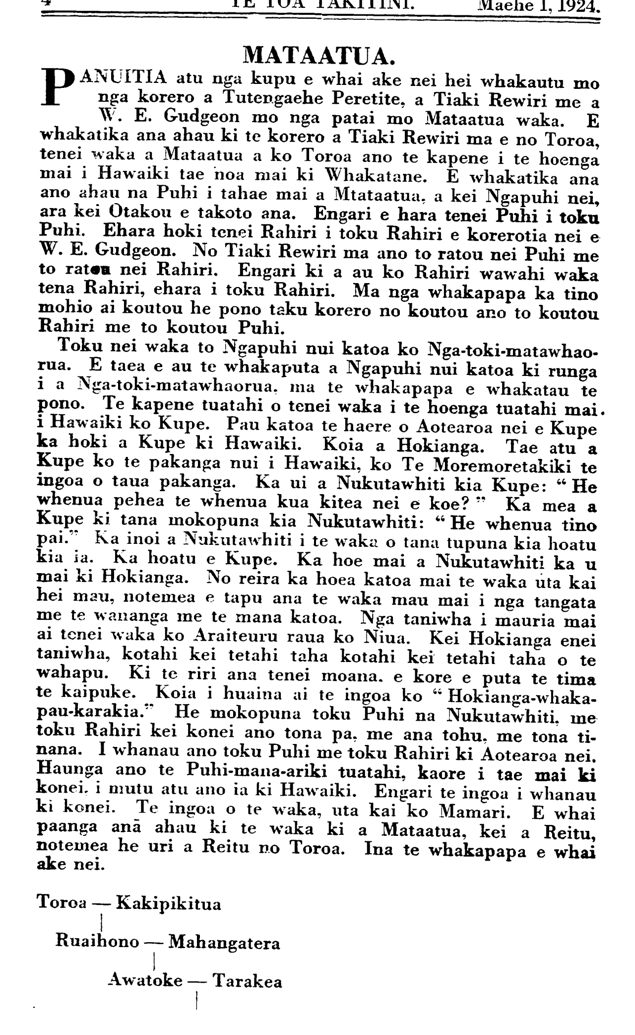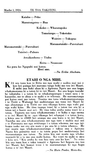 a te rangatira kowai hoki hei arai i taua kupu —Na P. Rairi.