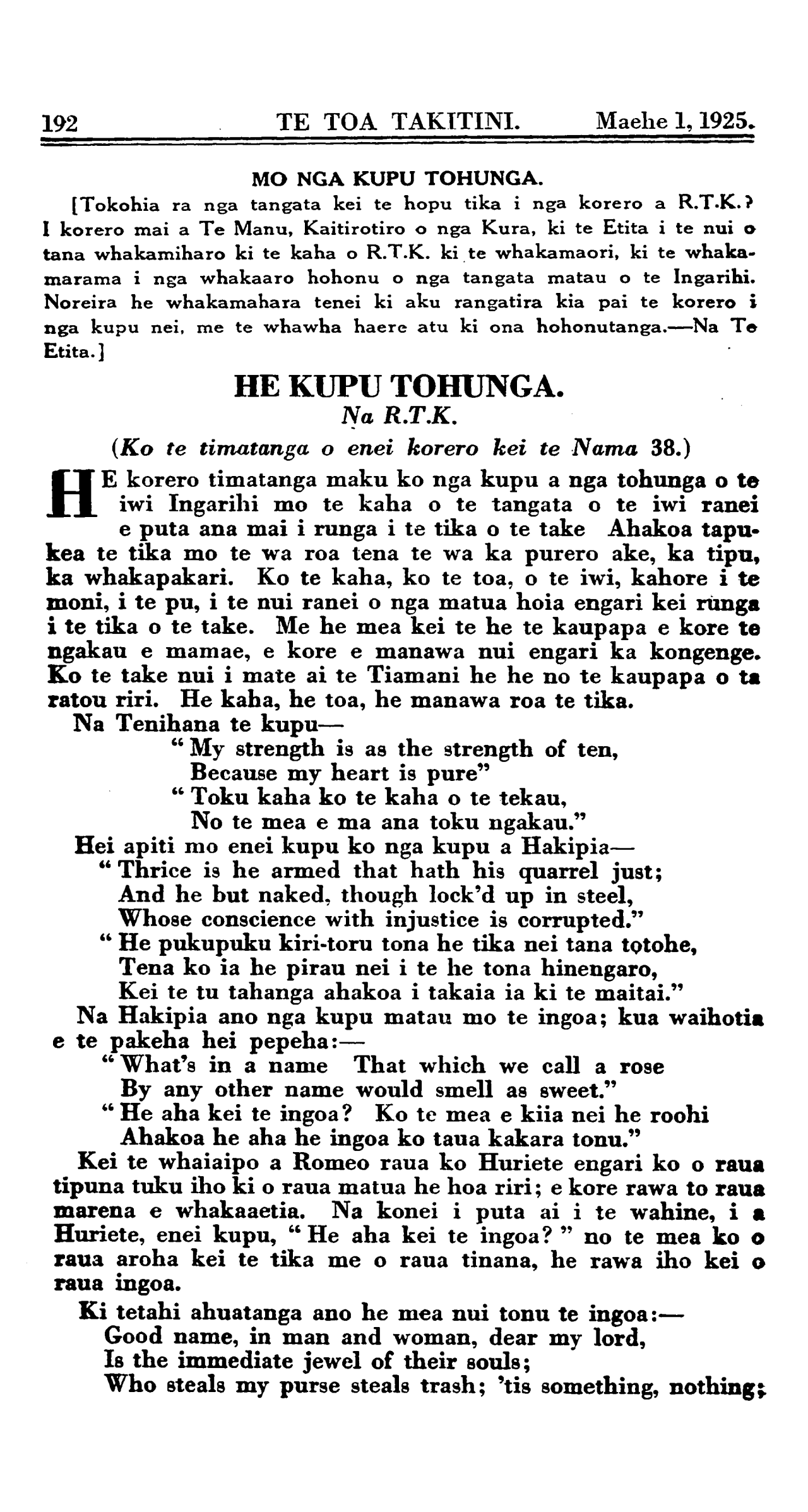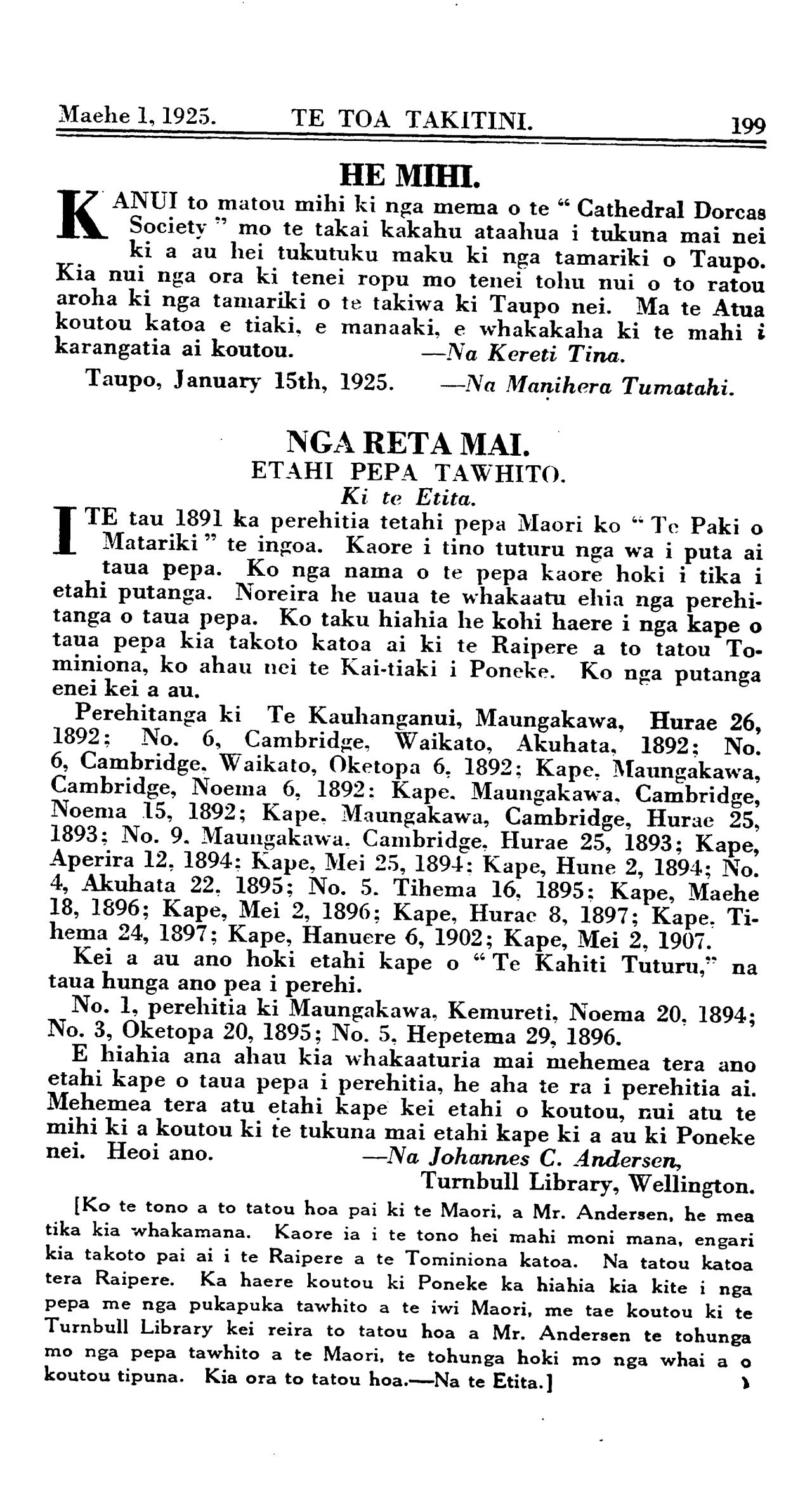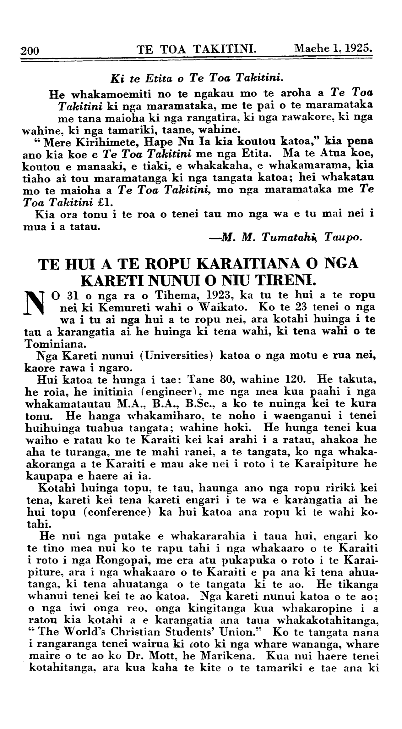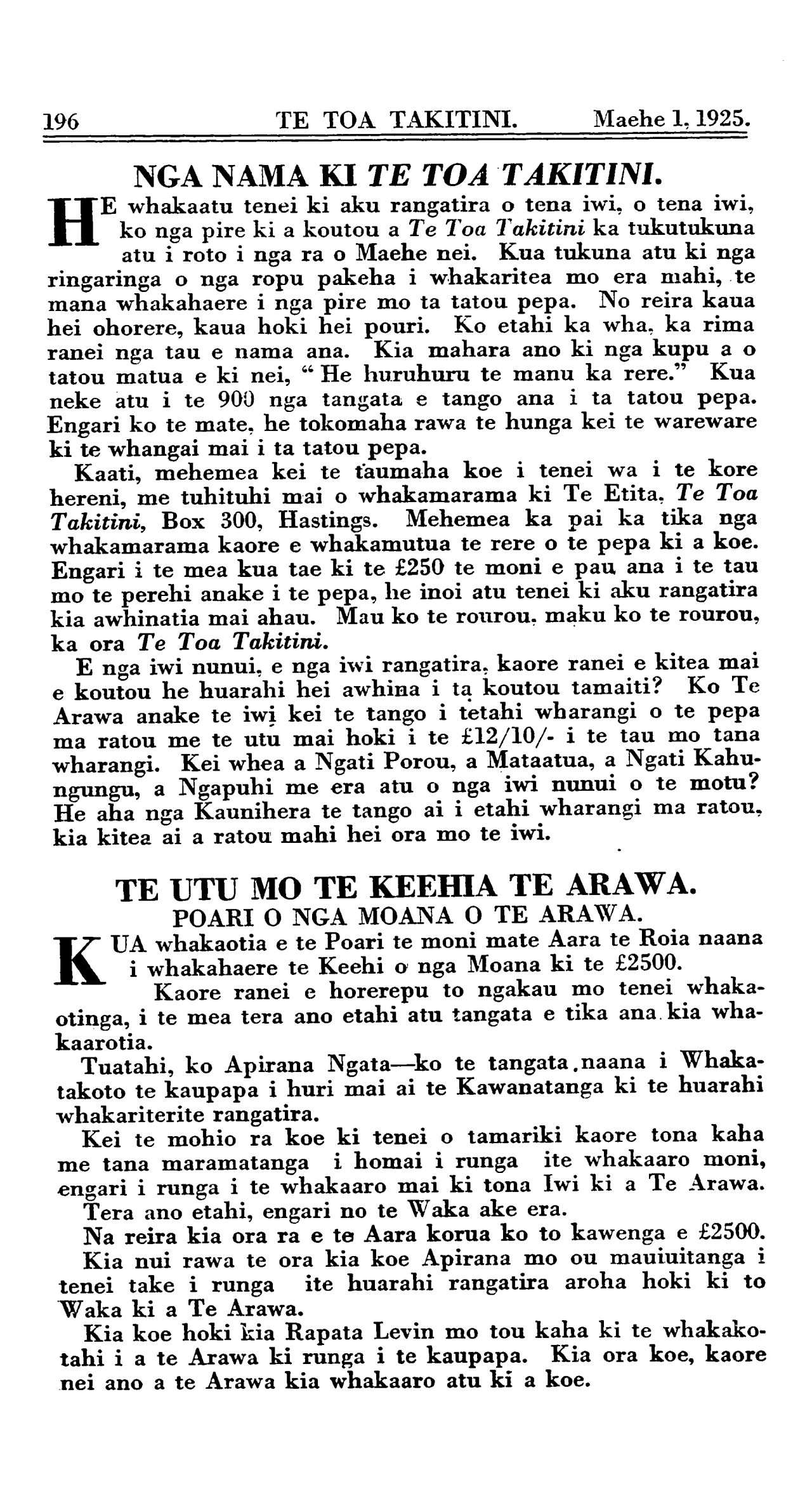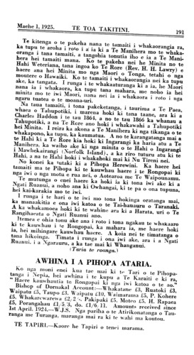 Maehe 1, 1925. TE TOA TAKITINI. 191