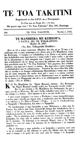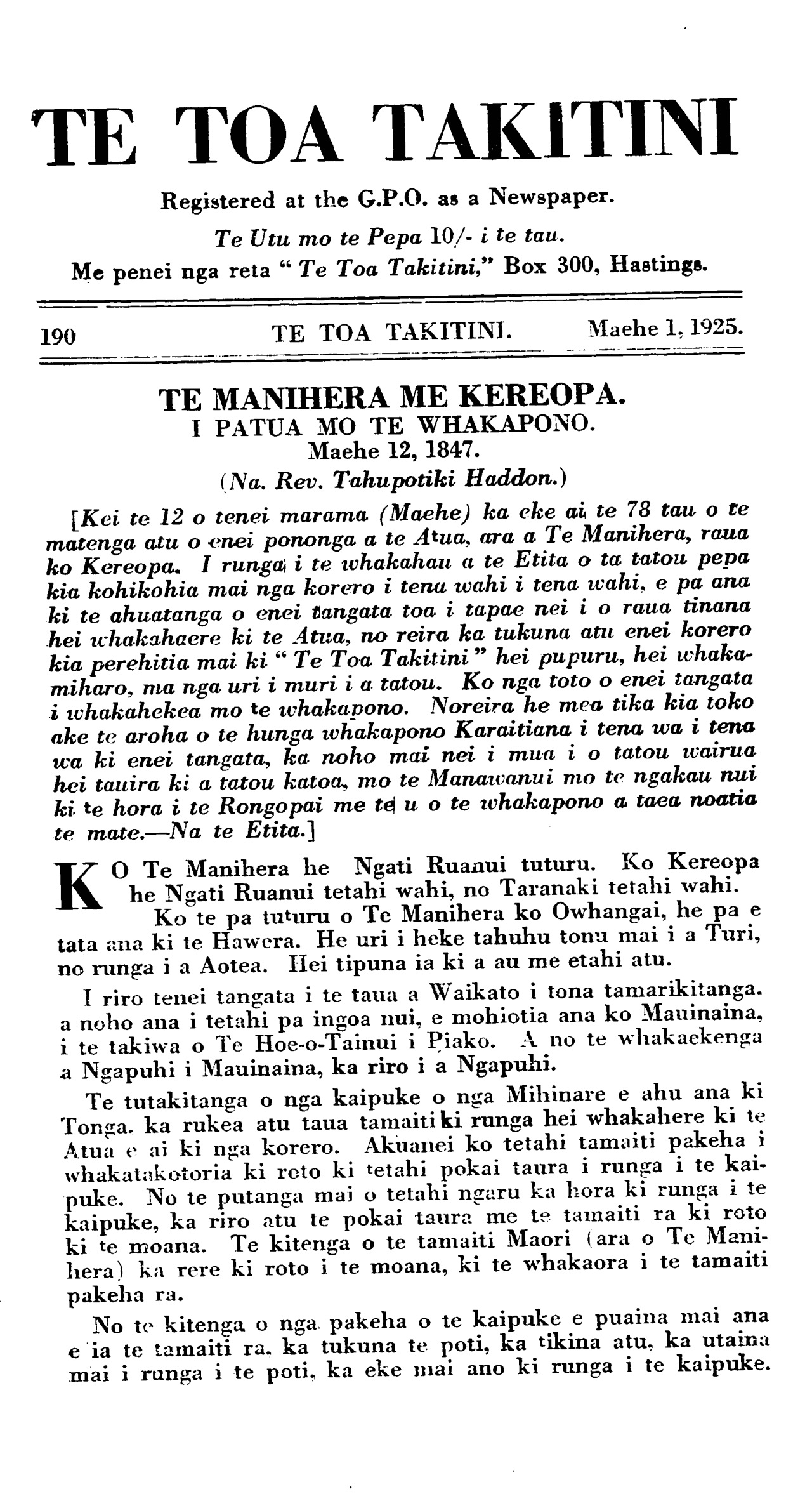 190 TE TOA TAKITINI. Maehe 1, 1925.