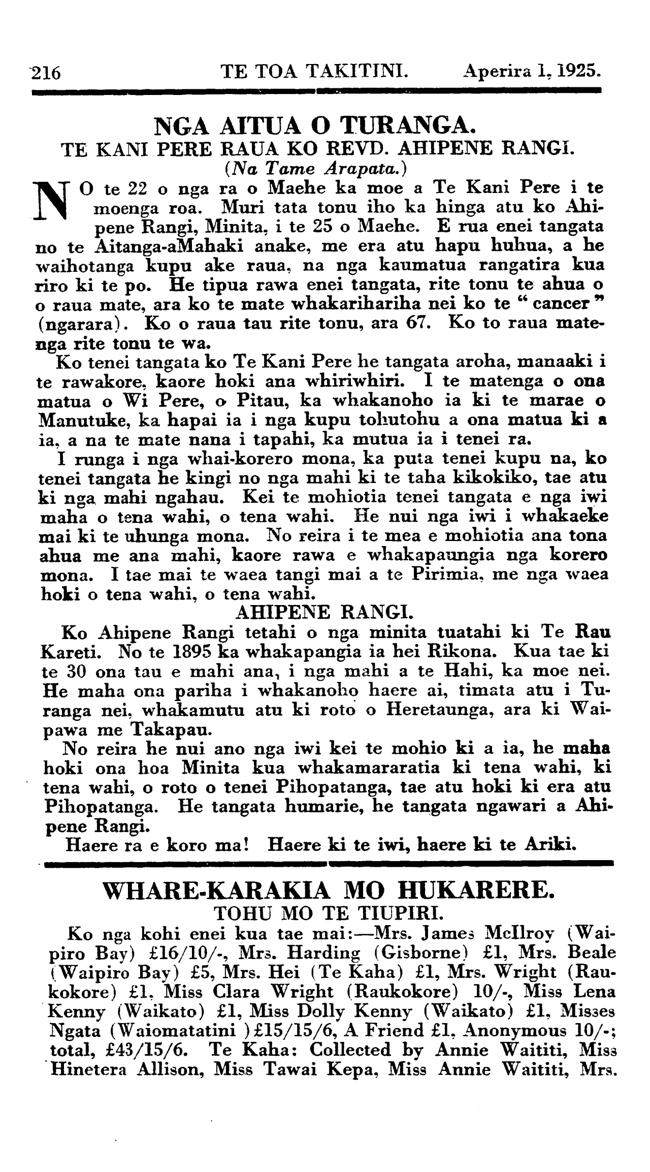 Aperira 1, 1925. TE TOA TAKITINI. 207