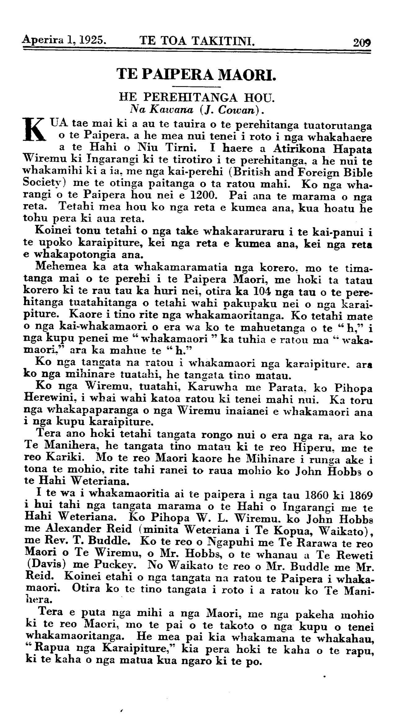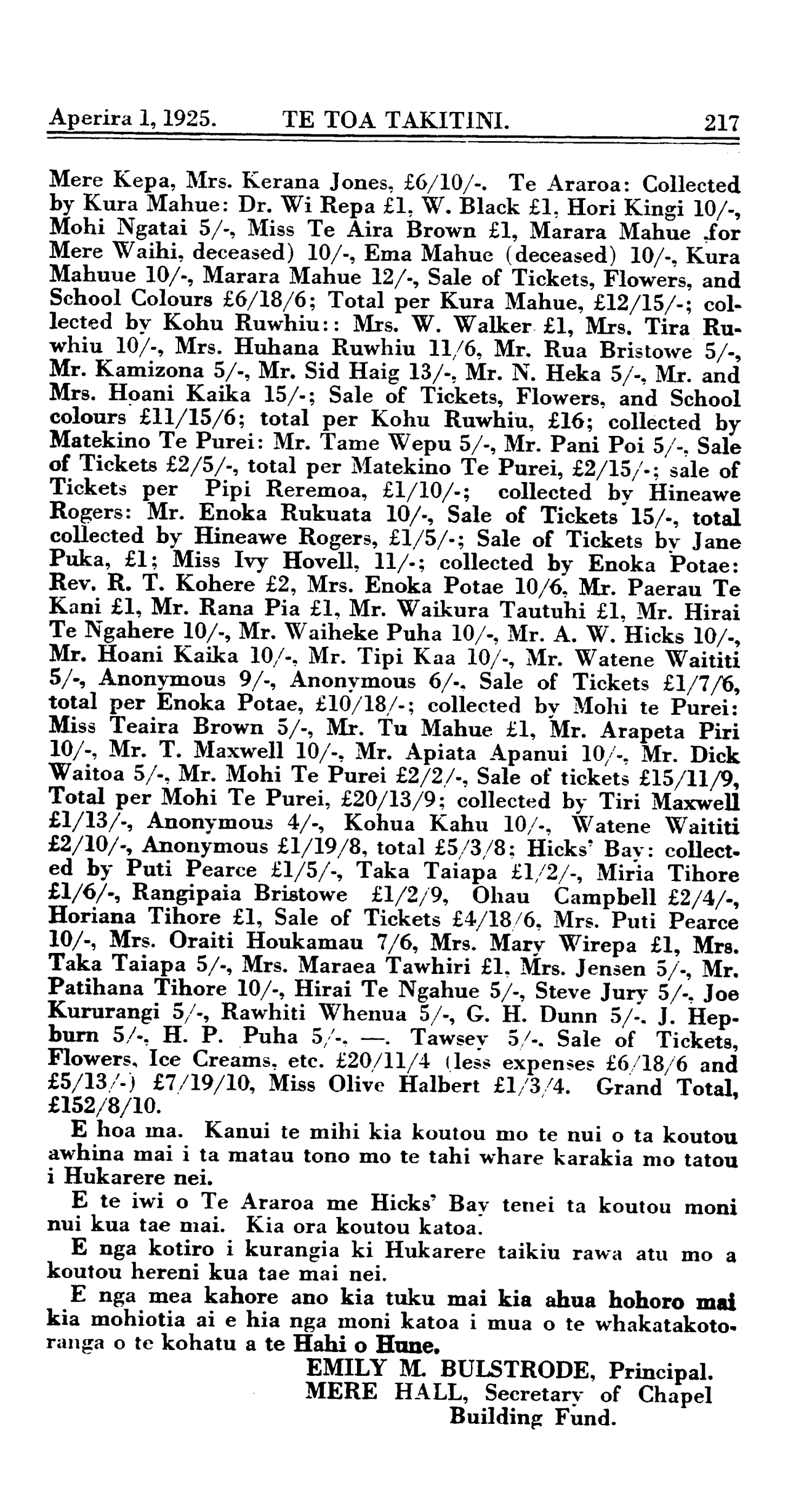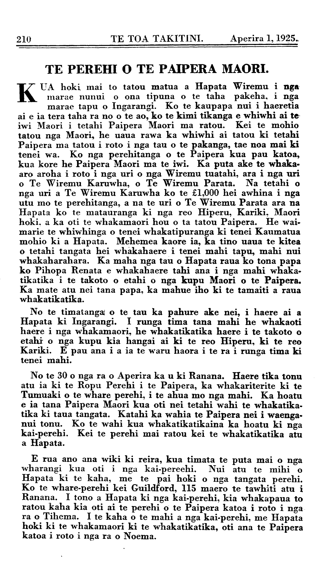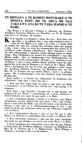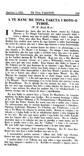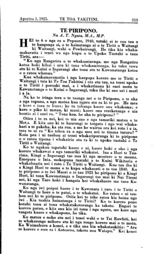 Aperira 1, 1925. TE TOA TAKITINI. 219