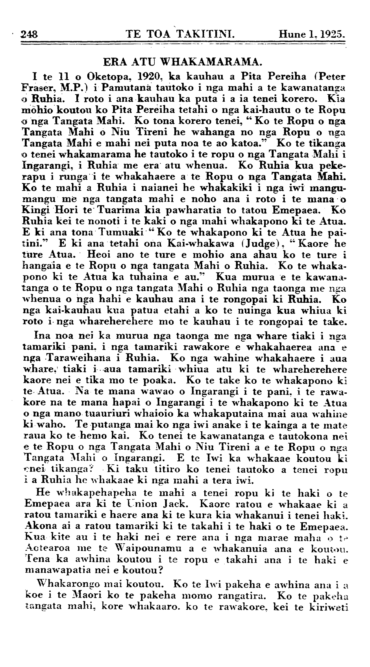 252\_\_\_\_\_\_\_\_\_ TE TOA TAKITINI. Hune 1, 1925