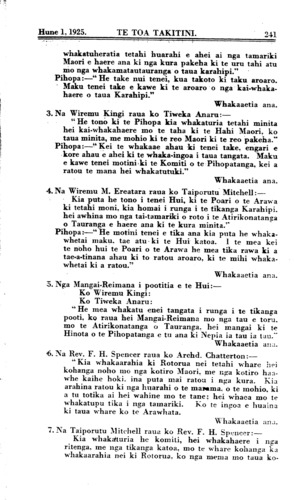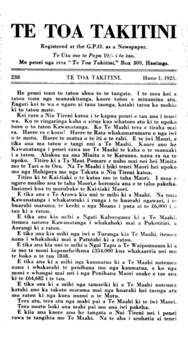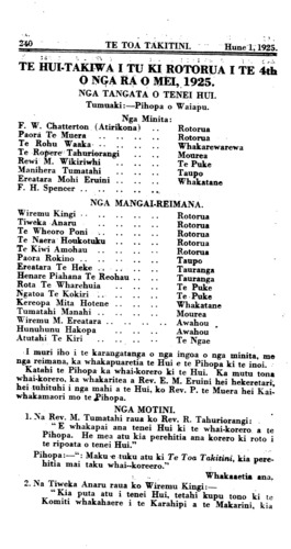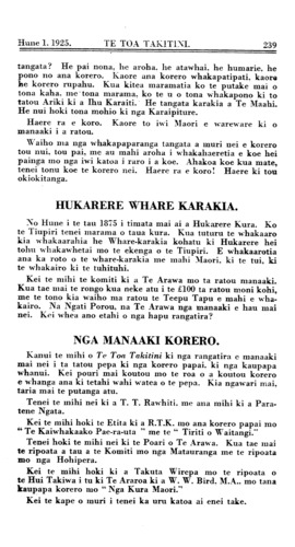 Hune 1. 1925. TE TOA TAKITINI. 239