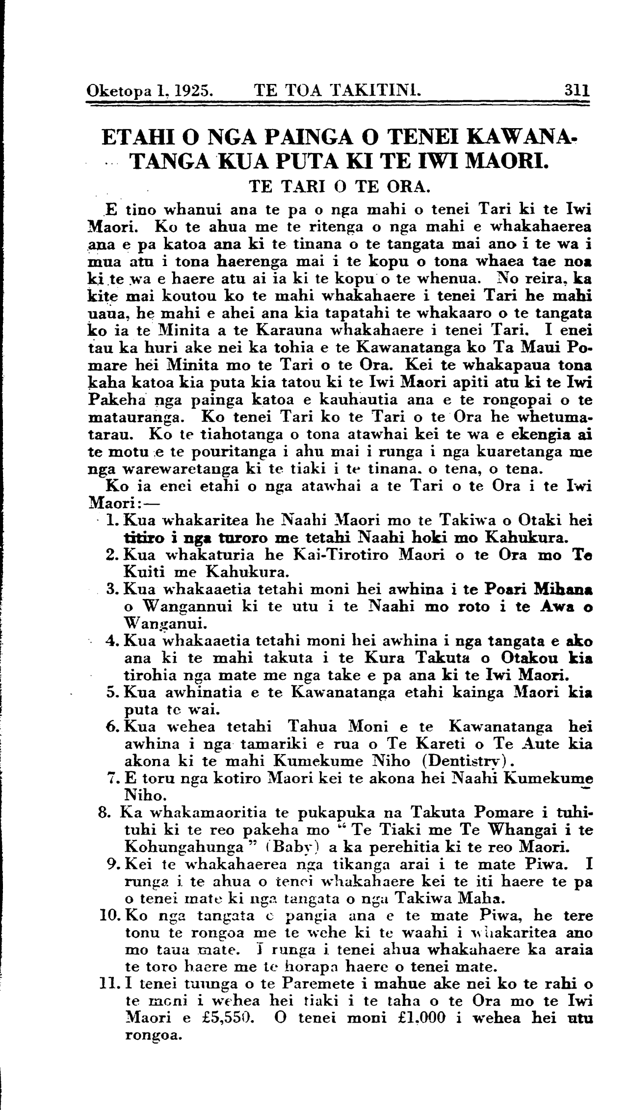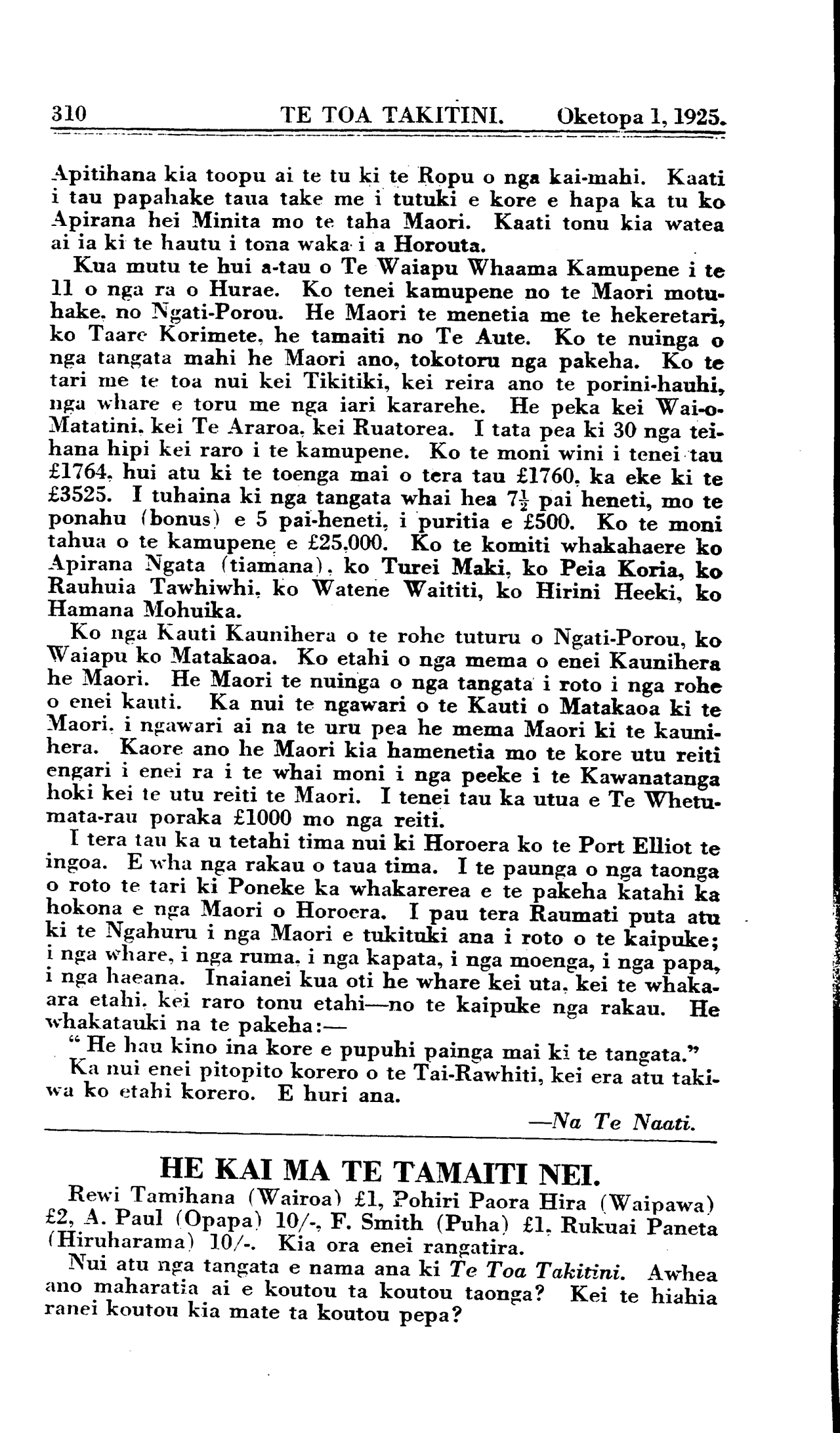 Oketopa 1, 1925. TE TOA TAKITINI. 315