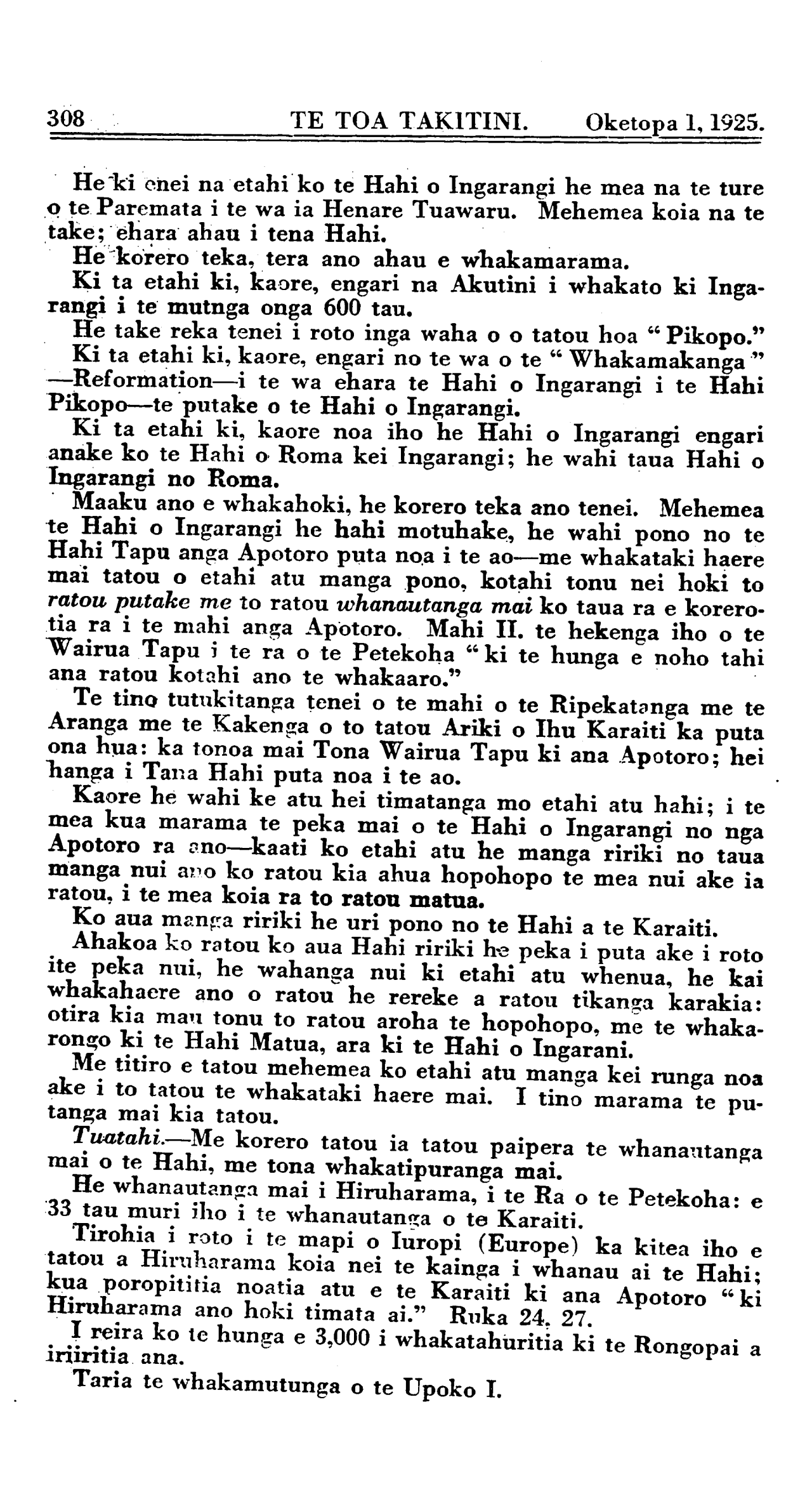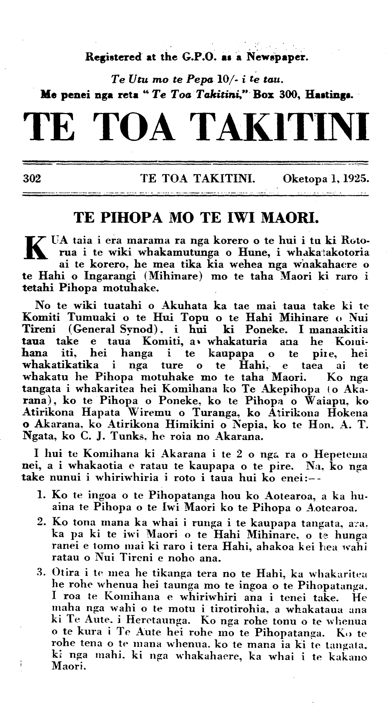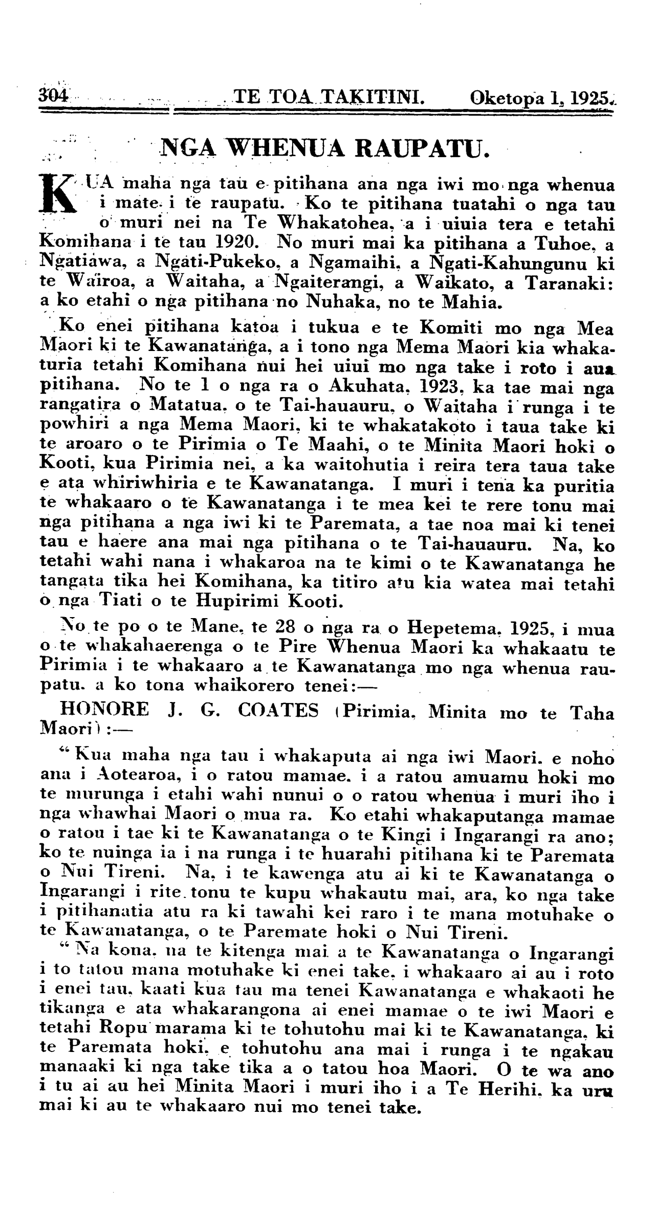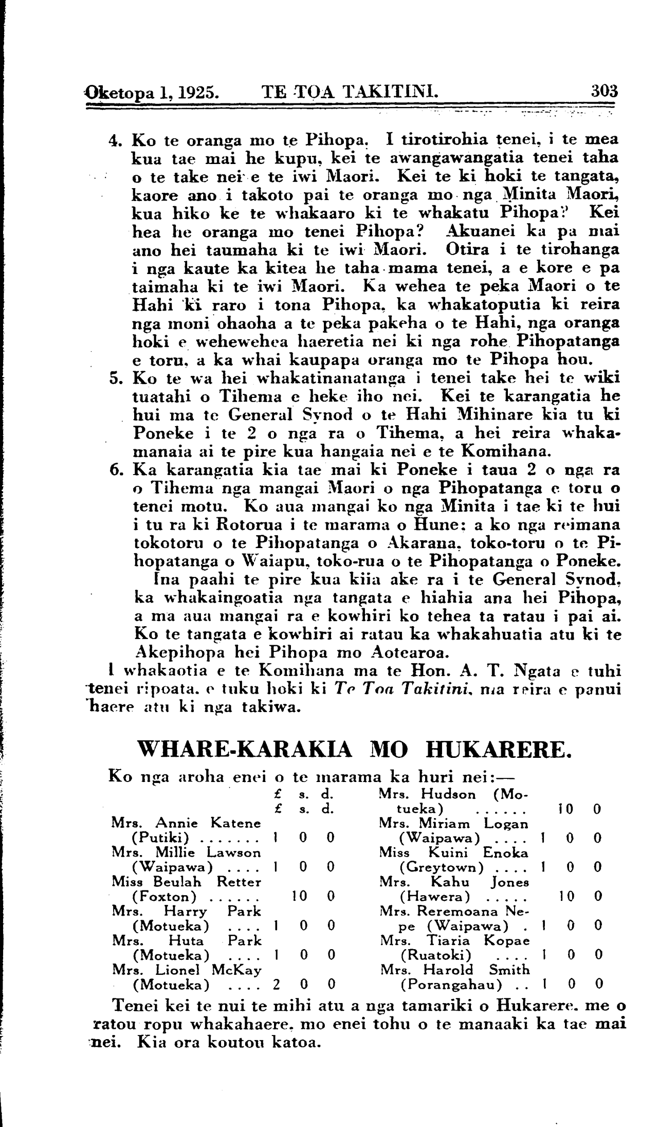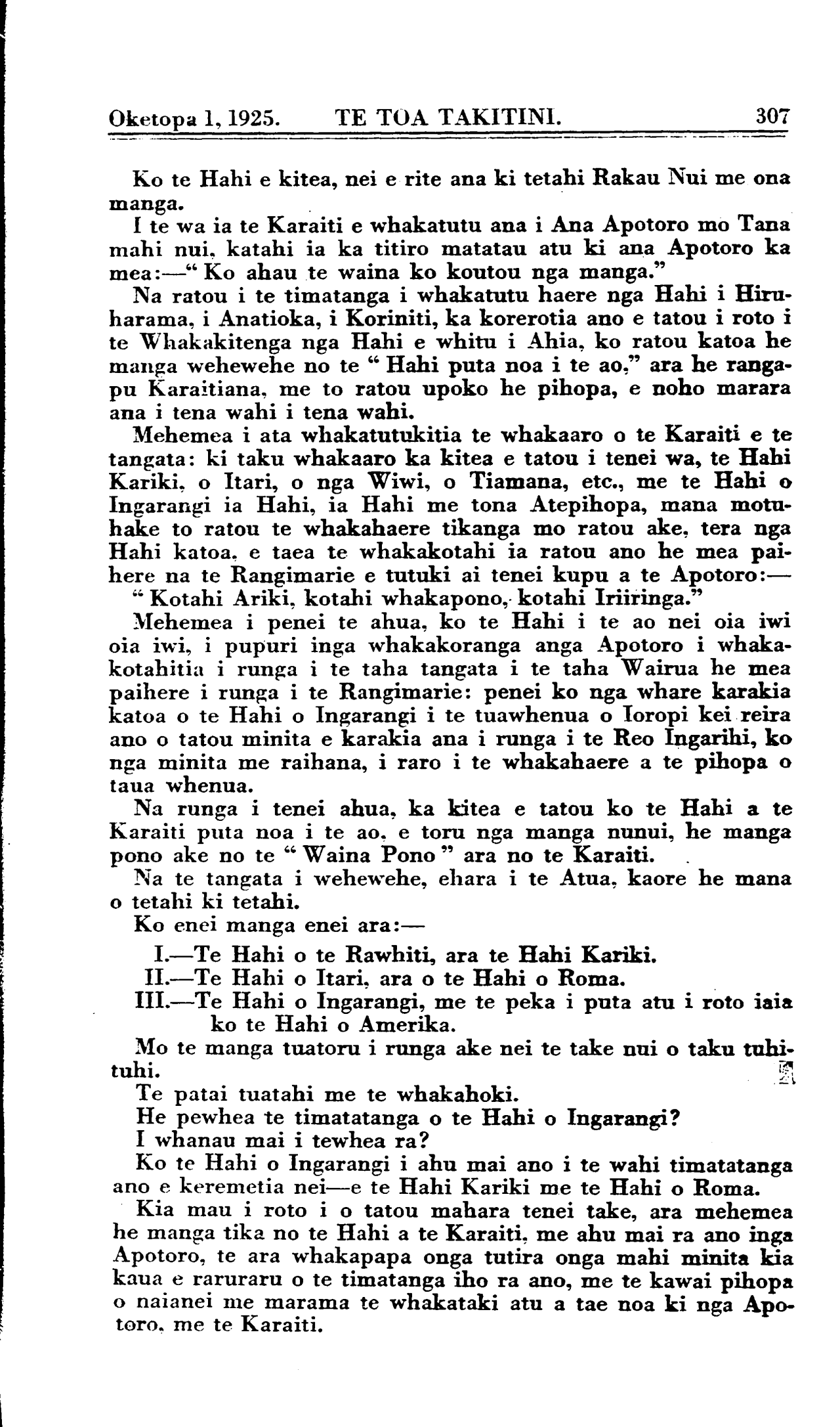Oketopa 1, 1925. TE TOA TAKITINI. 303