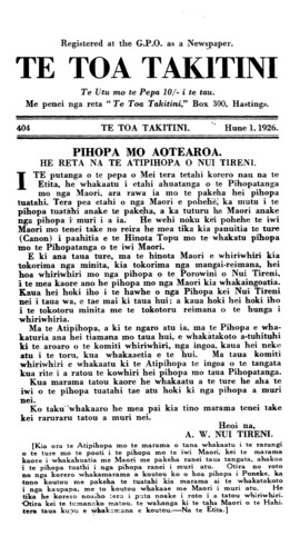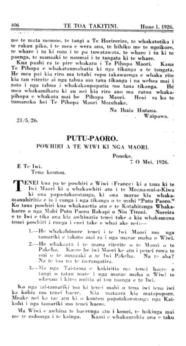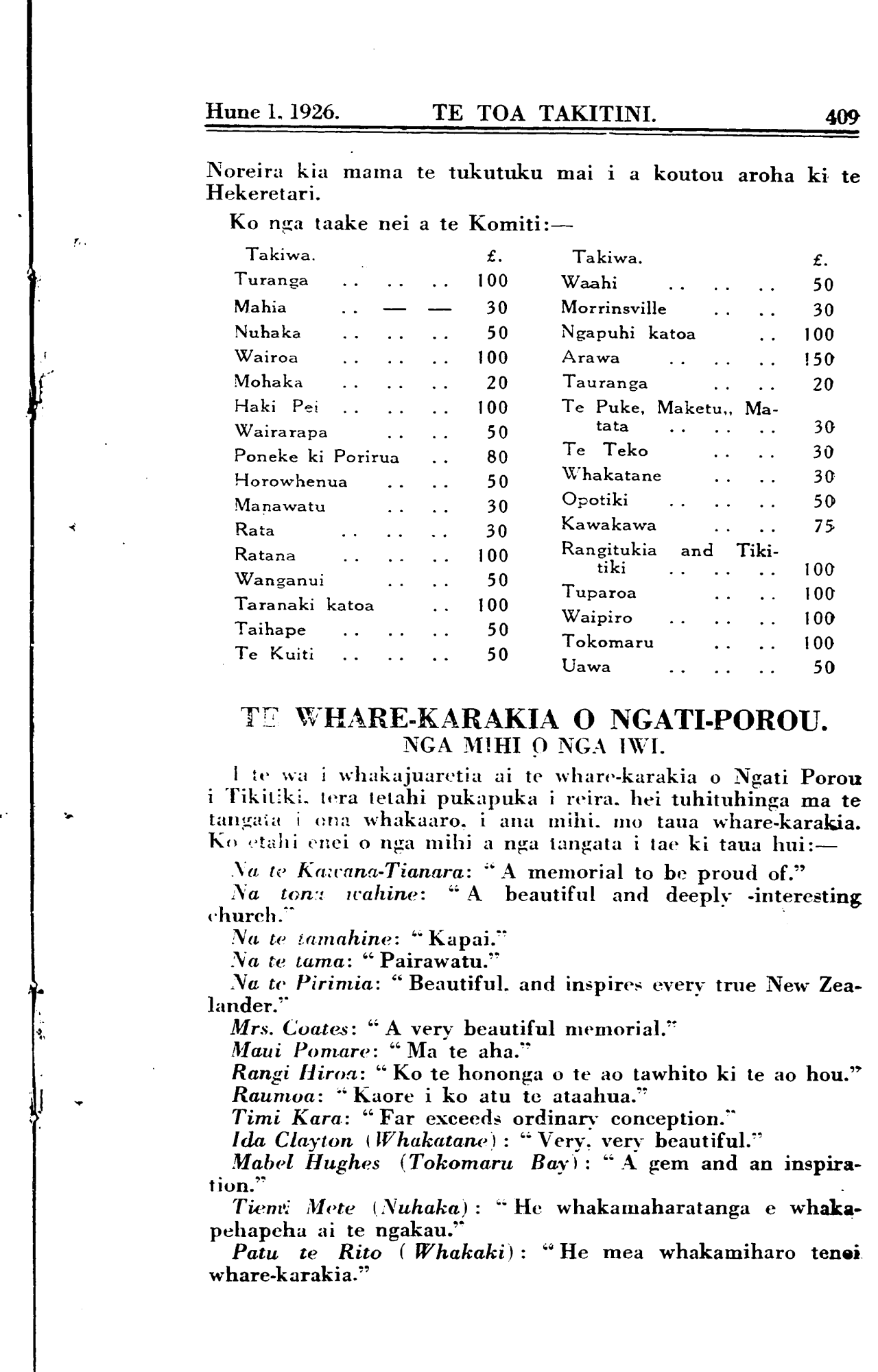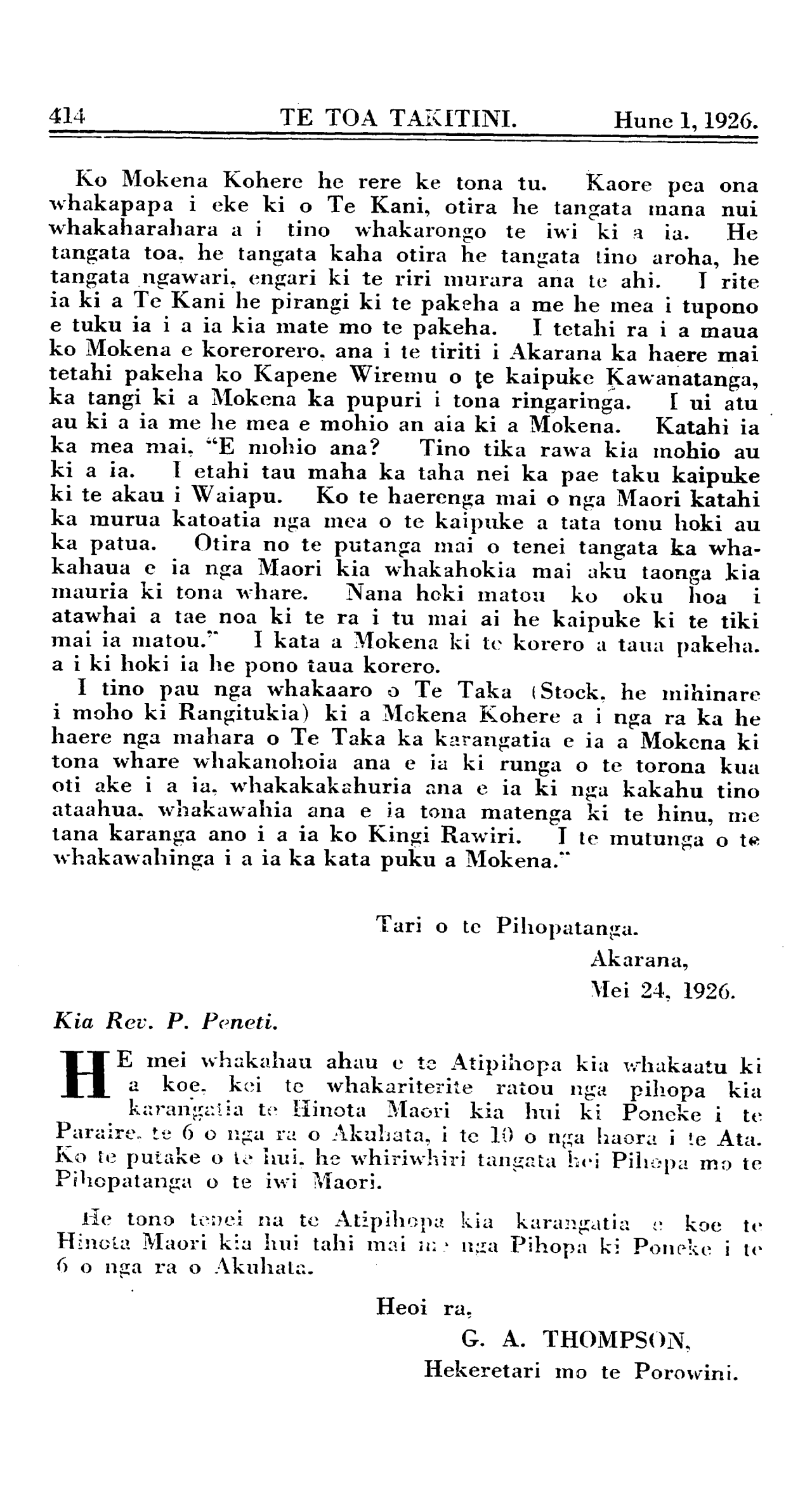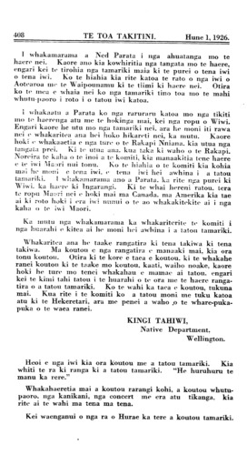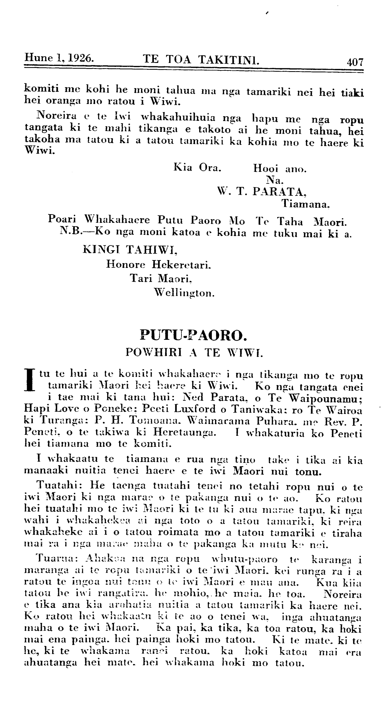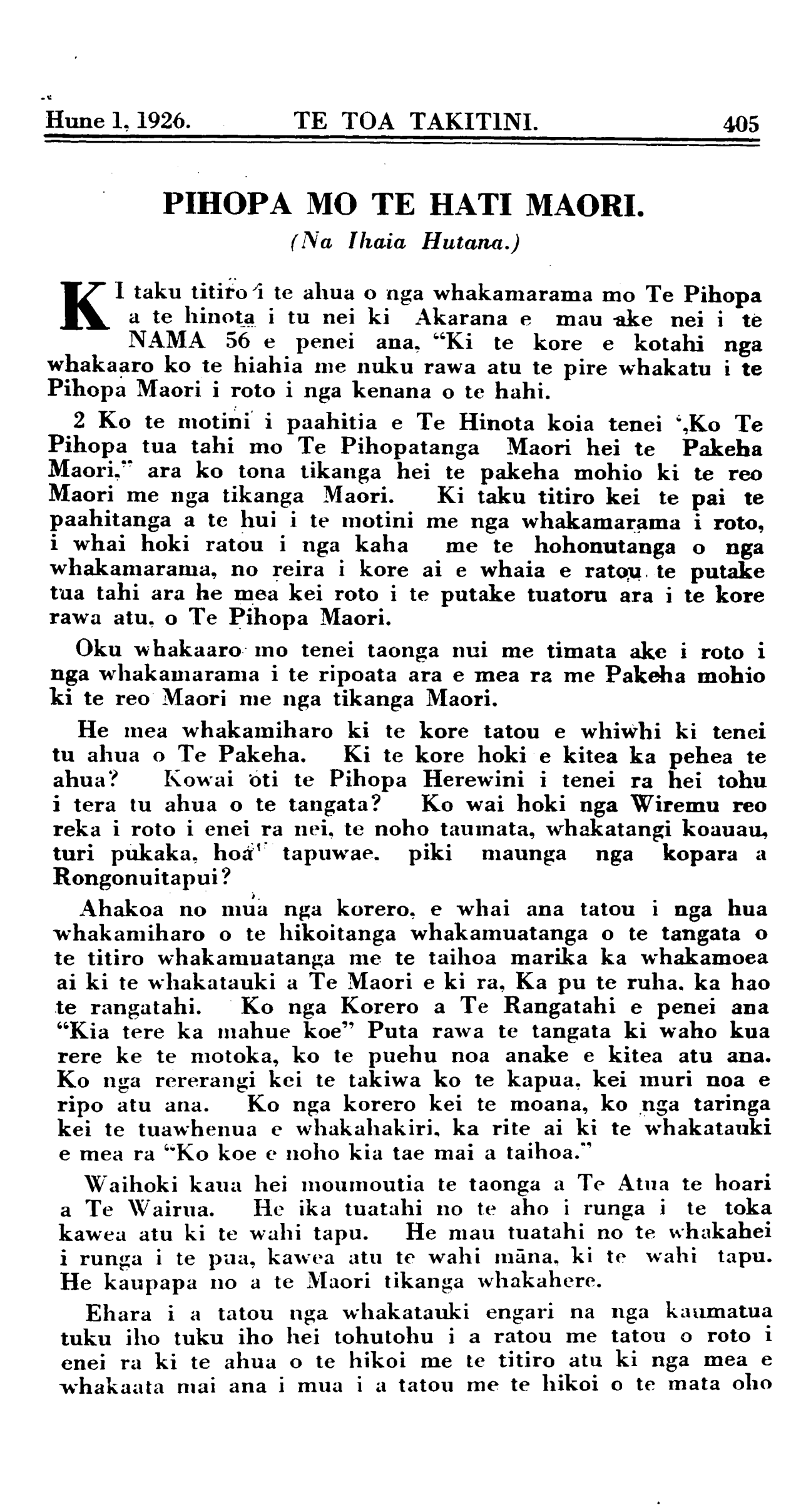Hune 1, 1926. TE TOA TAKITINI. 405
