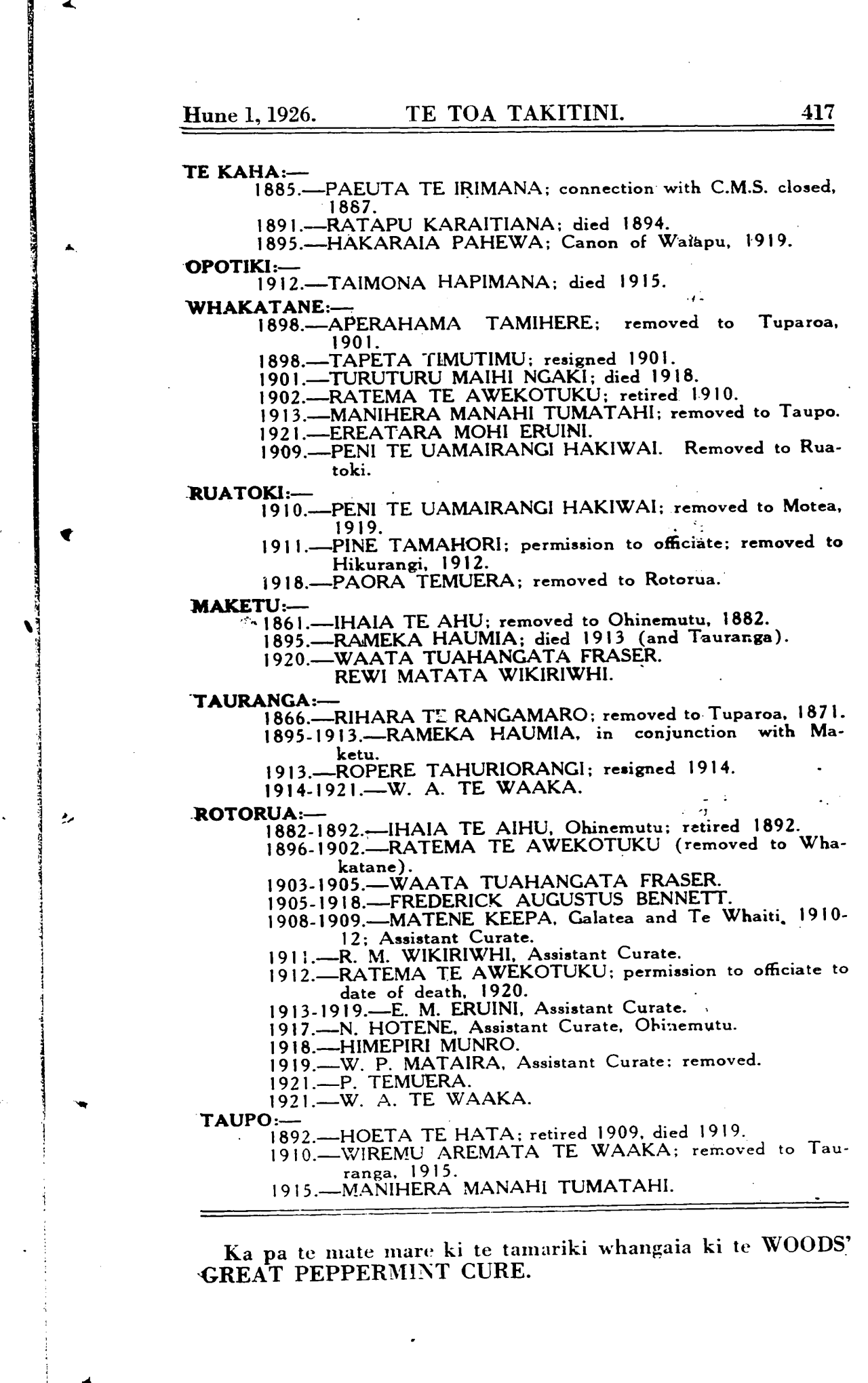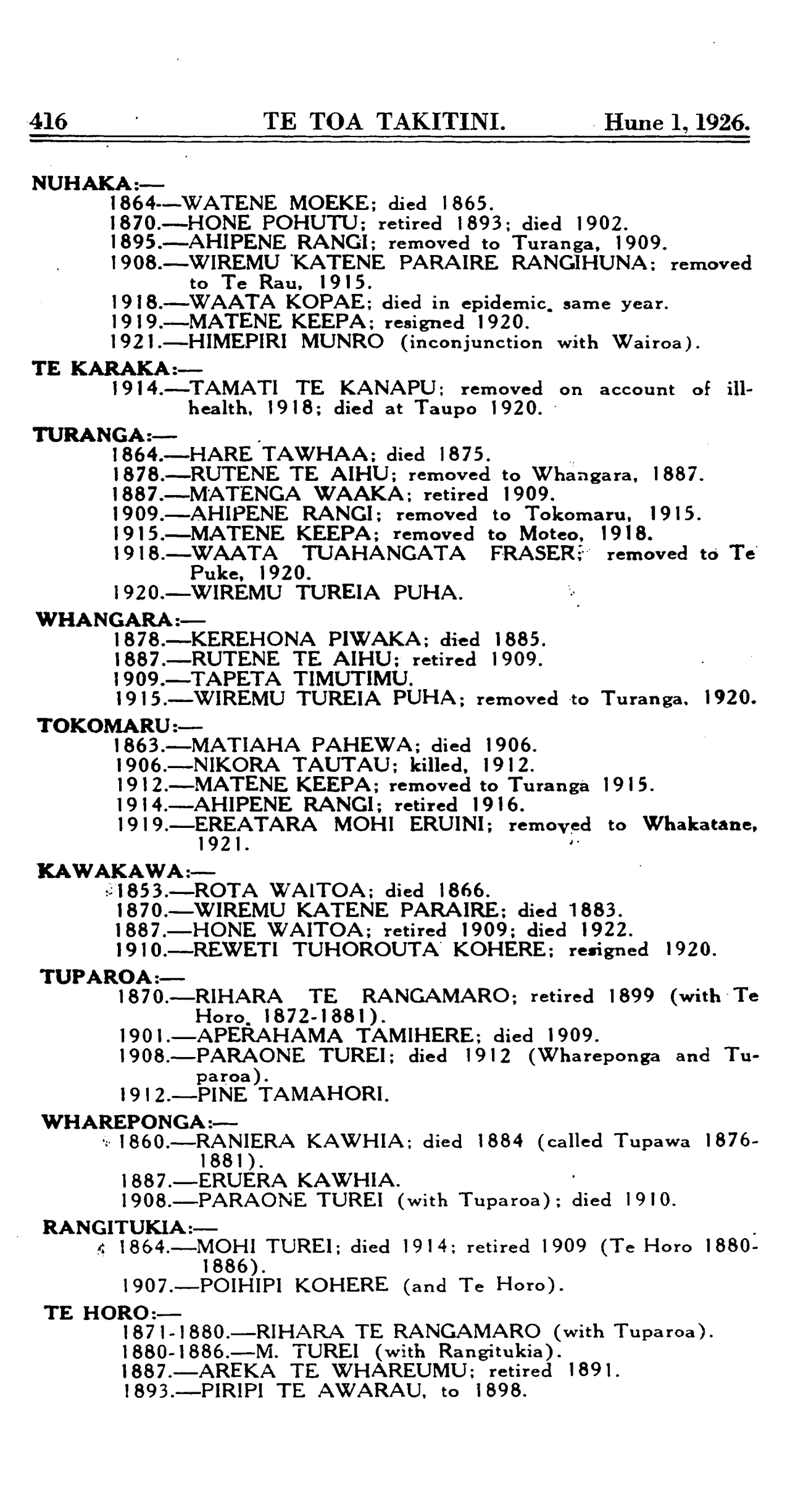 Hune 1, 1926. TE TOA TAKITINI. 417