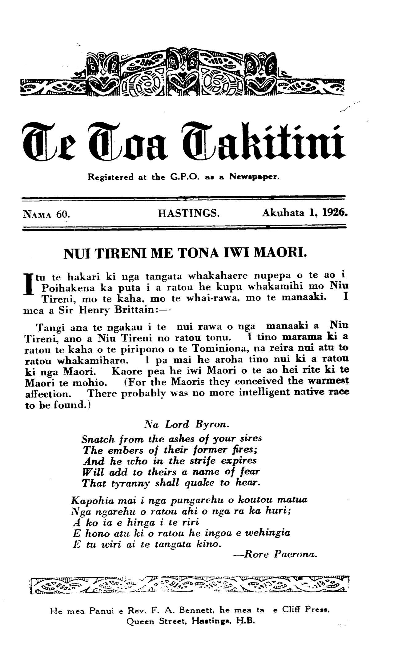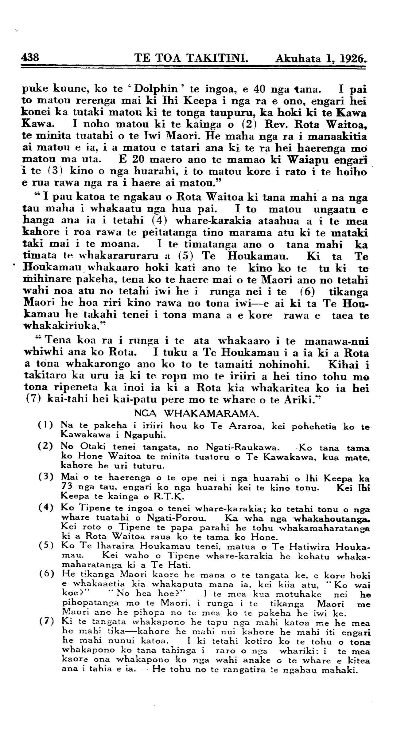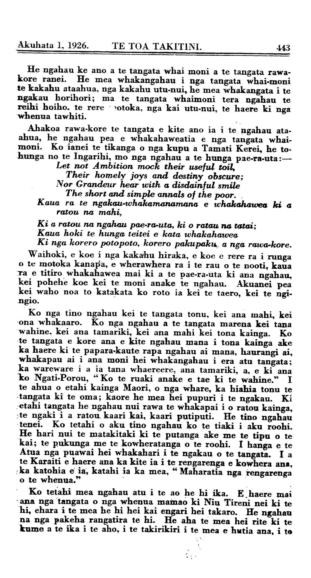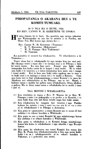 Akuhata 1, 1926. TE TOA TAKITINI. 439