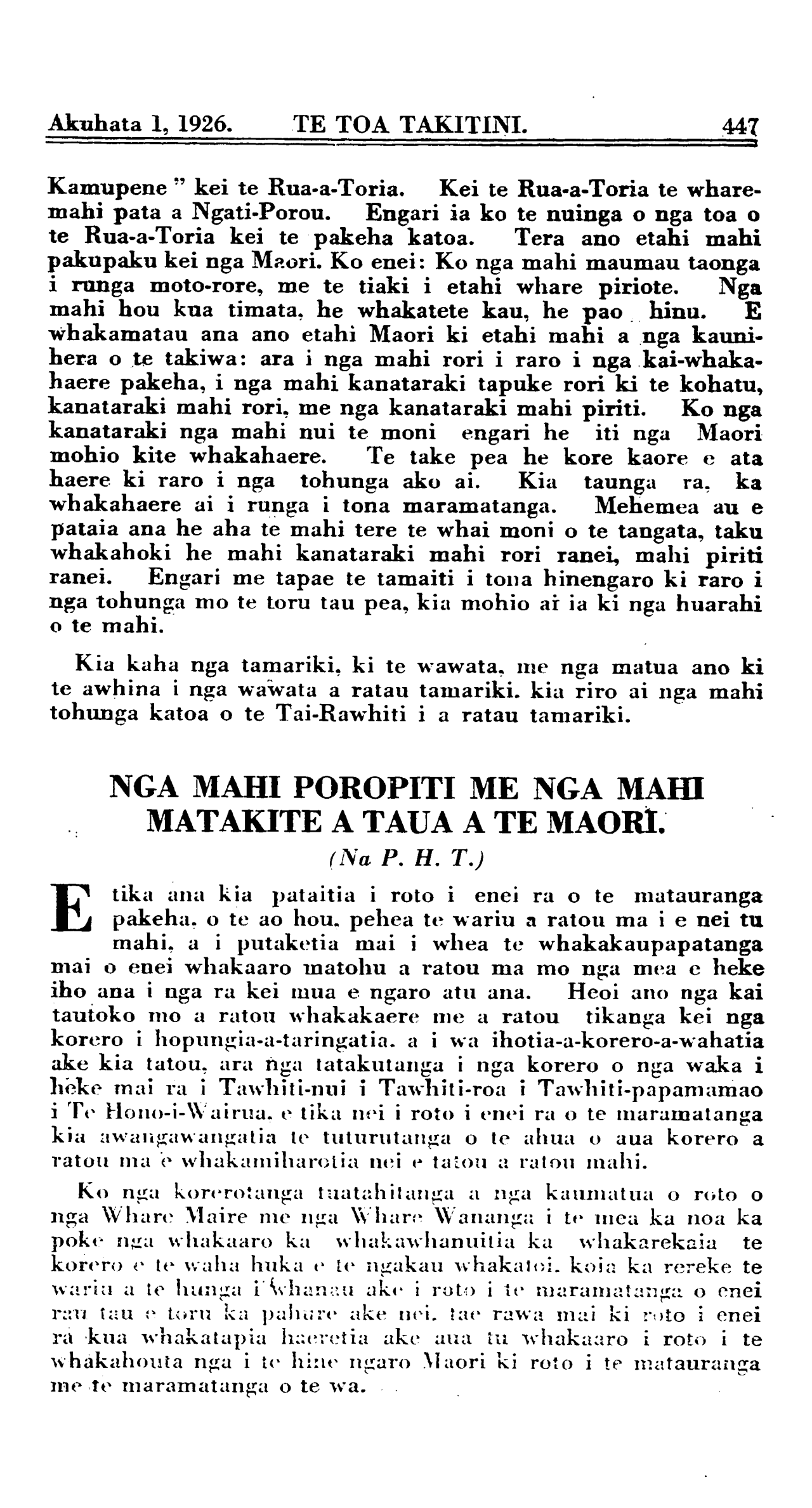 Akuhata 1, 1926. TE TOA TAKITINI. 449