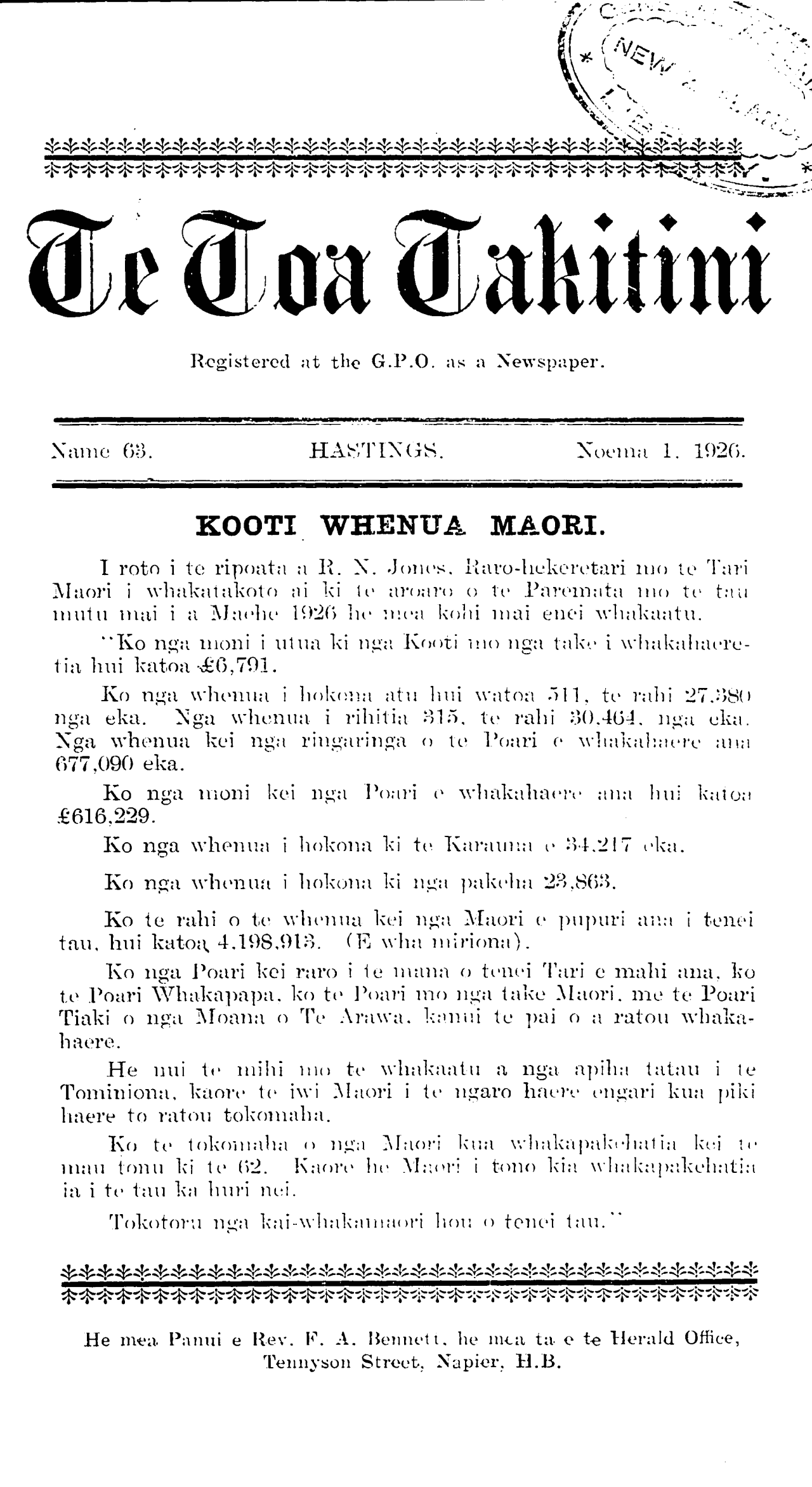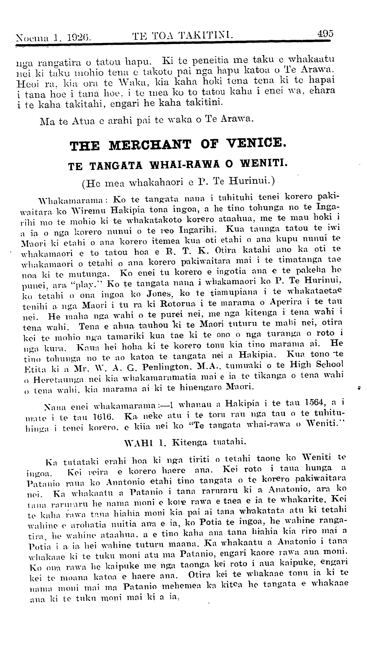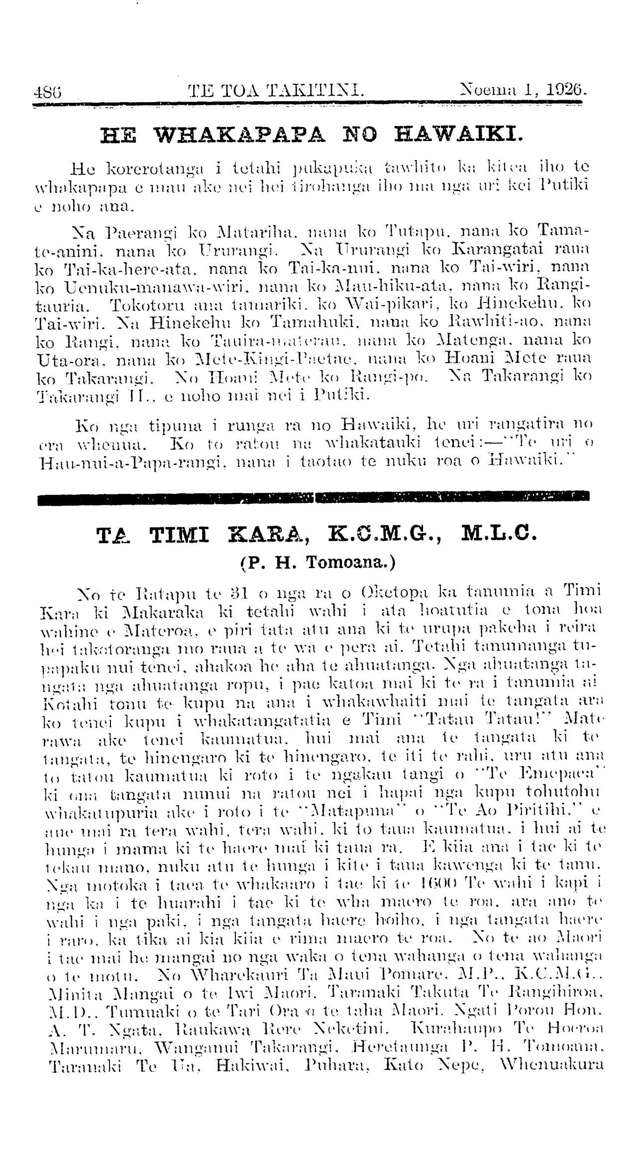 486\_\_\_\_\_\_\_\_\_\_TE TOA TAKITINI. \_\_\_\_\_\_\_Noema 1, 1926.