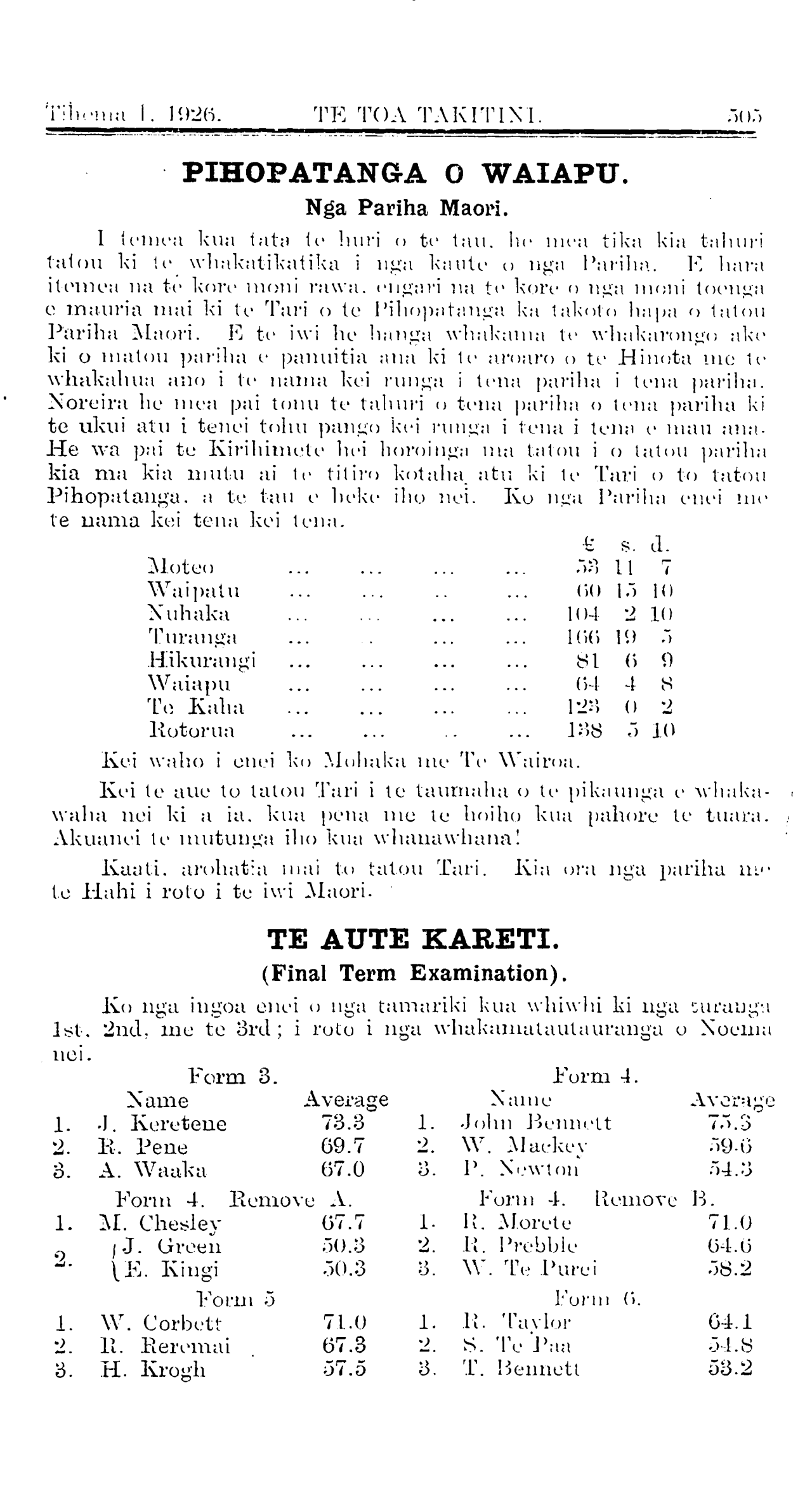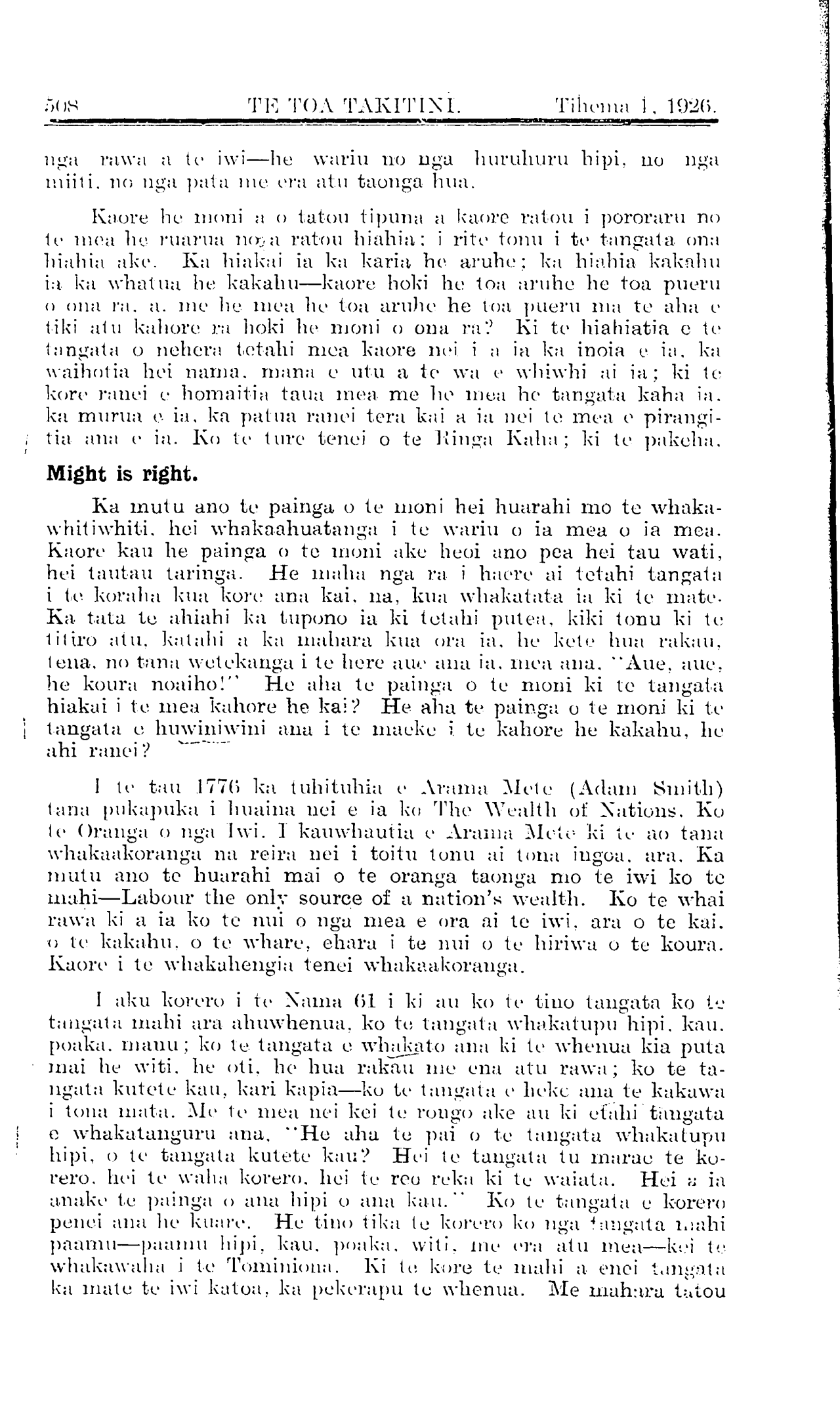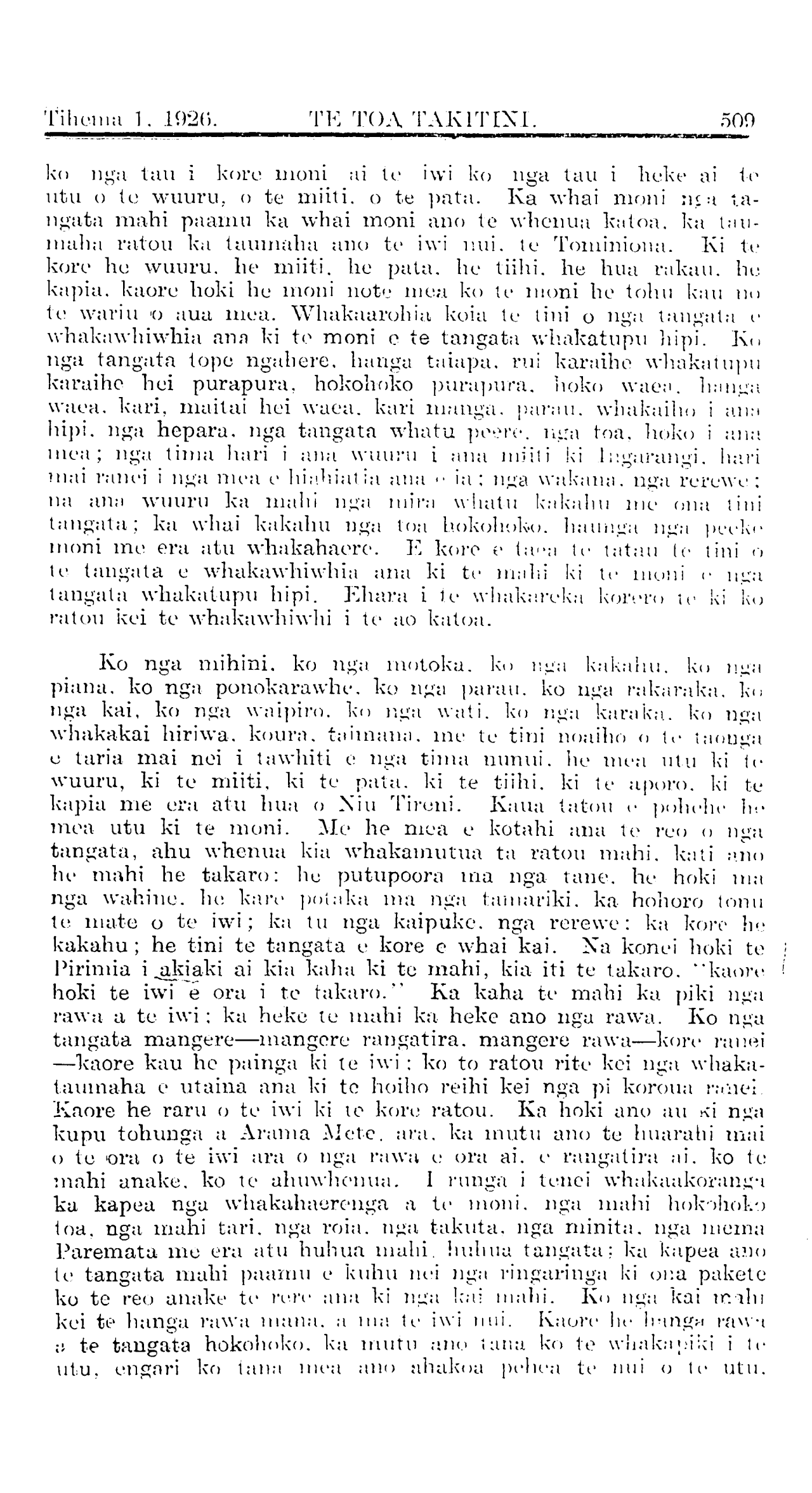Tihema 1, 1926. \_\_\_\_\_TE TOA TAKITINI. \_\_\_\_\_\_\_\_\_\_\_501
