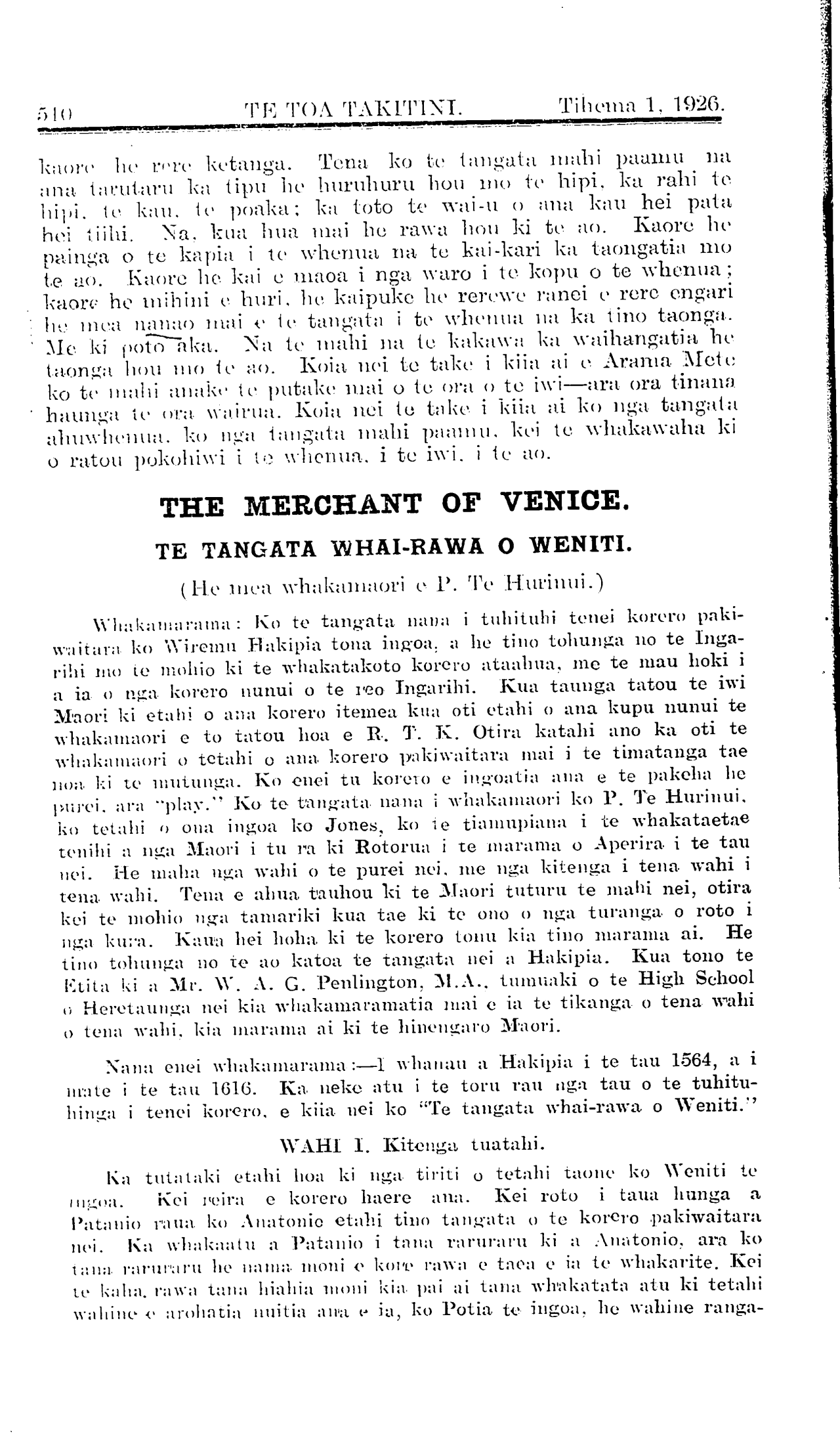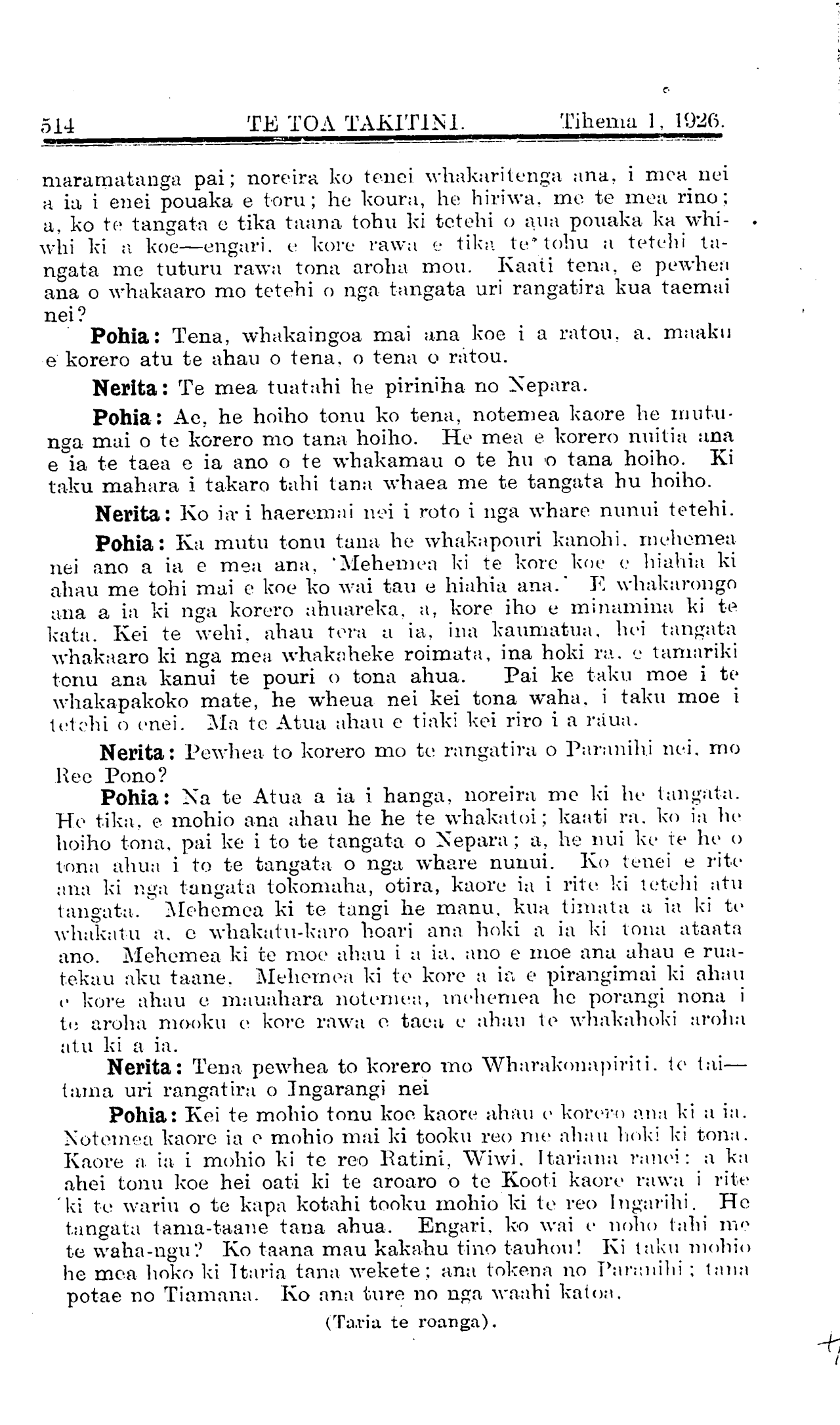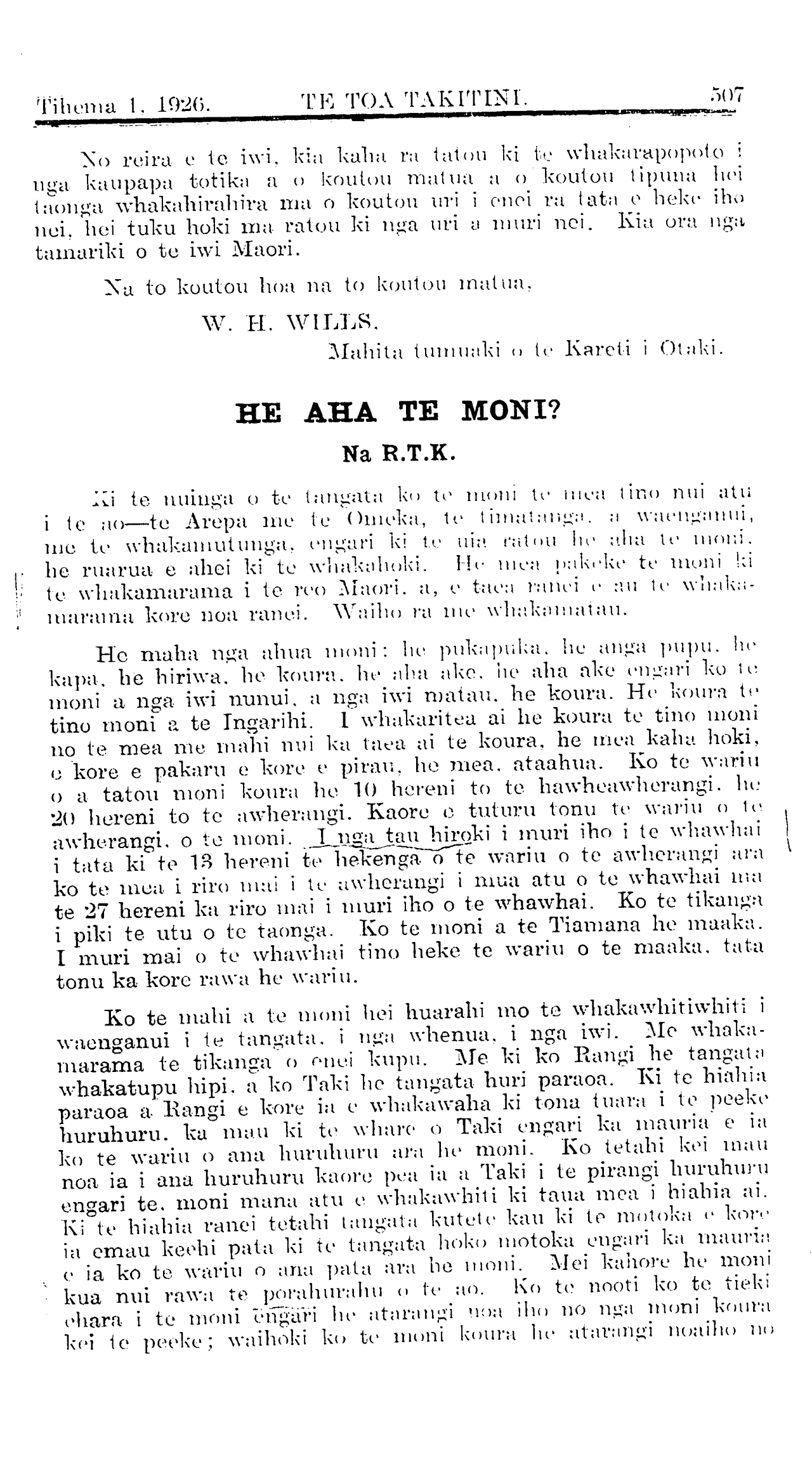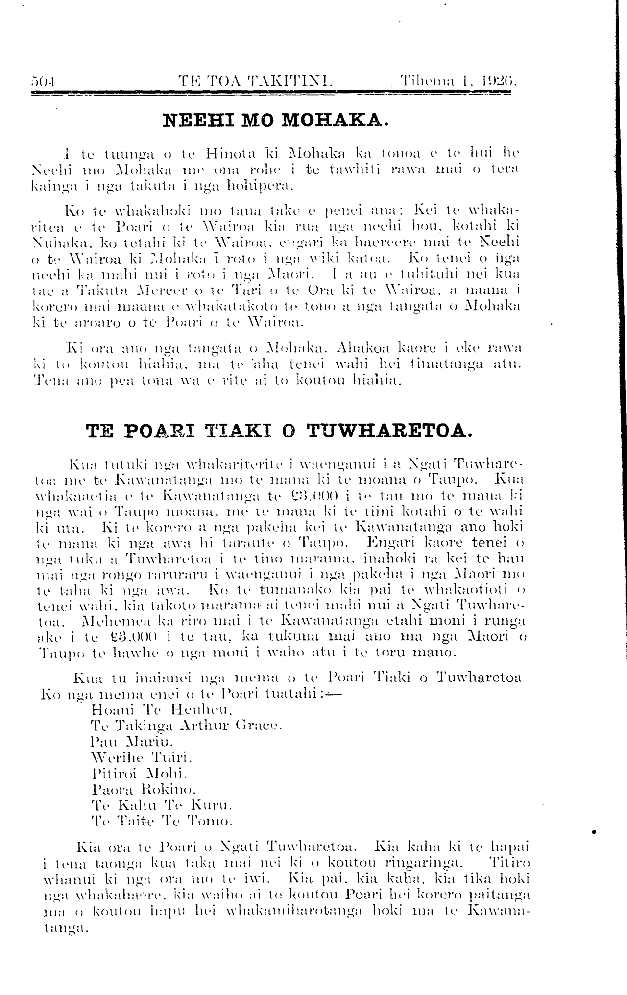Tihema 1, 1926. \_\_\_\_\_TE TOA TAKITINI. \_\_\_\_\_\_\_\_\_\_\_501