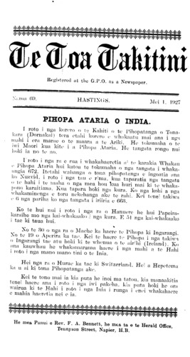 Te Toa Takitini 1921-1932: Number 69. 01 May 1927 |