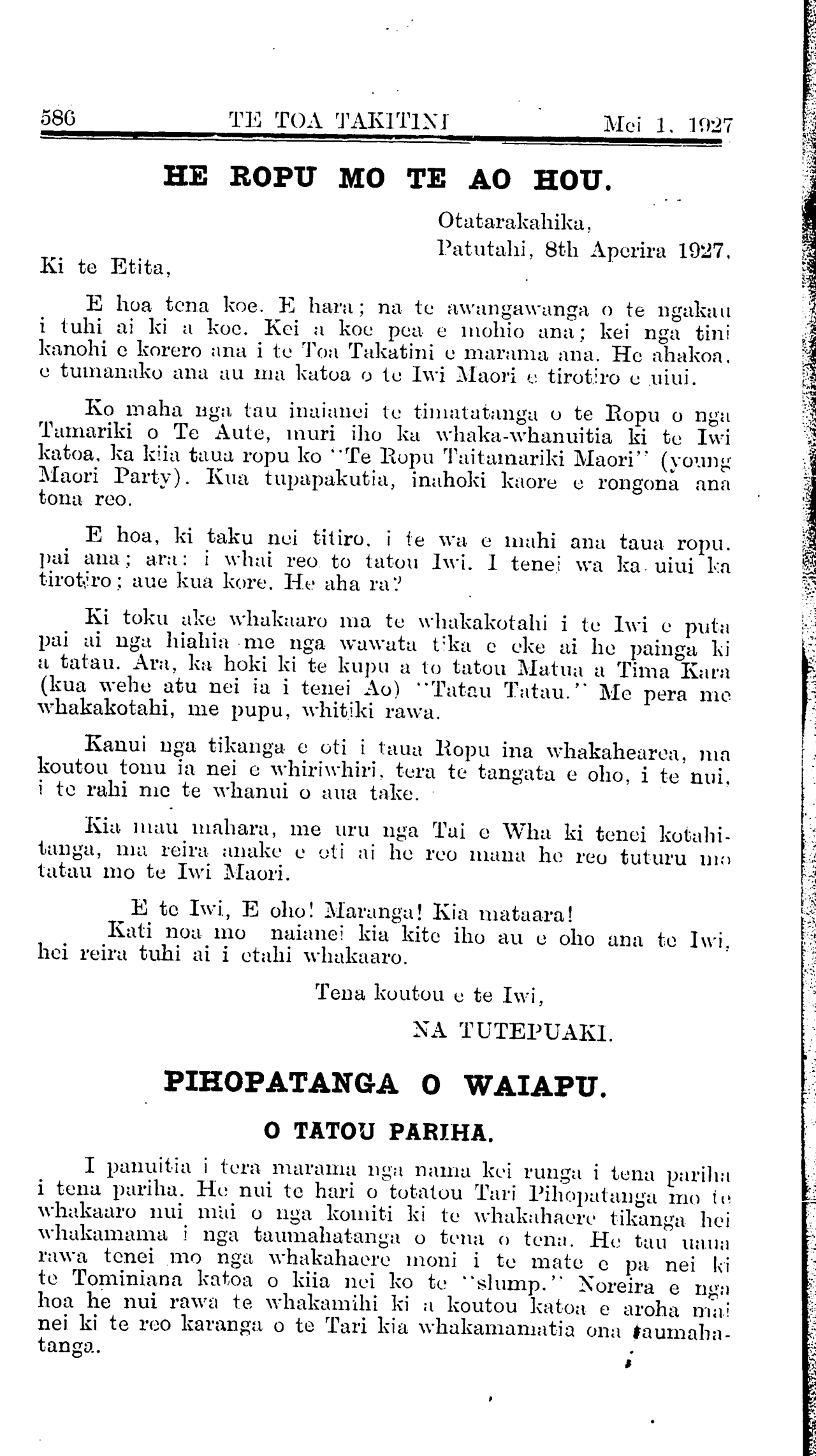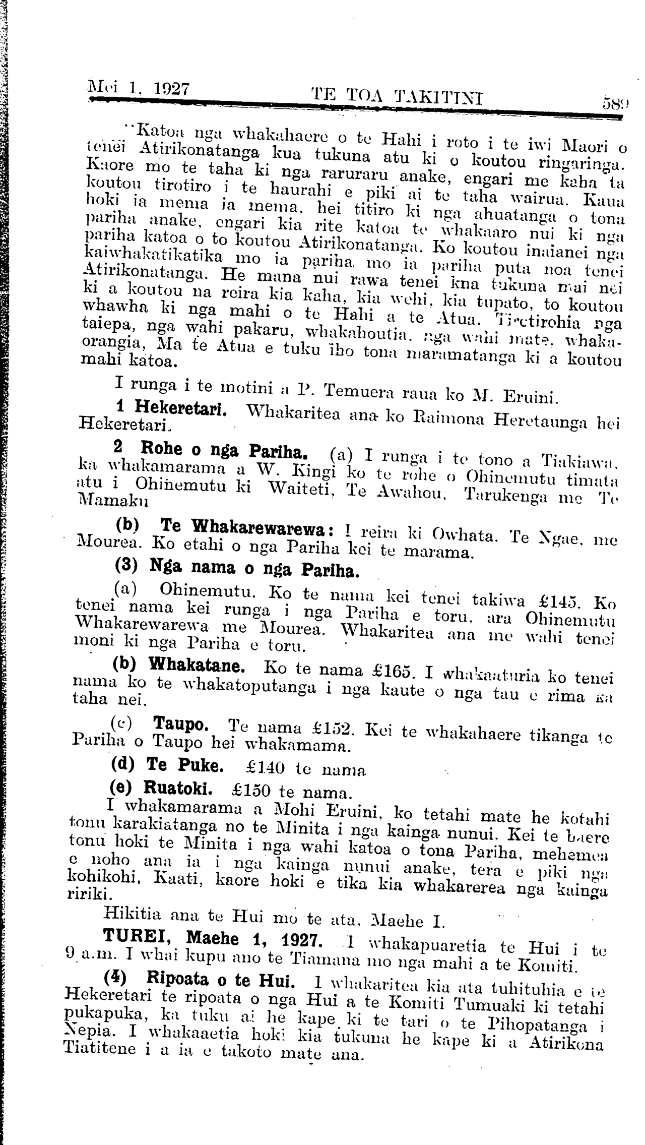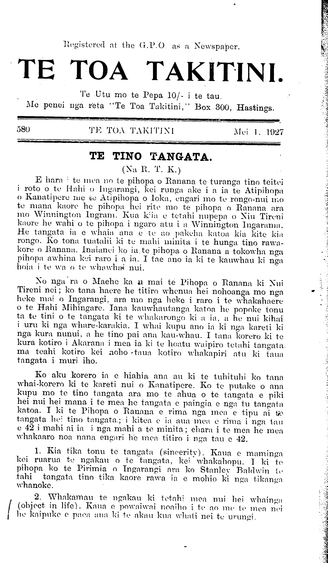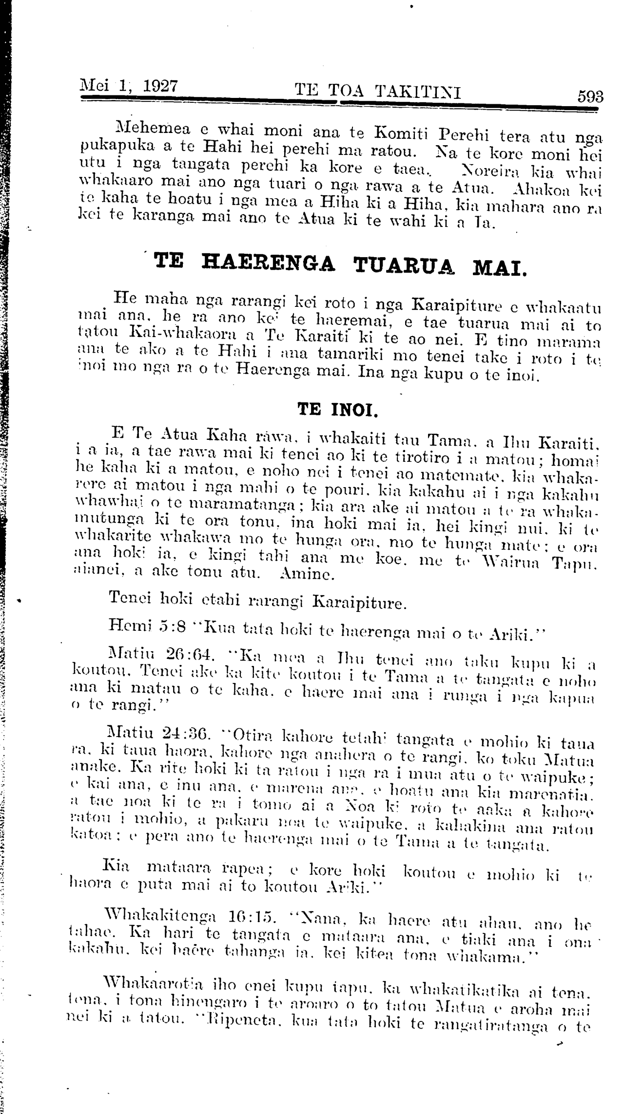 Mei 1, 1927\_\_\_\_\_\_\_\_\_TE TOA TAKITINI\_\_\_\_\_\_\_\_\_593