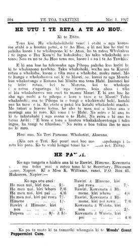 Me penei nga reta "Te Toa Takitini, " Box 300, Hastings.