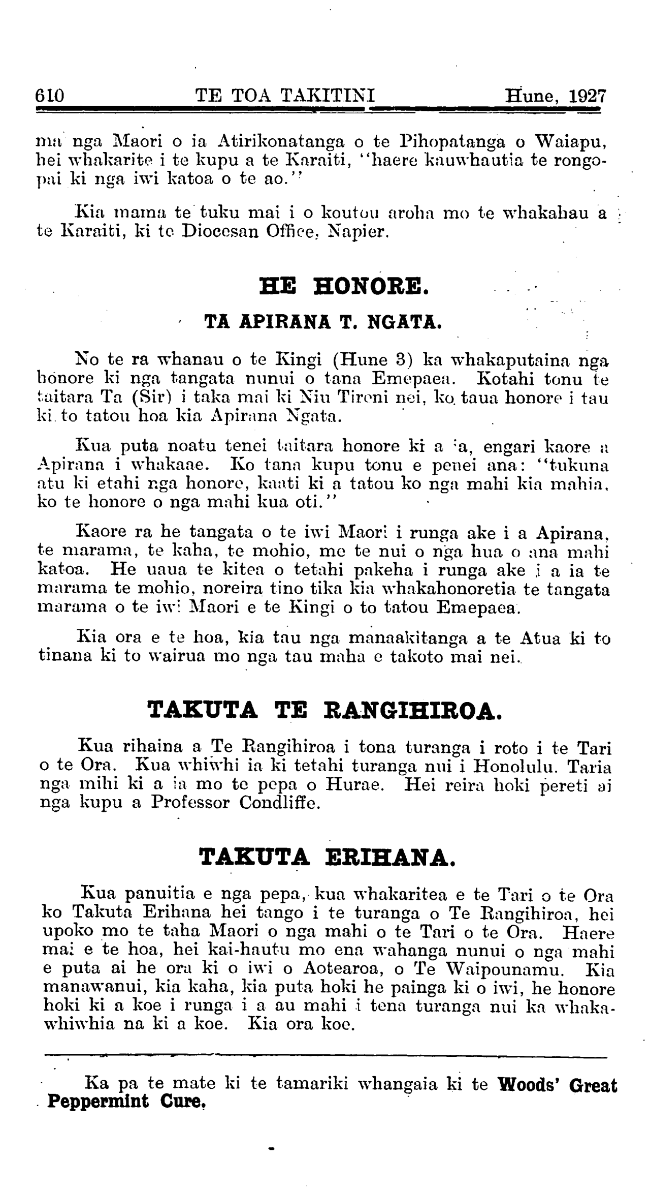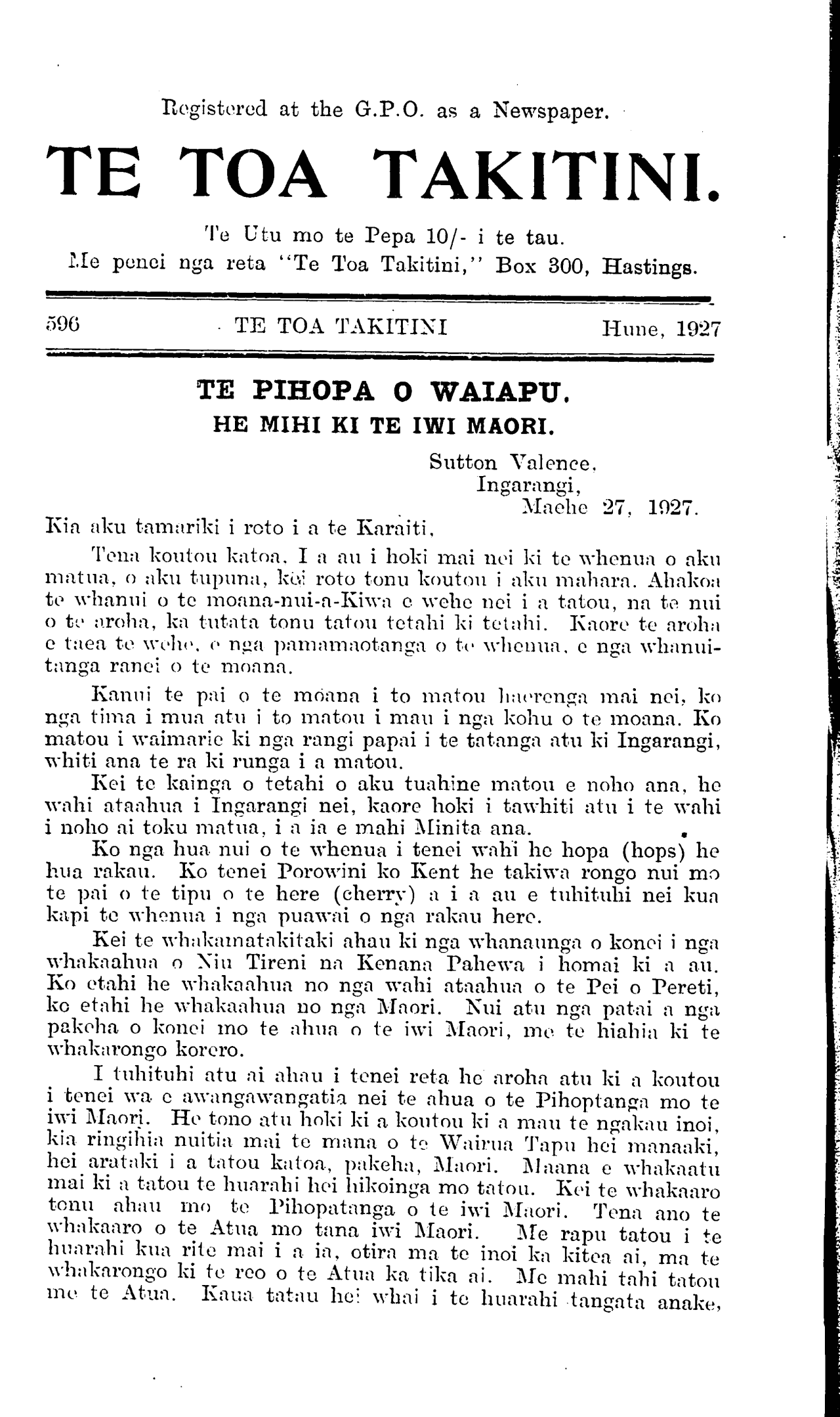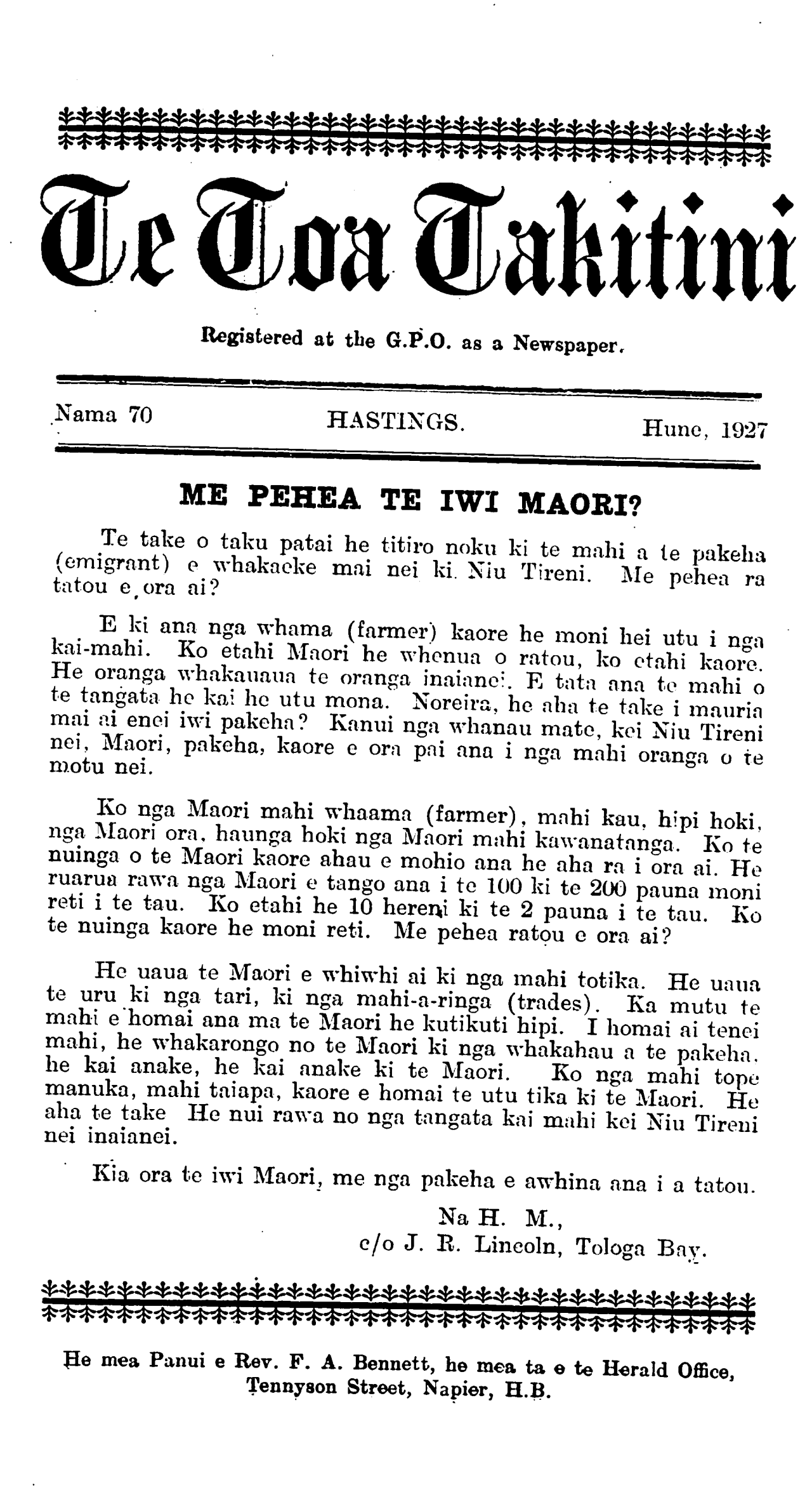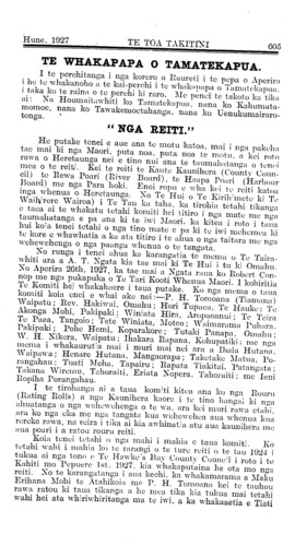 Te Toa Takitini 1921-1932: Number 70. 01 June 1927 |