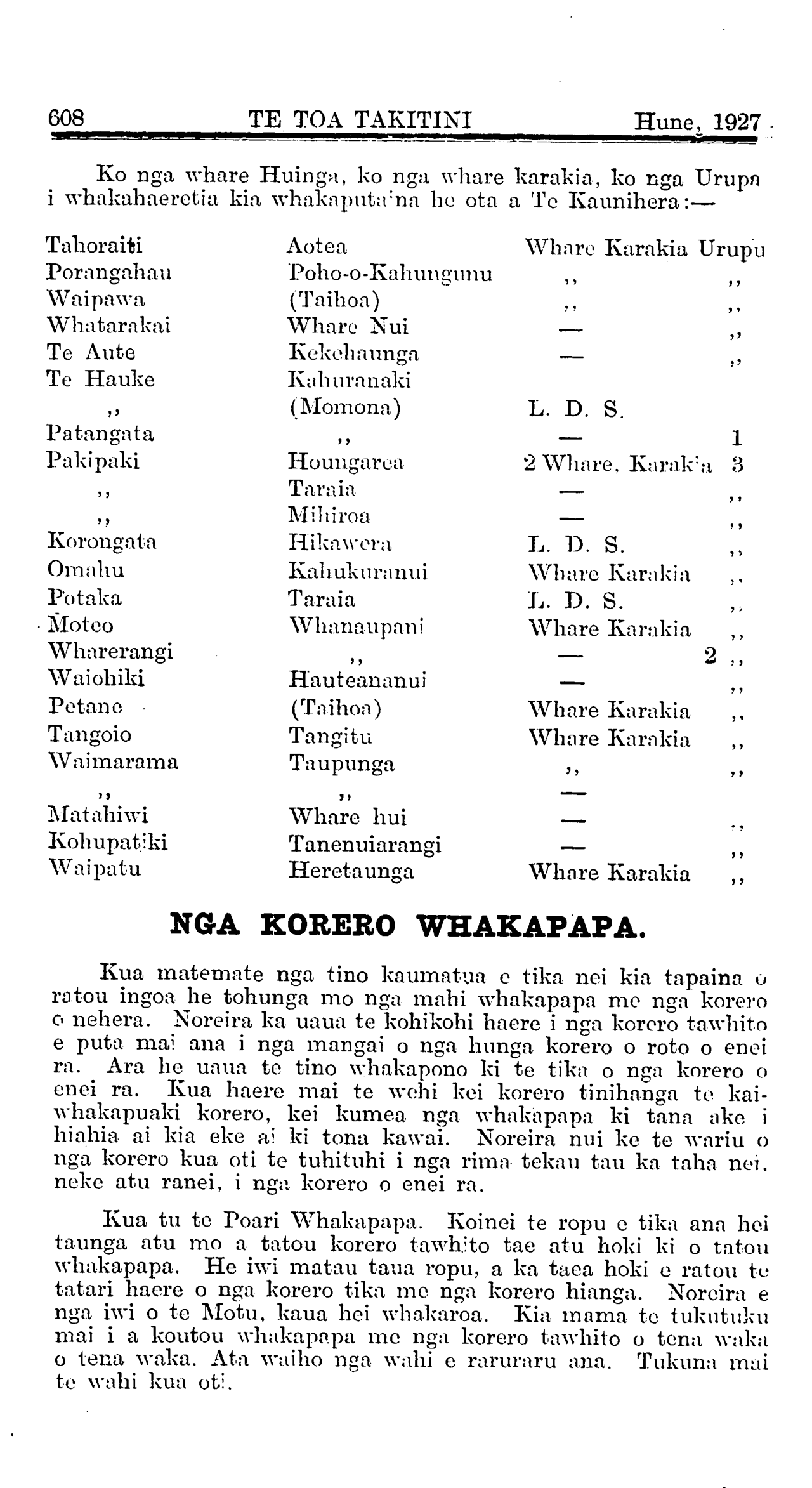 ahi, he whanako, he ngaro no nga wharangi, he mate no nga