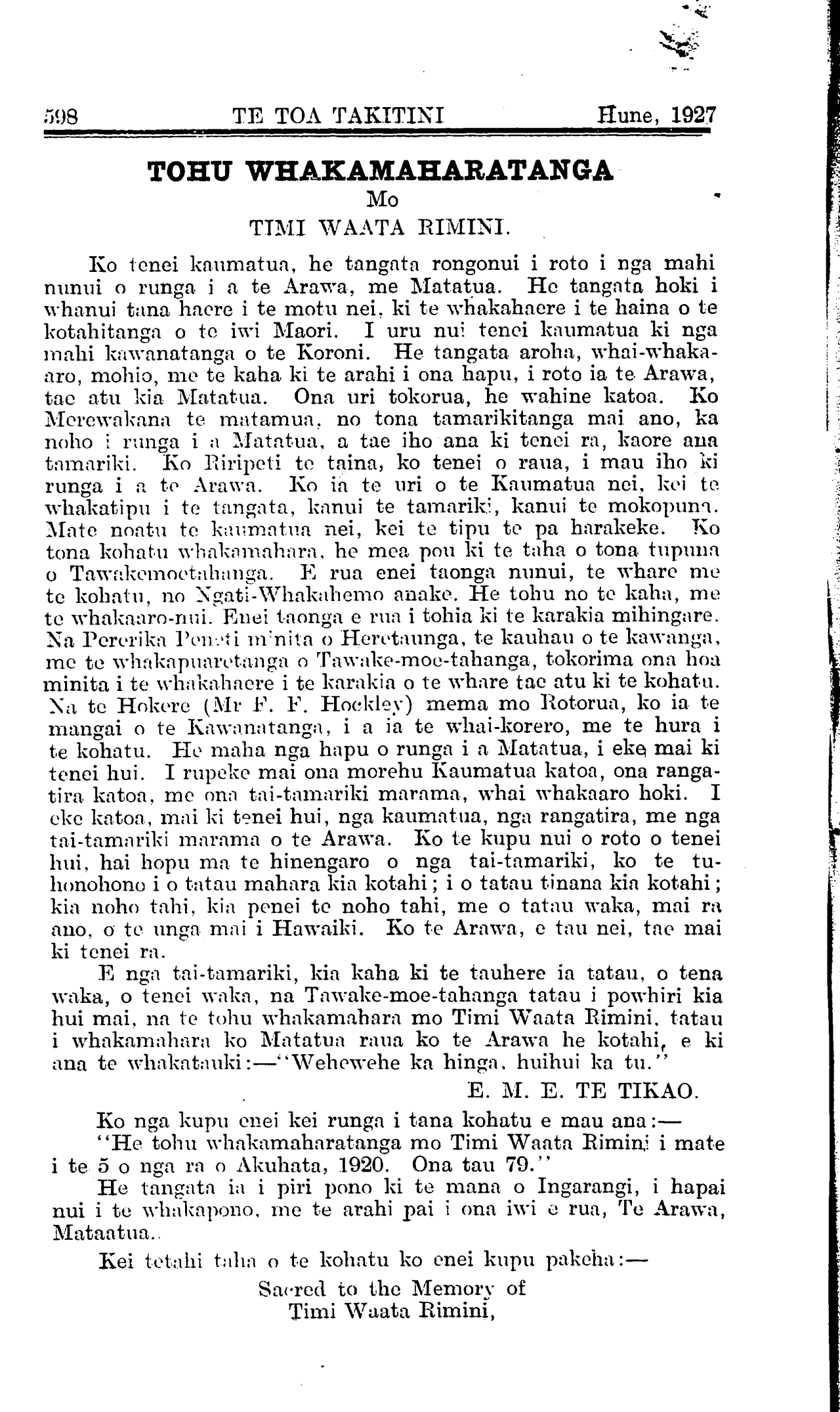 the Polynesian Society, March, 1804. Notemea kei to awanga-