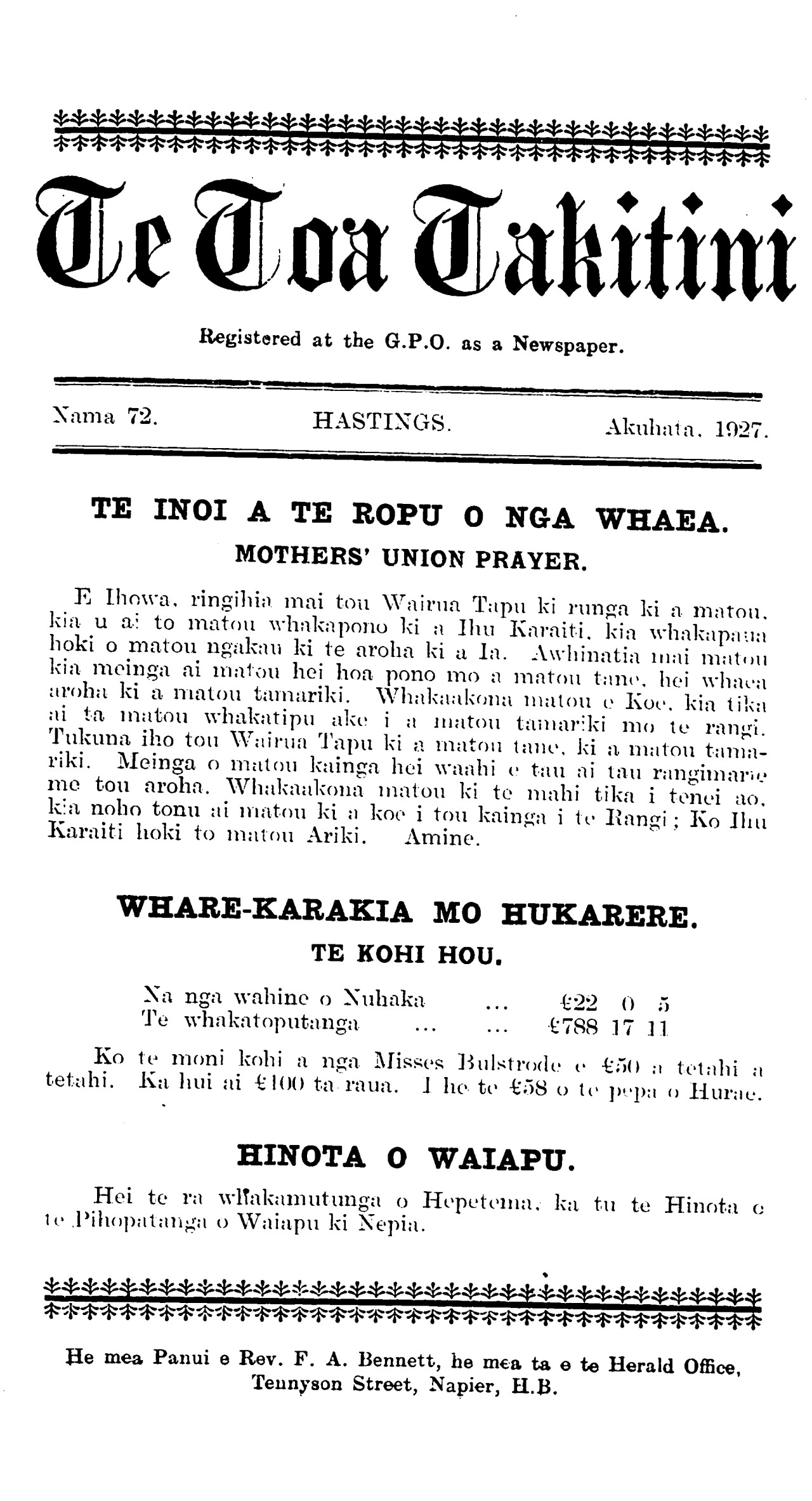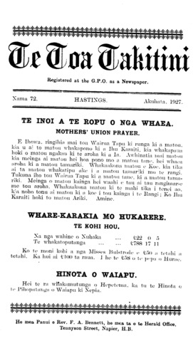 Te Toa Takitini 1921-1932: Number 72. 01 August 1927 |