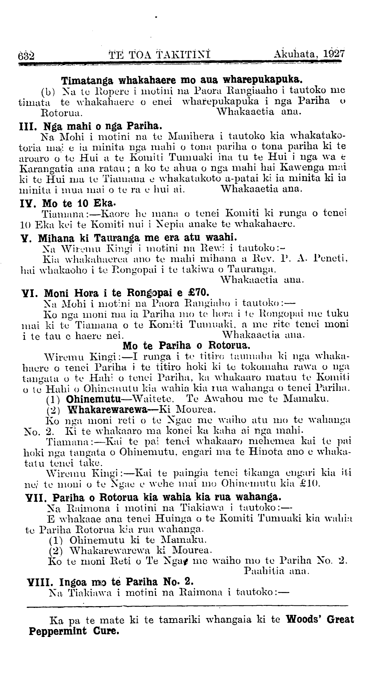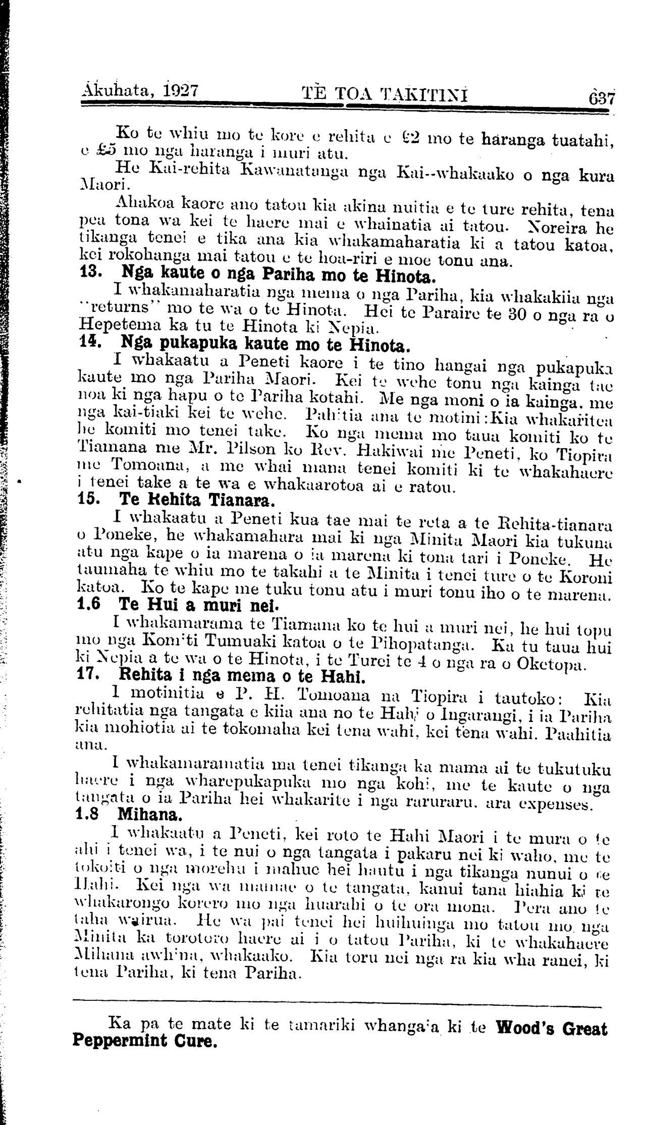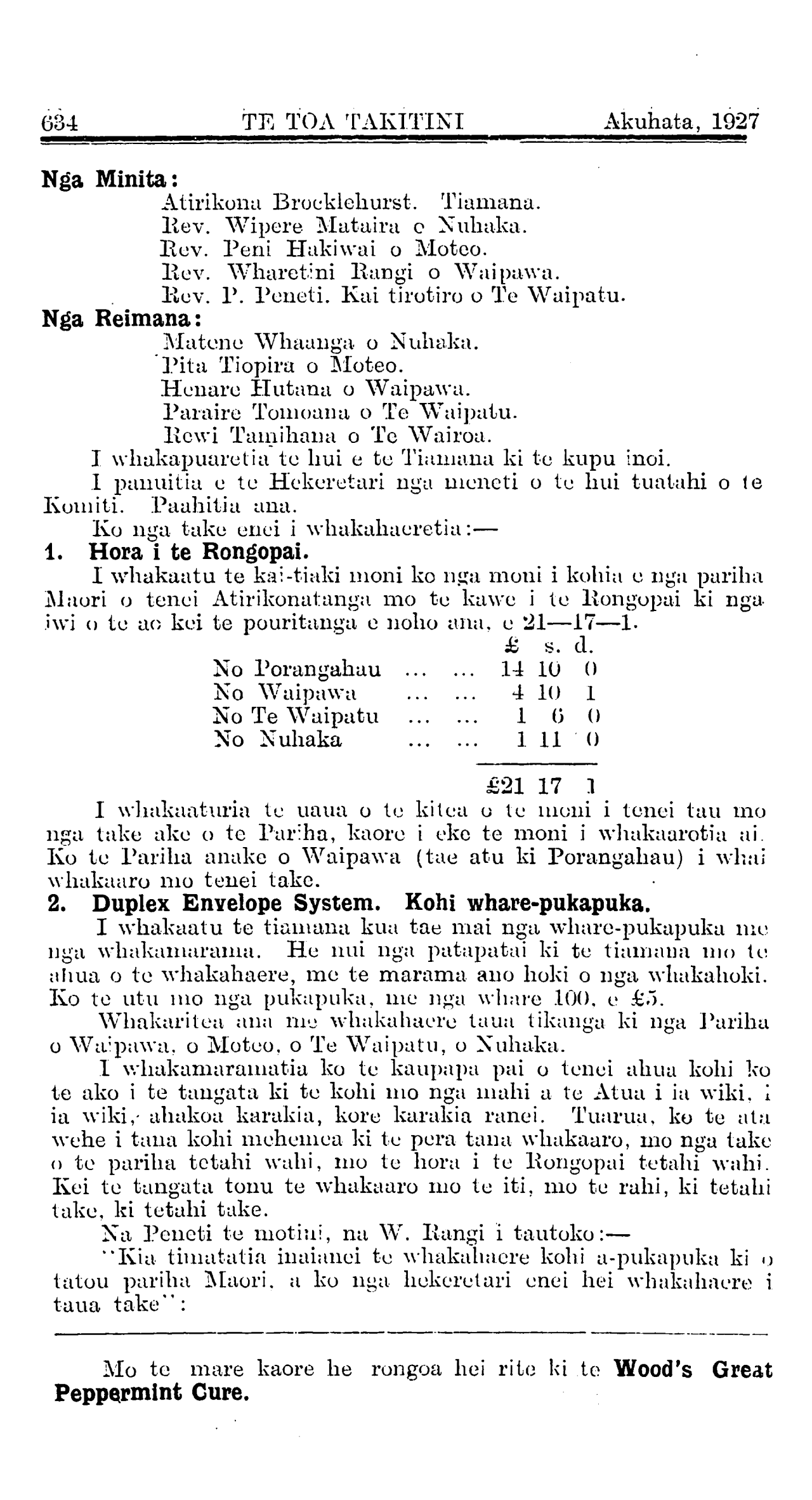 Te Utu mo te Pepa 10/- i te tau.