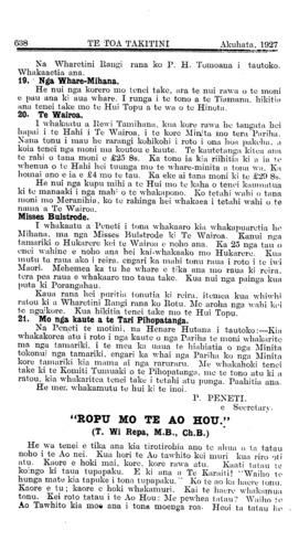 taahu o te piri-pono o Ngati-Porou. I muri atu i a Pene Heihi