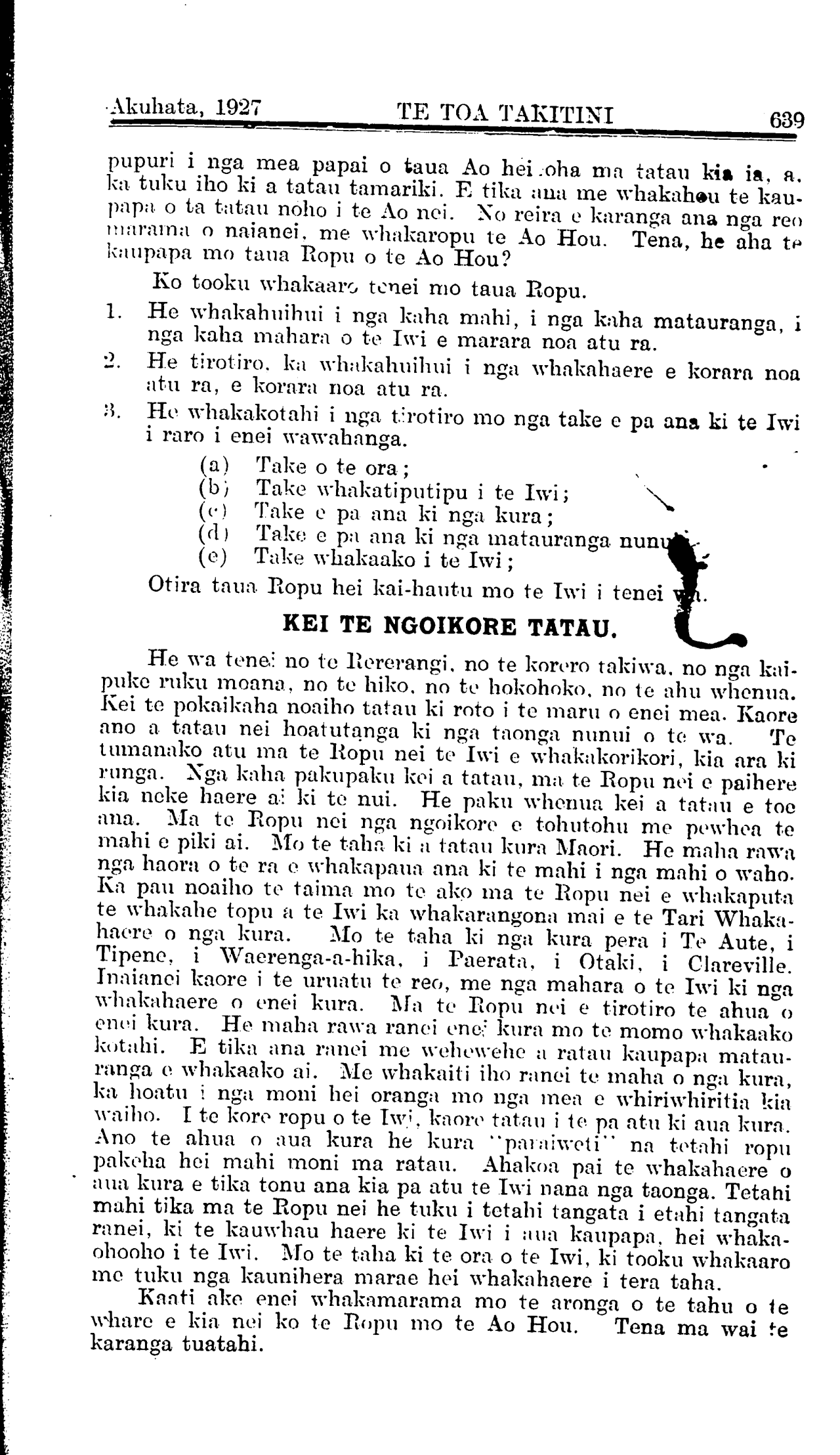 Akuhata, 1927 TE TOA TAKITINI 641