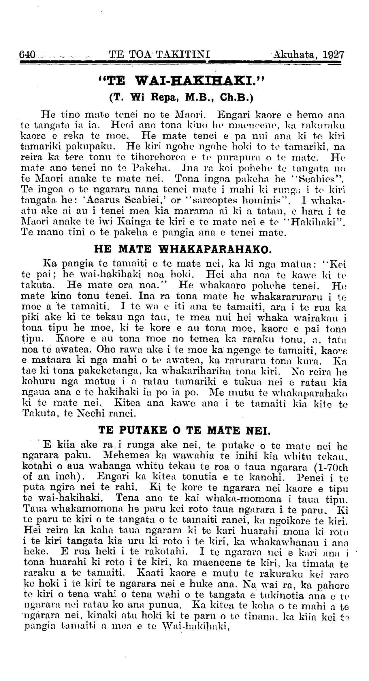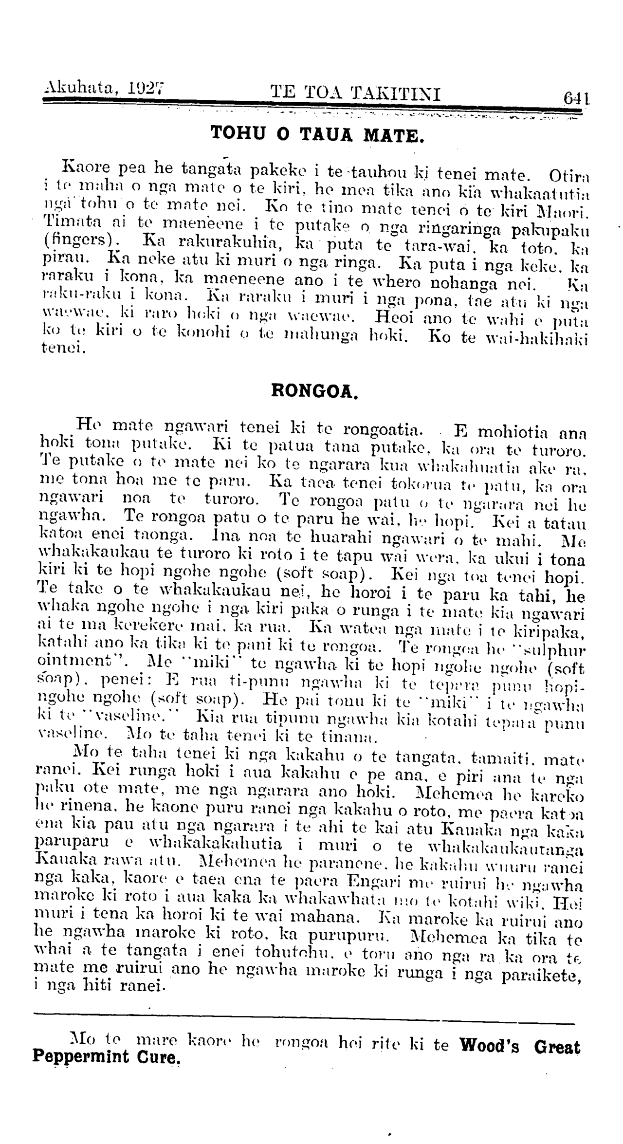 ai te ma kerekere mai. ka rua. Ka watea nga mate i te kiripaka,
