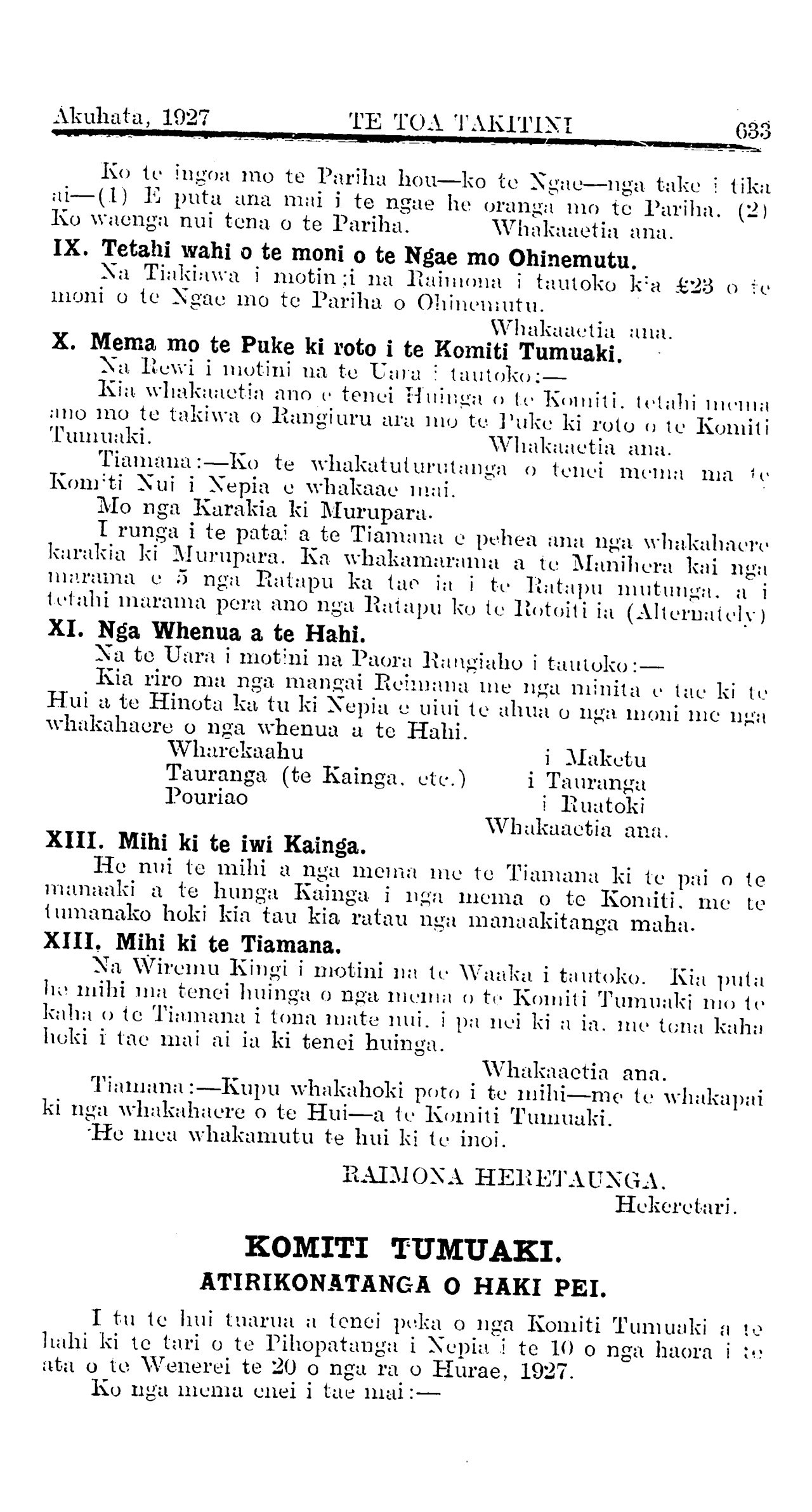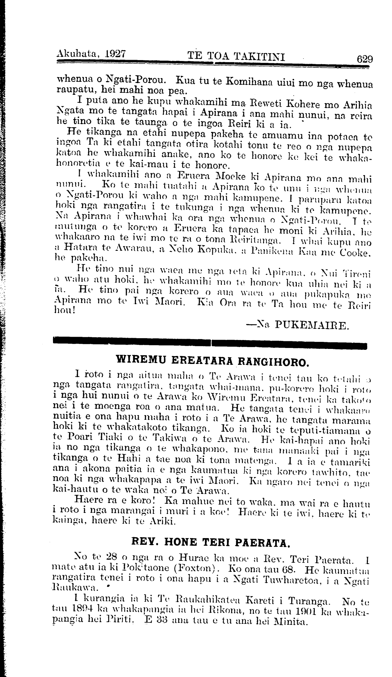 Akuhata, 1927 TE TOA TAKITINI 629