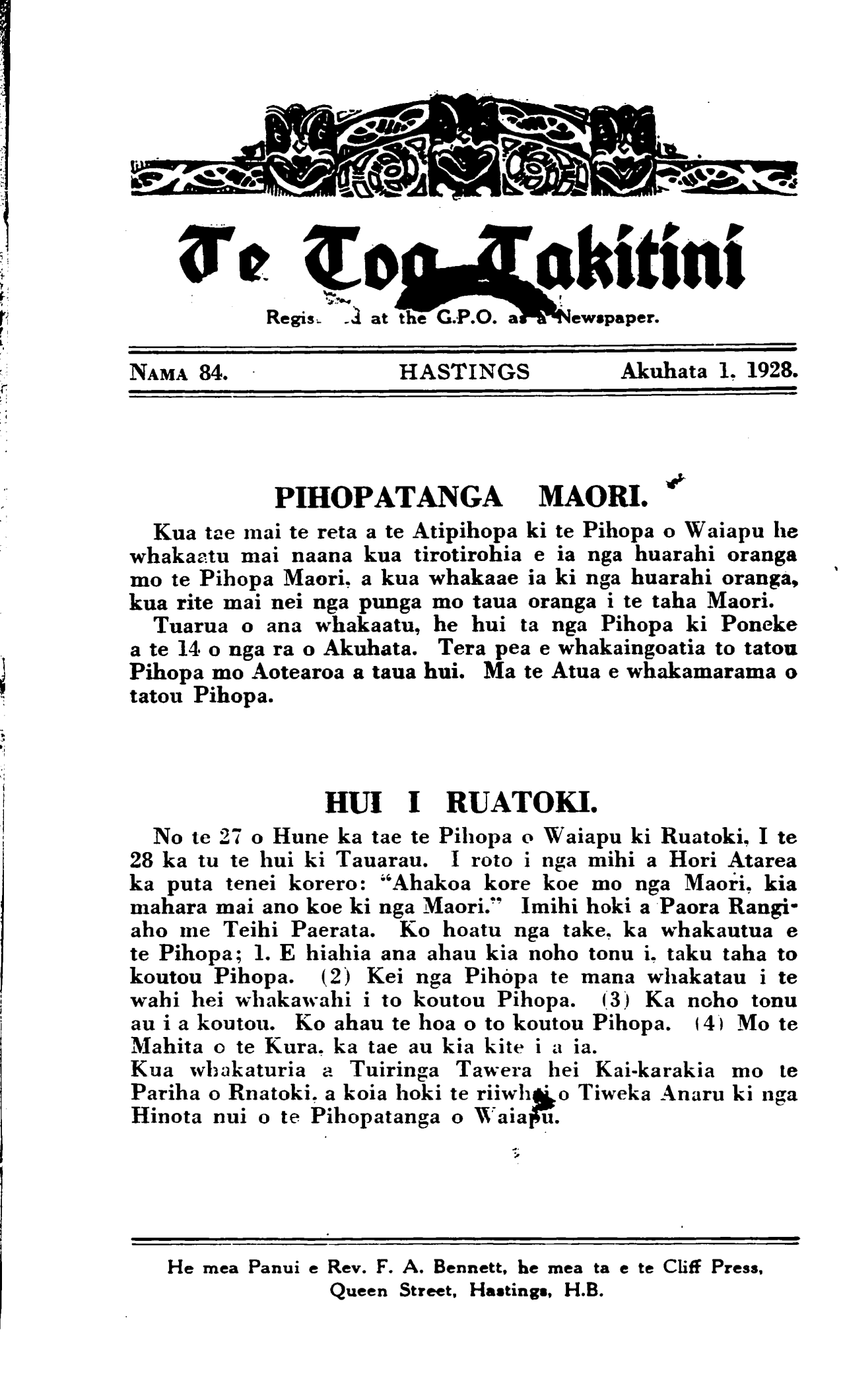 NAMA 84. HASTINGS Akuhata 1, 1928.