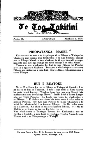 Te Toa Takitini 1921-1932: Number 84. 01 August 1928 |