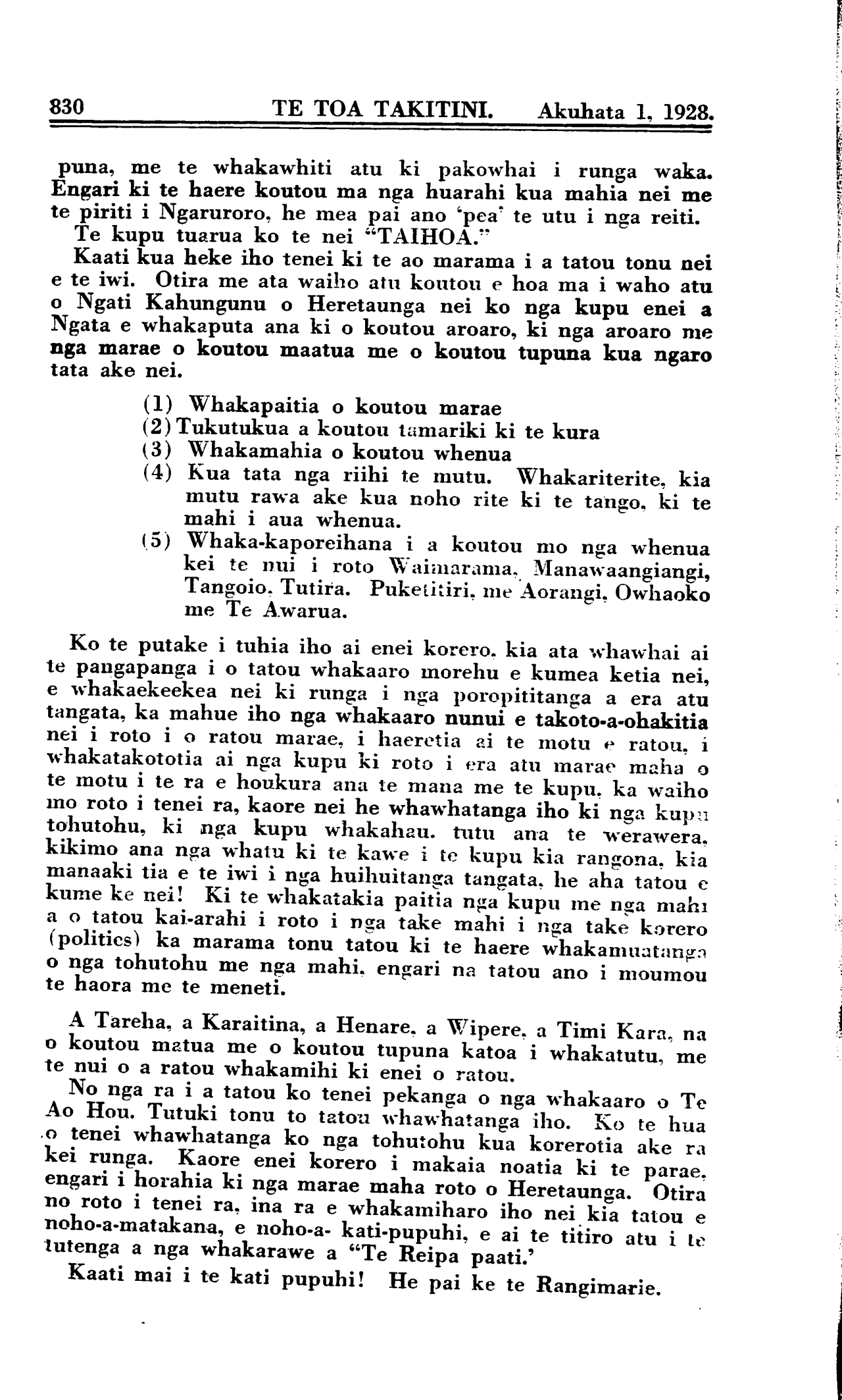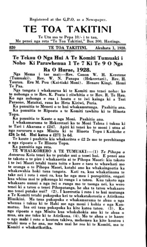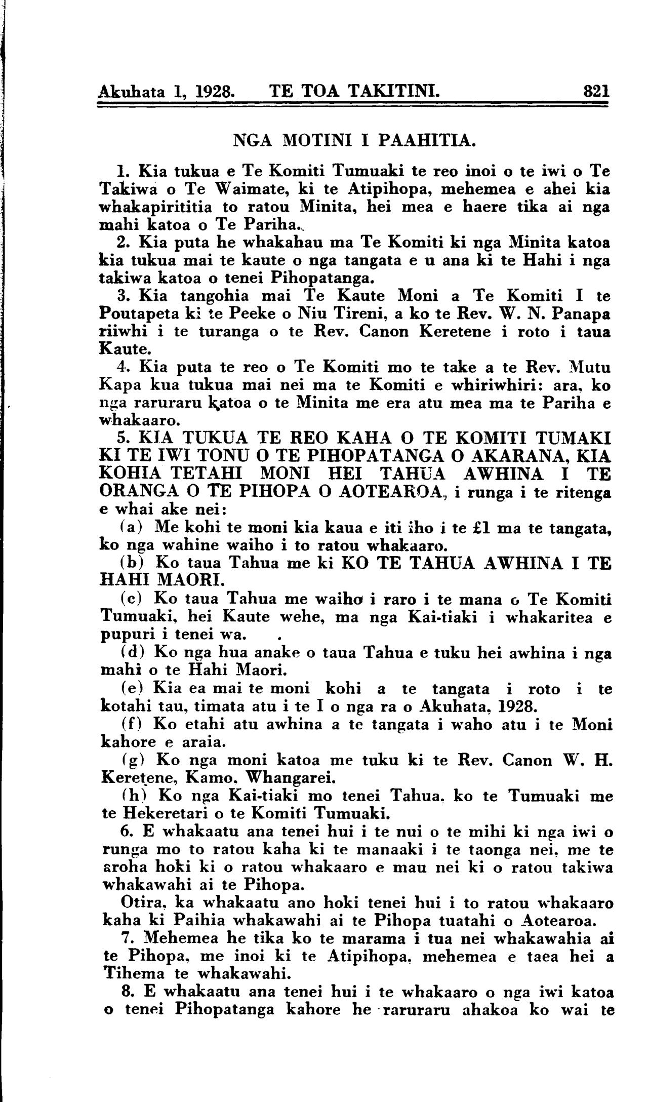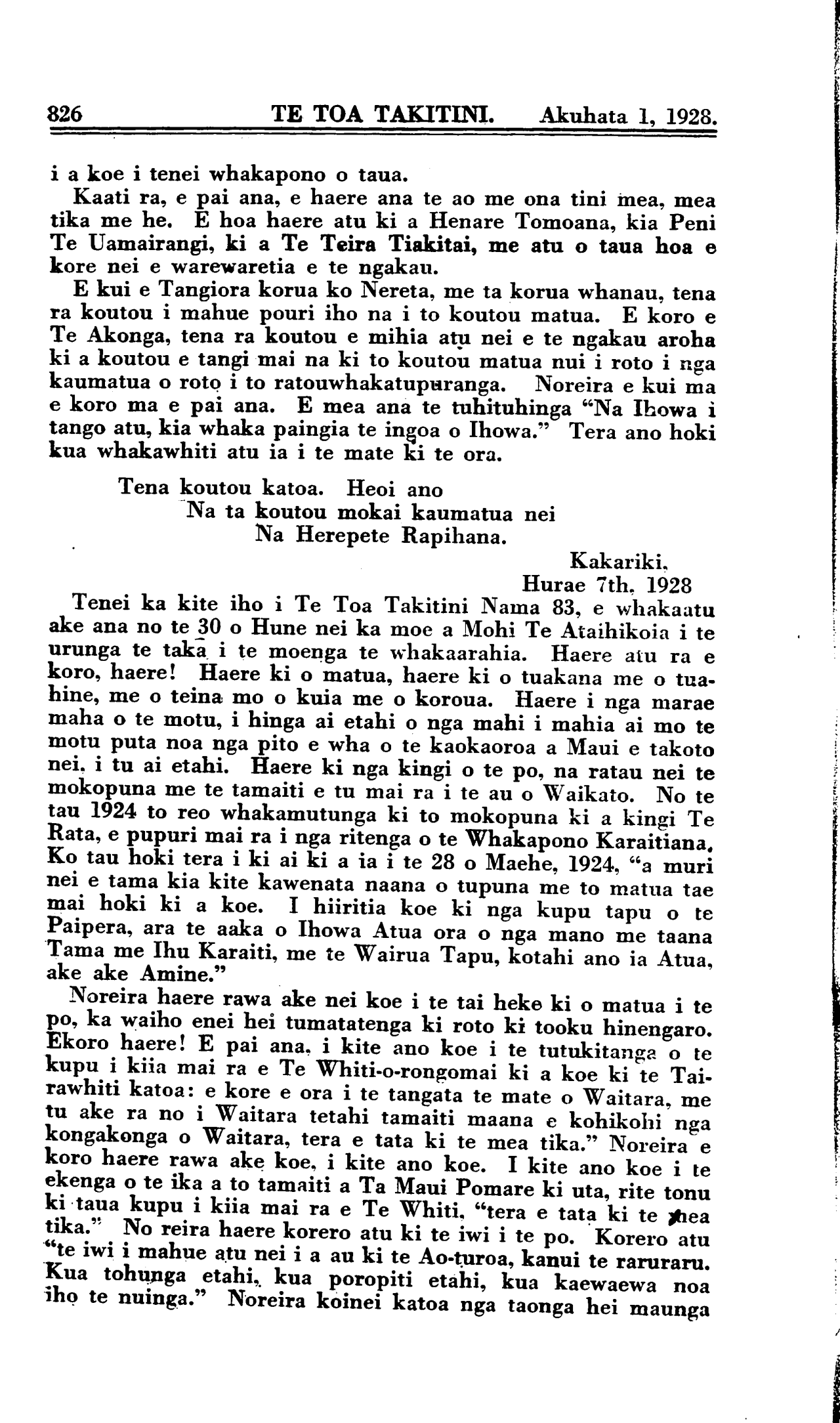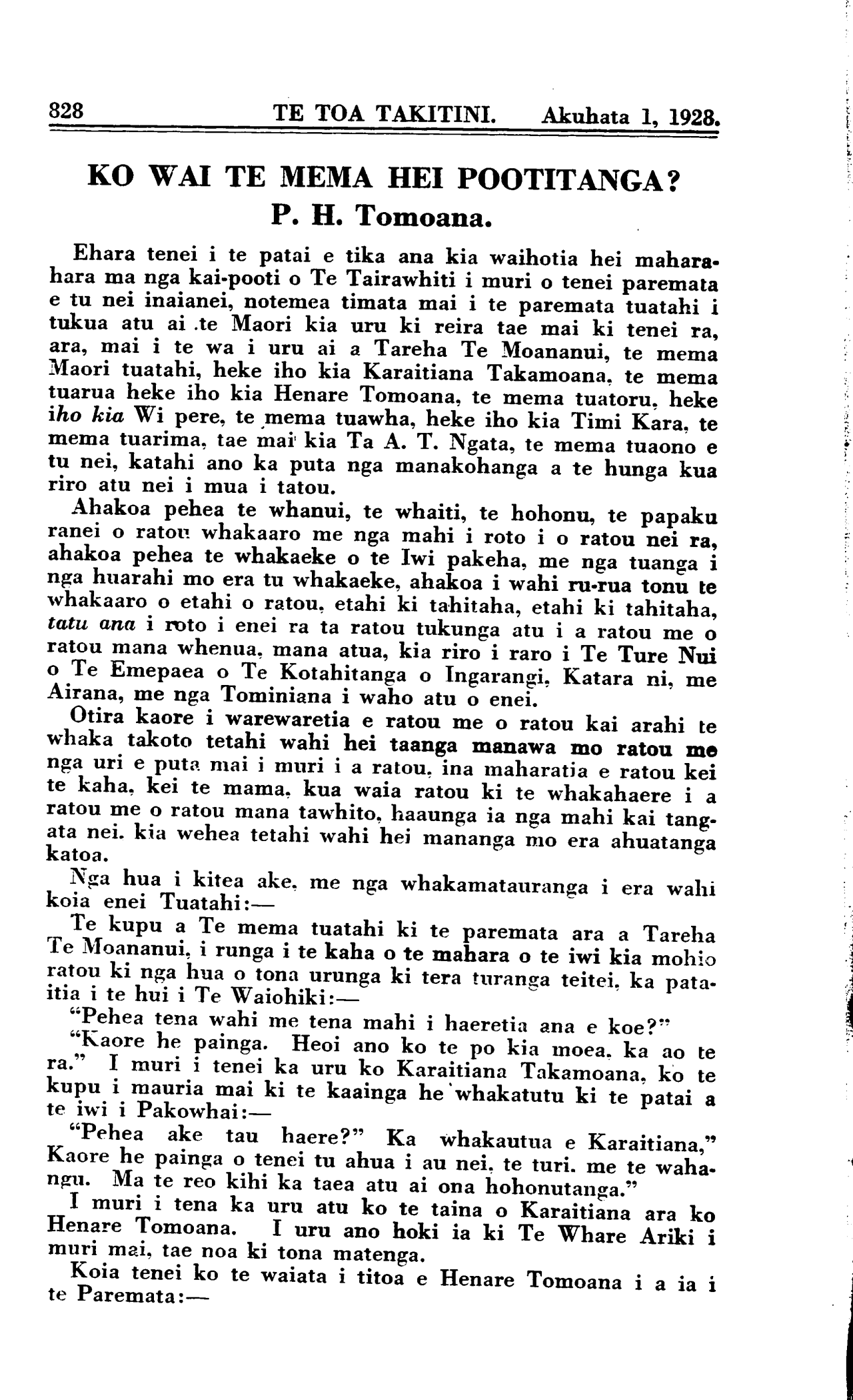 Akuhata 1, 1928. TE TOA TAKITINI. 821