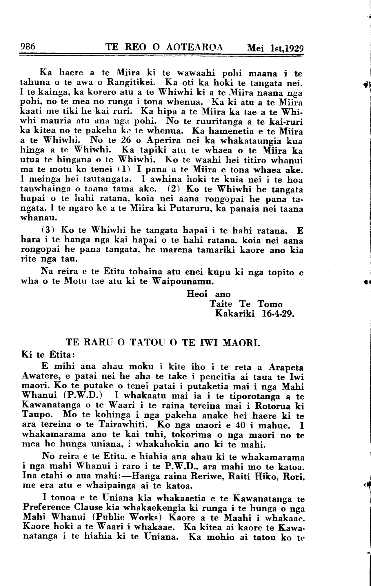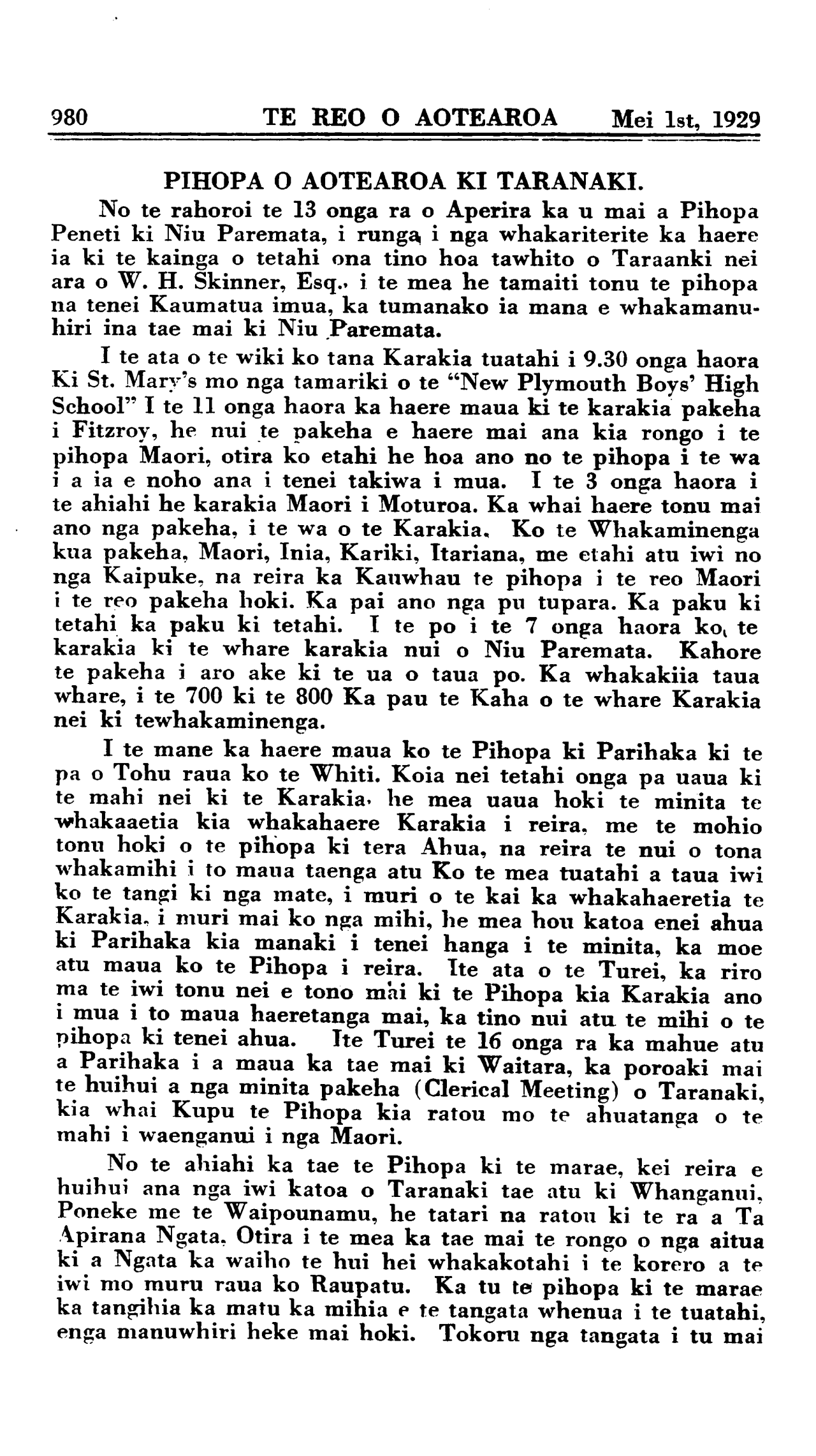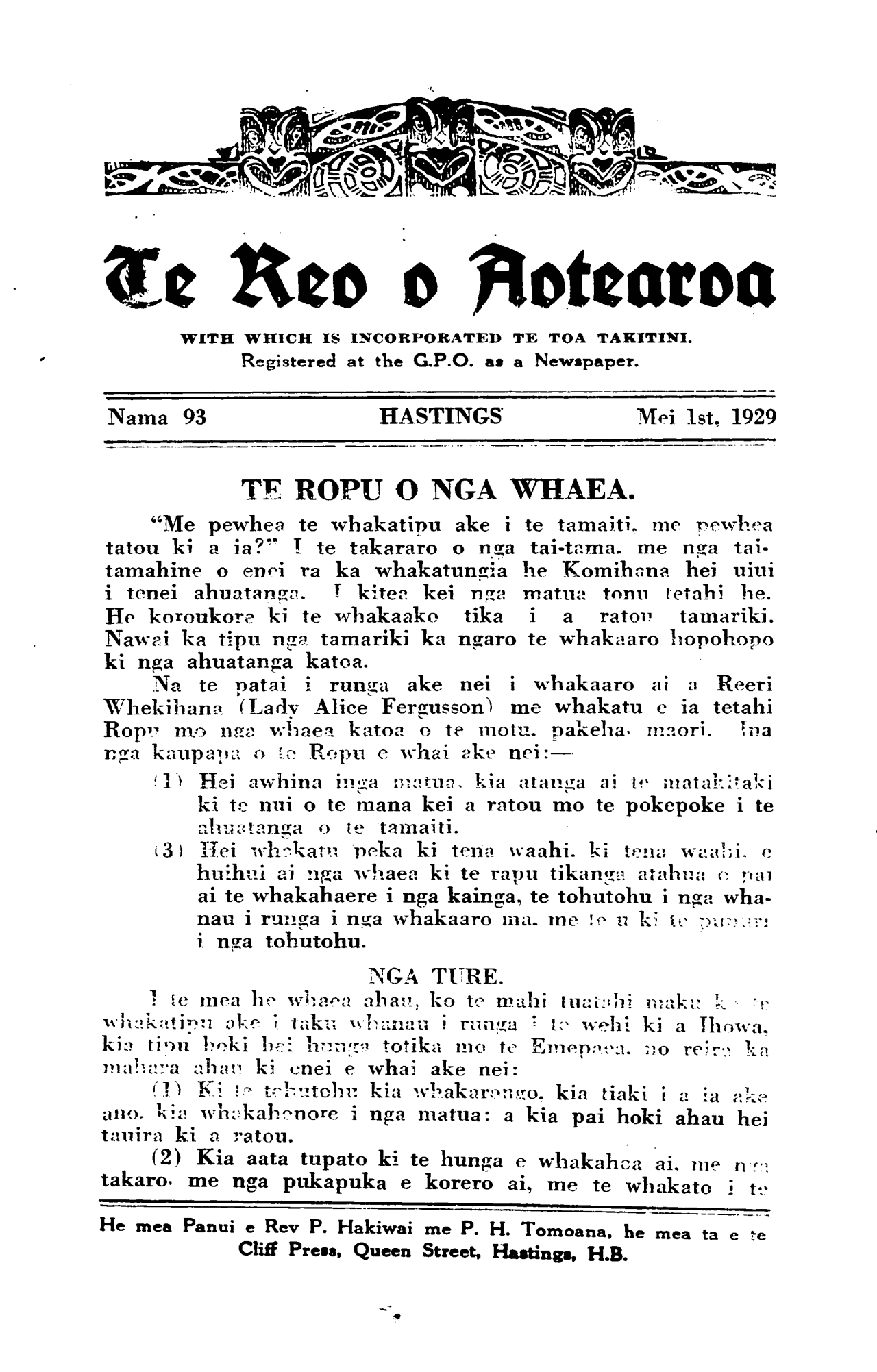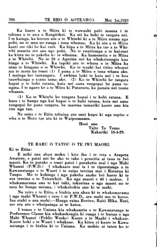 Mei 1st 1929 TE REO O AOTEAROA\_\_\_\_\_\_\_\_\_\_979