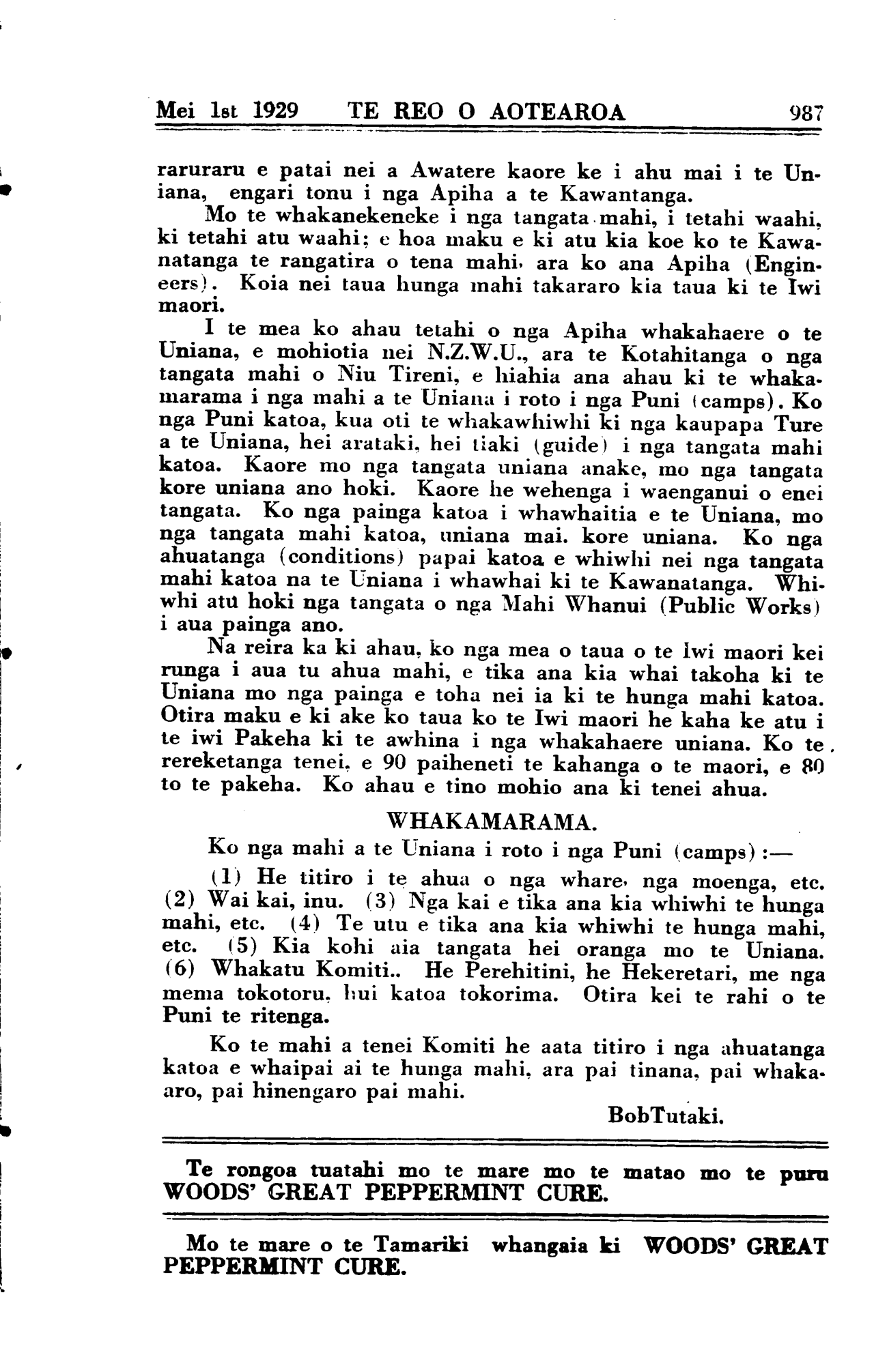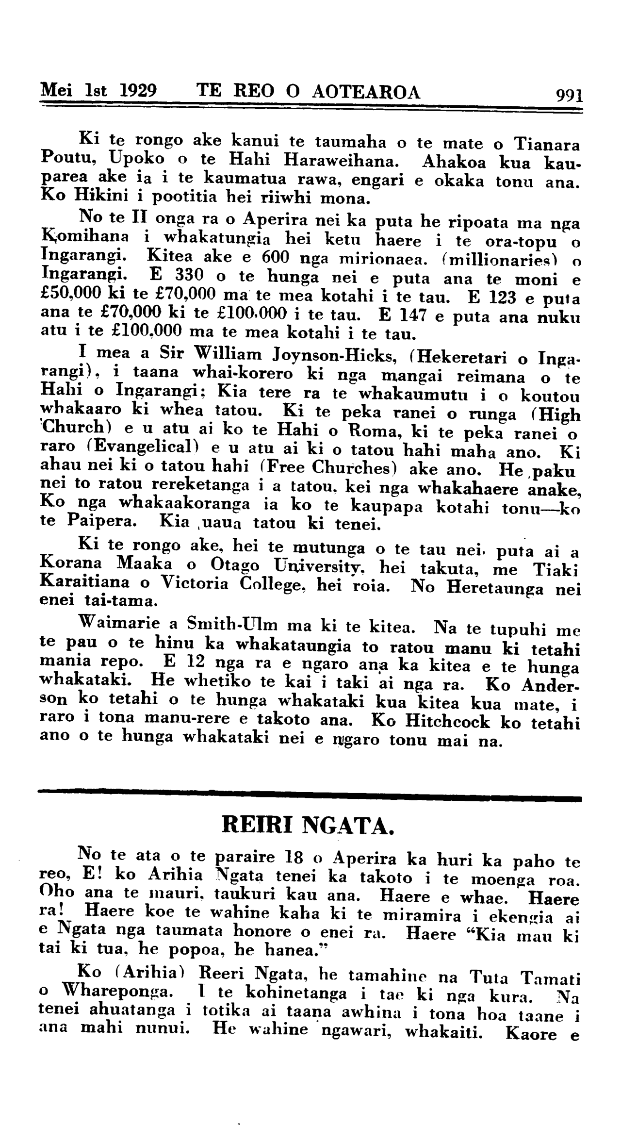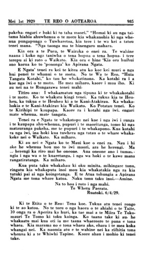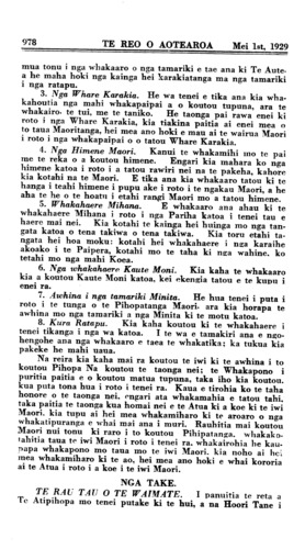 978 TE REO O AOTEAROA Mei 1st, 1929