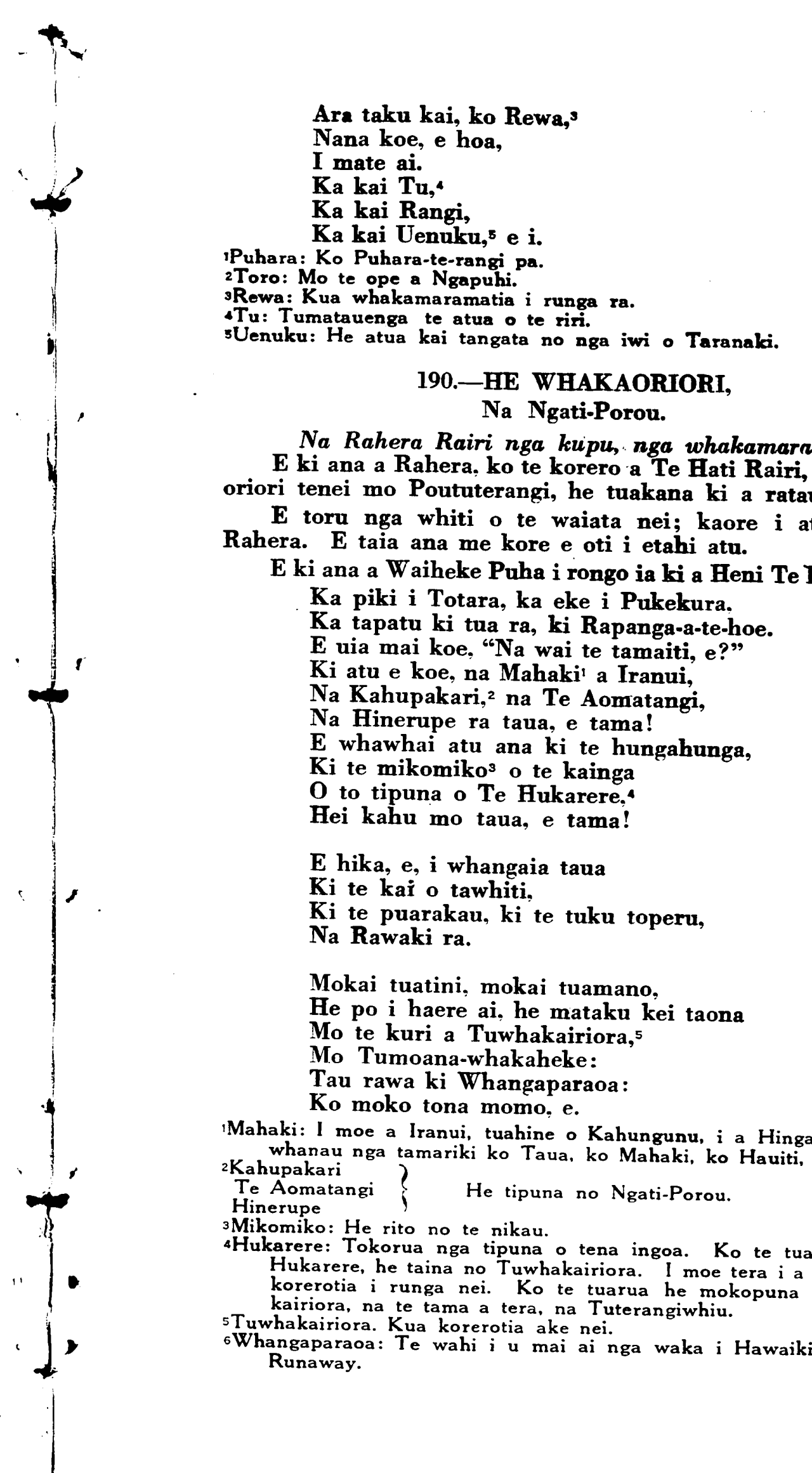 puhi. E mea ana te waiata nei na Rewa a Mokowera i patu.