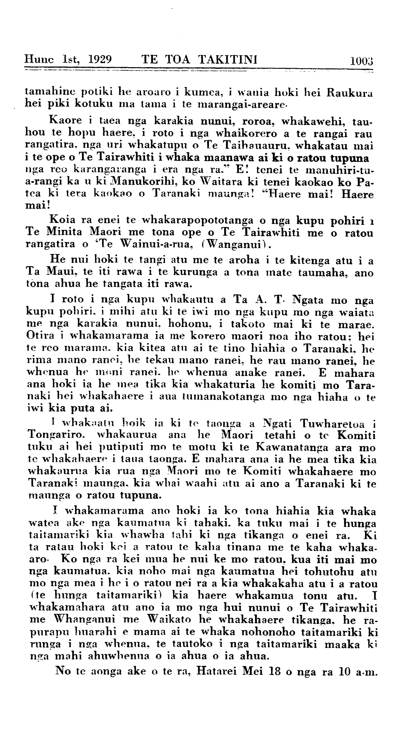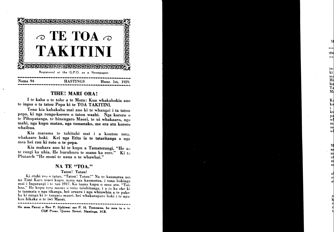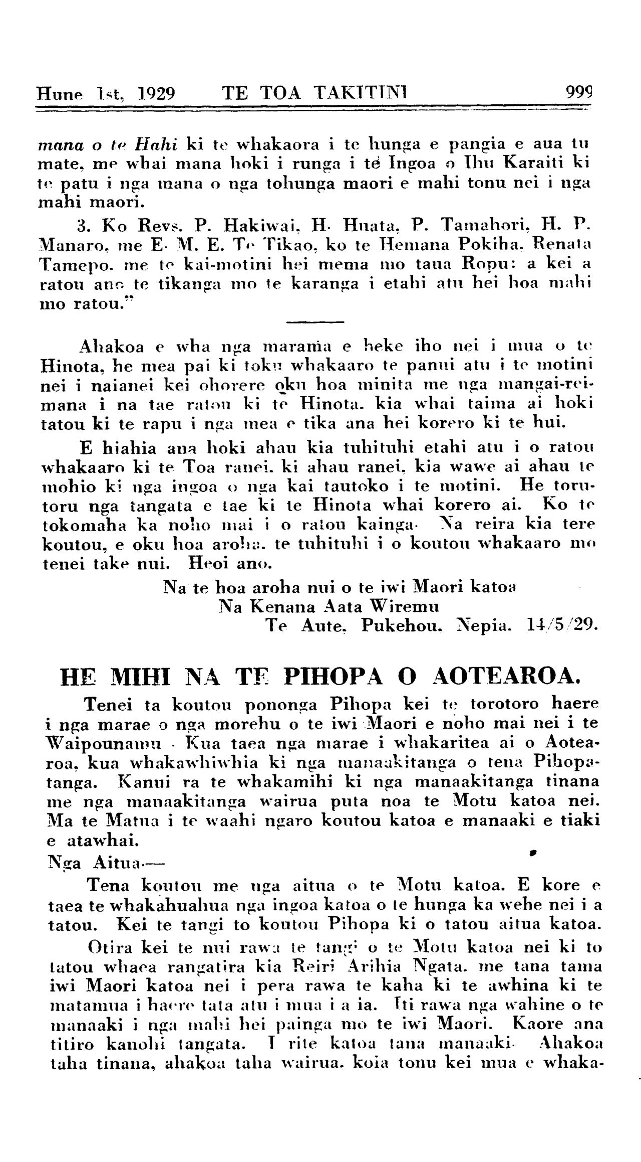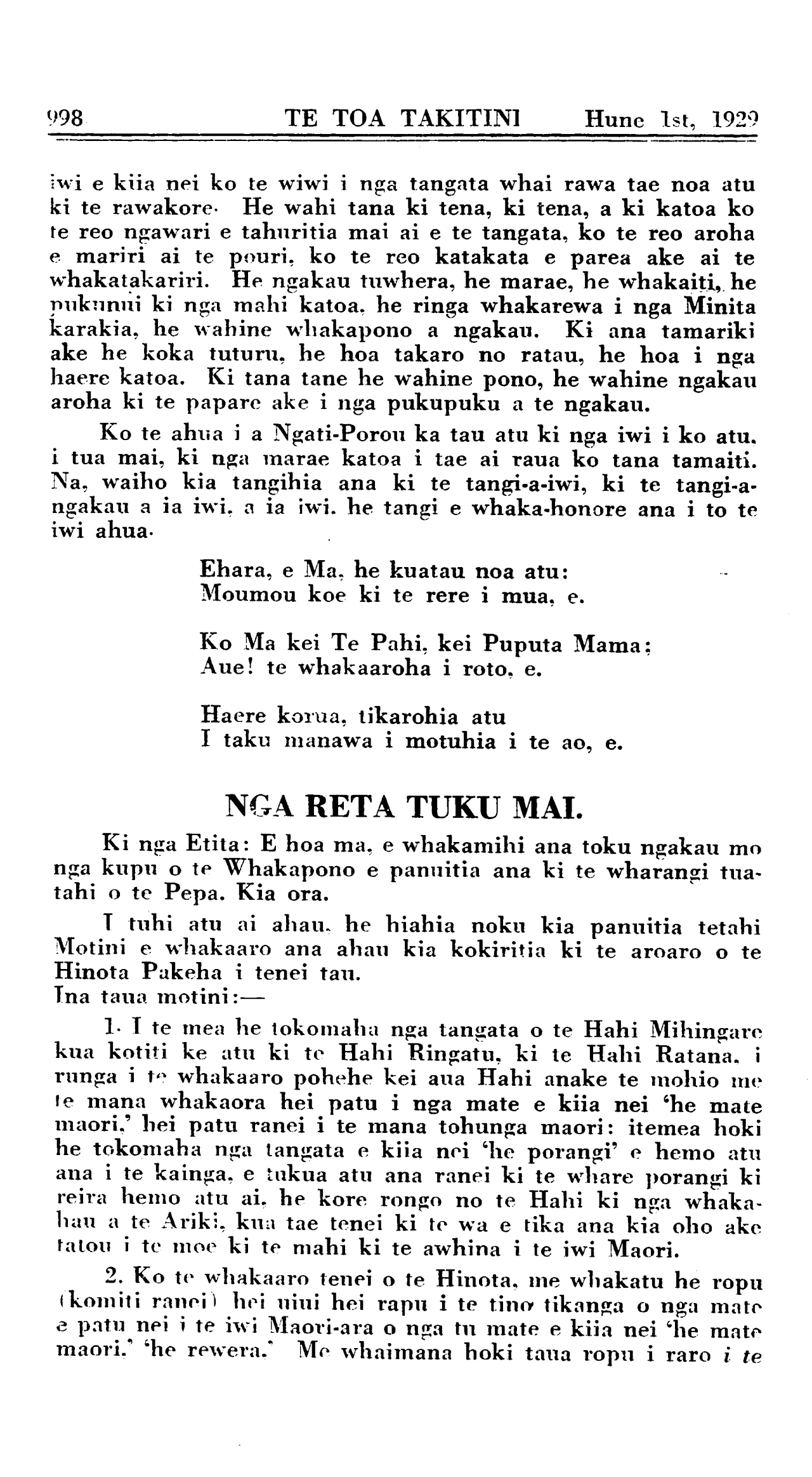 998\_\_\_\_\_\_\_\_\_\_\_TE TOA TAKITINI Hune 1st, 1929