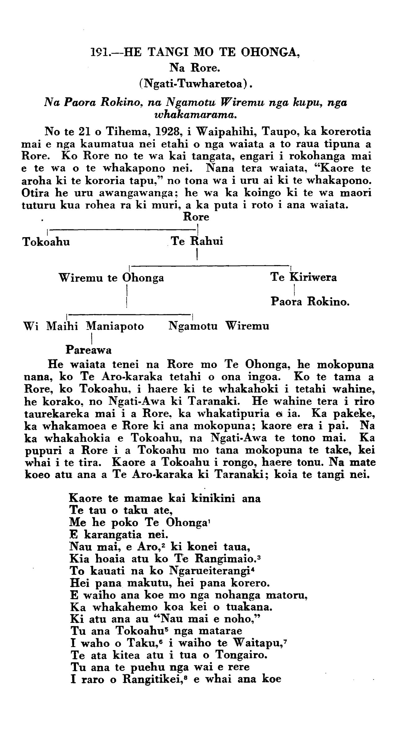 mai i Ingarangi i te tau 1917. Ko taana kupu o mua atu. "Tai-